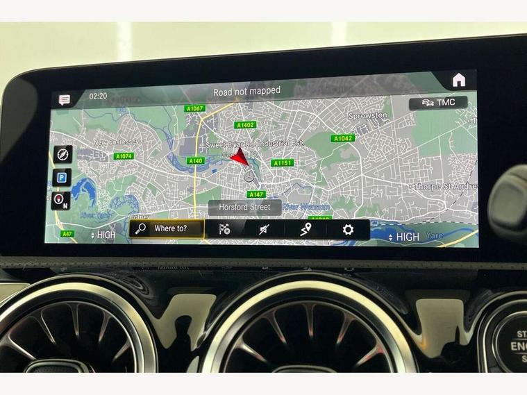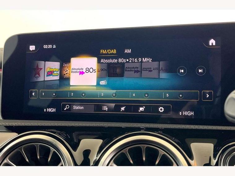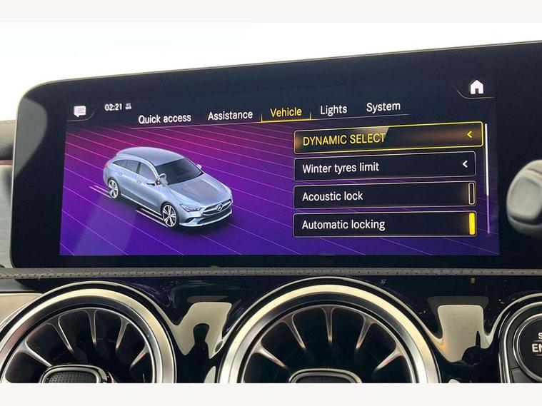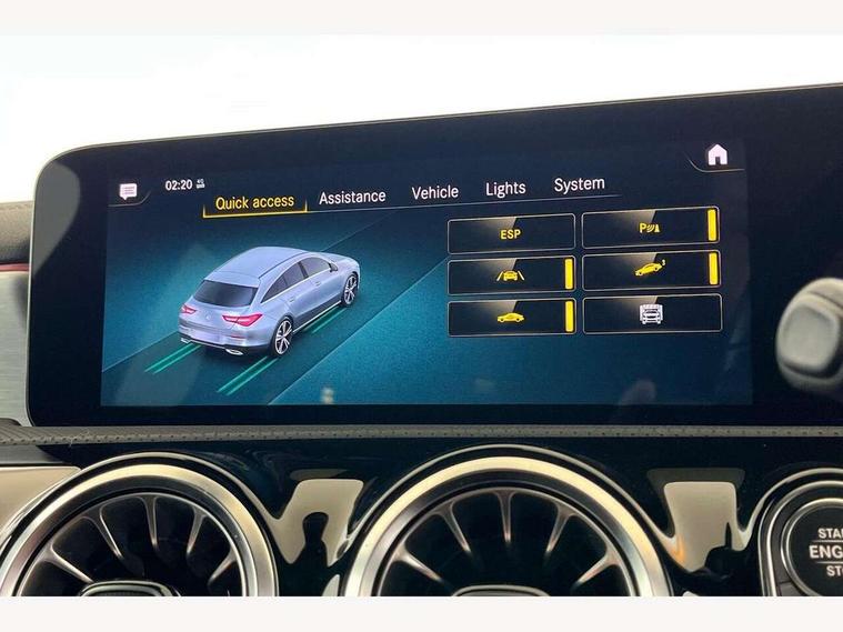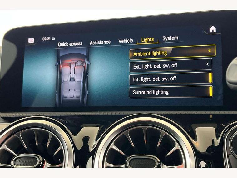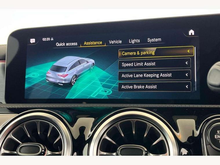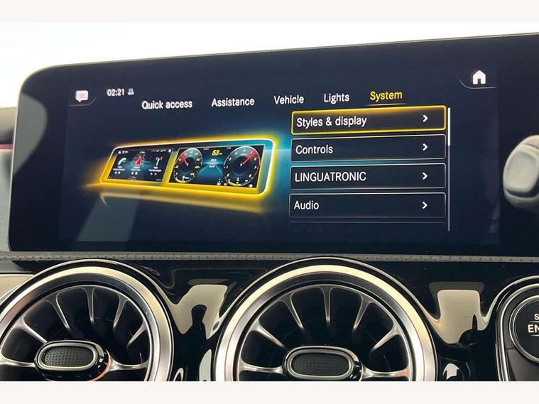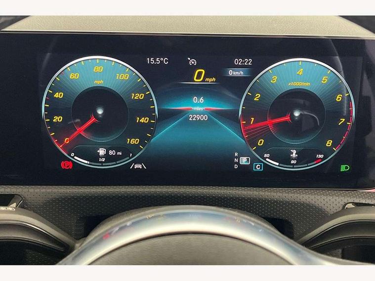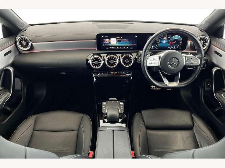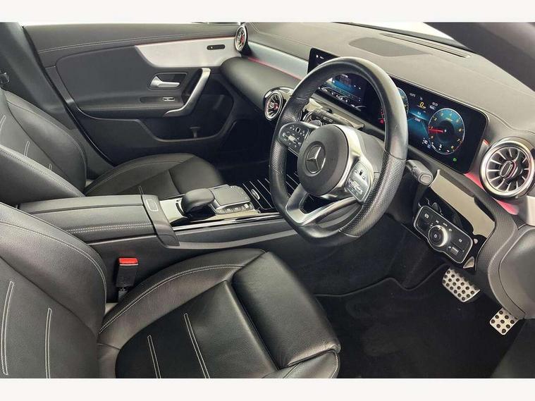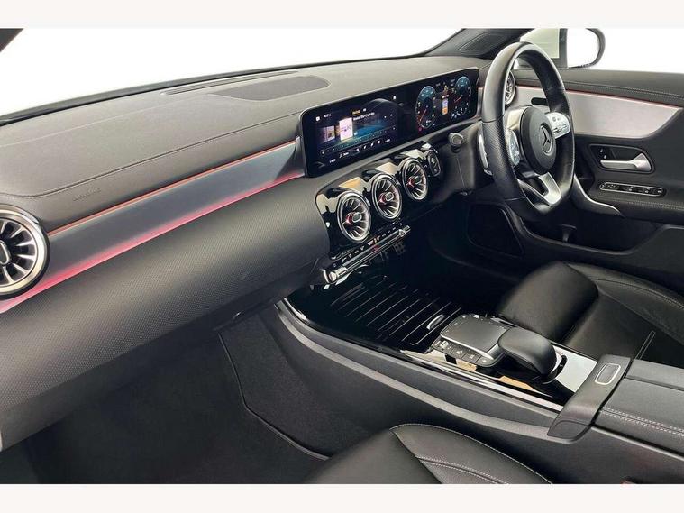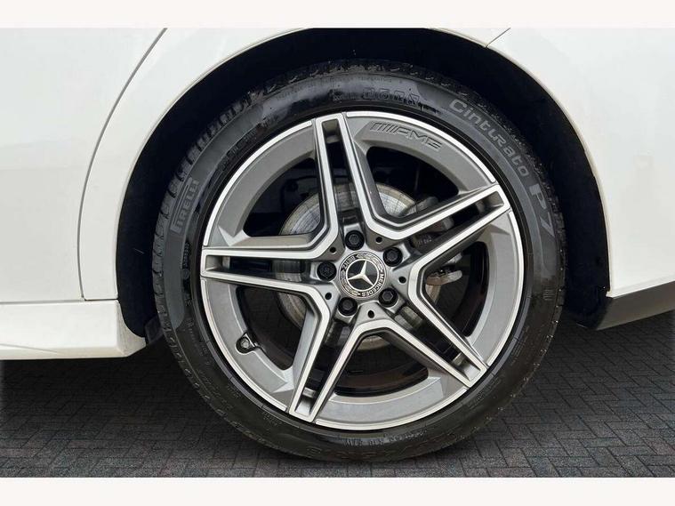 10.25 inch Instrument display with digital cockpit, 10.25 inch touchscreen central media display, Active lane keeping assist, Attention assist - Monitors steering behaviour and long journey fatigue, Bluetooth connection, Car wash mode, Cruise control with limiter, Direct steer system with speed sensitive power steering, DYNAMIC SELECT with a choice of driving modes (ECO, Comfort, Sport and Individual), ECO start/stop function, Fluid level warning indicator for fuel, oil, coolant and washer fluid, Hard-disk navigation, Hey Mercedes Voice activation, Lamp failure indicator, Mercedes me connect including emergency call system, accident recovery, breakdown and maintenance management, Mercedes me remote services, Outside temperature gauge, Owners manual and service booklet in English, Pre-installation of private car share, Preinstallation for Mercedes Benz link, Radio aerial integrated into front and rear windshields, Service indicator (ASSYST), Smartphone integration with Apple CarPlay and Android auto, Speed limit assist, Trip computer in multifunction display with current consumption indicator, 7G-DCT 7 speed automatic transmission, Lowered comfort suspension, Rear axle multi-link, DAB digital radio tuner, MBUX multimedia system with DAB digital radio and touchpad including satellite navigation, Mercedes Benz sound system (100 W) with 6 speakers, USB (type C) ports (2) in stowage compartment and 1 in front of centre console, Adaptive brake lights, AMG body styling with AMG front apron and rear apron and visible exhaust tailpipe in chrome trim elements, AMG bodystyling side skirts, Body colour bumpers, Body colour door handles, Chrome beltline strips, Chrome weather strip, Diamond radiator grille pins in chrome with silver painted louvres and chrome insert, Electric windows, Electrically adjustable and heated door mirrors with integrated LED indicators, Exhaust system with 2 Visible tailpipe trim elements and rear apron with trim in chrome, Headlamp assist automatic headlamp activation, Heated glass rear windscreen + timer control, High level LED third brake light, Interior mirror with black reading lamps and frameless, LED high performance headlamps with integrated LED daytime running lights, LED tail lamp, Privacy glass with dark tinting on rear side windows and rear window, Rain sensing windscreen wipers with two sensitivity settings, Rear fog lamp, Window line trim strip in chrome, 3 spoke flattened bottom nappa leather multifunction steering wheel with perforated leather in grip area, 40:20:40 split folding rear seat backrests, Air conditioning - Two zone thermotronic luxury automatic climate control with display, Air vents with surround in silver chrome, Automatic child seat recognition sensor, Black roof lining, Brushed stainless steel sports pedals with rubber studs, Floor mats with stitched AMG lettering, Front centre armrest with stowage, Galvanished gear shift paddles on steering wheel, Heated front seats, Illuminated front door sills with changeable cover, Illuminated glove compartment stowage, Interior lighting - 64 colour Ambient lighting, Luggage net on driver/front passenger seat backrest, Manually adjustable front seats, Manually height and reach adjustable steering column, Rear armrest with two integral cup holders for drinks, Rear head restraints, Sport seats with fixed head restraints, Stowage compartment in centre console with retractable cover, Sunvisors with illuminated vanity mirrors, Touchpad on center console, Twin front cupholders, Two outer rear seat isofix and top tether child seat fixing points, Light and sight pack - CLA, Mirror pack - CLA, Parking package - CLA, Seat comfort pack - CLA, Active bonnet pedestrain safety measure which detects an impact and raises bonnet by 65mm, Active brake assist includes forward collision warning system with autonomous braking, Adaptive brake assist with hold function and hill start assist, Anti-lock braking system (ABS), Black seat belts, Bonnet with power domes, Brake pad wear warning indicator, Childproof locks manually operated for rear doors and electrically operated for rear power windows, Crash responsive emergency lighting, Driver and front passenger head and sidebags, Driver and front passenger windowbags, Drivers knee airbag, Dual stage driver and front passenger airbags, Electric parking brake, Electronic stability programme with acceleration skid control, ESP curve dynamic assist, Front and rear seatbelt reminder, Front passenger seat occupancy sensor, Three point rear seat belts, Tyre pressure monitoring system, Warning triangle and first aid kit, Remote central locking and crash sensor with emergency opening function, Urban guard vehicle protection system with immobiliser and interior protection, Light aluminium with longitudinal grain interior trim, 18" 5 twin spoke design alloy wheels painted in titanium grey with high sheen finish, Summer tyres, Tirefit tyre sealant kit,