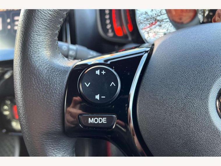 7" touch screen, Analogue tachometer, Bluetooth system, DCM - Data Communication modules, Digital clock, Electric power steering, Emergency call service, Fuel indicator with low level warning, Lane departure warning system, Lights on warning, Reversing camera, Smartphone integration powered by pioneer compatible with Apple CarPlay and Android Auto, Speed limiter, Start and stop, Vehicle Stability Control (VSC), 4 speakers, Auxiliary input socket, DAB Digital radio, iPod connection, MP3 connection, Multimedia System, USB connection, 2 speed wipers/variable intermittent/mist function, 3rd brake light, Auto headlight levelling, Automatic headlights, Body colour bumpers, Body colour door handles, Carbon rear diffuser, Decal kit - Front and rear bumper, side sills and matching mirror covers, Electric adjustable door mirrors, Electric front windows, Electric headlamp adjustment, Front fog lights, Green tinted glass, Heated door mirrors, Heated rear windscreen, LED daytime running lights, LED rear lights, Manually dimming rear view mirror, Projector halogen headlights with LED tracer line, Rear privacy glass, Rear side wing doors, Rear spoiler, Rear window demister, Rear wiper, Red roof decal, Roof mounted aerial, 12V Accessory socket, 2 individual rear seats, 3 spoke leather steering wheel with audio, telephone and LDA control, 50/50 split folding rear seat, Air recirculation system, Auto air conditioning, Black roof lining, Body colour instrument panel, Centre console storage, Chrome insert to gearknob, Chrome interior door handles, Clean air filter, Cloth upholstery, Driver and passenger sunvisors, Driver and passenger vanity mirrors with sunvisors, Driver's seat height adjuster, Driver/passenger seat recline/slide adjust, Front and rear door pockets, Front cupholder, Front map reading lights, Glovebox, Height adjustable front head restraints, Isofix system on outer rear seats, Leather gear shift, Manual tilt steering wheel, Passenger seat + manual slide/recline adjust, Pollen filter, Rear cupholders, Rear headrests, Single front passenger seat, Steering wheel mounted radio/phone controls, Storage bins on all doors, Storage pockets in centre console, Tonneau cover, ABS, Collision mitigation braking system, Emergency brake assist, ESP, Force limiting rear seatbelts, Front seatbelt reminder, Hill start assist, Passenger front airbag cut off switch, Rear child proof door locks, Rear seatbelt reminder, Seatbelts with pre-tensioners and load limiters, Supplement restraints system (SRS) - 6 airbags, Tyre pressure warning, Engine immobiliser, Lockable fuel cap, Remote central locking, Air vent surround in body colour, 15" 10 spoke black machined alloy wheels, Space saver spare wheel,