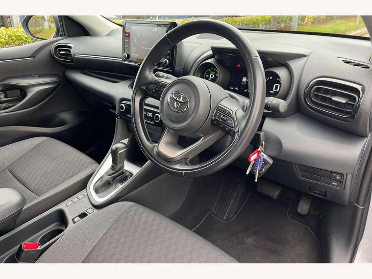 Adaptive cruise control, Adjustable speed limit with speed warning, Bluetooth connectivity, Colour binocular inspired displays with digital speedometer, E-call, Electric power steering, Hybrid energy display, Multi information display switches on steering wheel, Reversing camera, Smartphone integration with Apple CarPlay and Android auto, Tailgate, Voice recognition, Vehicle Stability Control (VSC), 4 speakers, 8" Multimedia display touch screen, USB connection, Acoustic windscreen glass, Auto windscreen wipers, Automatic headlights, Body coloured door mirrors, Electric adjustable heated door mirrors, Follow me home headlights, Front auto power windows with anti jam protection, Full LED rear lights, LED daytime running lights, LED front fog lights, LED front light guide, LED Headlights, LED High mounted stop lamp, LED Indicators, LED rear light guide, Manual headlight levelling, Painted chequered front grille, Rain sensor, Rear auto power windows with anti jam protection, Rear privacy glass, Rear side wing doors, Rear spoiler, Rear wiper, Shark fin antenna, Turning signal integrated indicators in door mirrors, Variable front intermittent wipers, 3 adjustable rear headrests, 3 spoke leather steering wheel, 60/40 split folding rear seat, Active headrests, Adjustable boot height, Auto air conditioning, Coat hooks in rear grab handles, Cup holders (2 front & door), Data Communication Module (DCM) connected services, Fabric upholstery, Front armrest, Glovebox, Grey roof lining, Height adjustable driver's seat, Isofix seat fixing, Leather gearshift, Pollen filter, Shopping bag hooks, Single front passenger seat, Tilt/telescopic steering column, 3 point seatbelts on all rear seats, ABS+EBD+Brake assist, Electronic parking brake, Emergency brake light system (EBS), Front passenger airbag on/off switch, Front seatbelt reminder, Hill start assist control (HAC), Rear child proof door locks, Rear seat belt reminder, Supplemental Restraint System (SRS) 8 airbags: Driver & passenger's airbags, dual side curtain airbags, side impact airbags, front centre airbag, Toyota Safety Sense 2, Precollison + Night time Pedestrian & Cyclist Detection, Lane Trace Assist, Auto High Beam, Intelligent ACC & Road Sign Assist, Tyre pressure warning system, 2x Master key, Alarm/immobiliser, Remote powered central double locking doors, Soft touch instrument panel, Space saver spare wheel,
