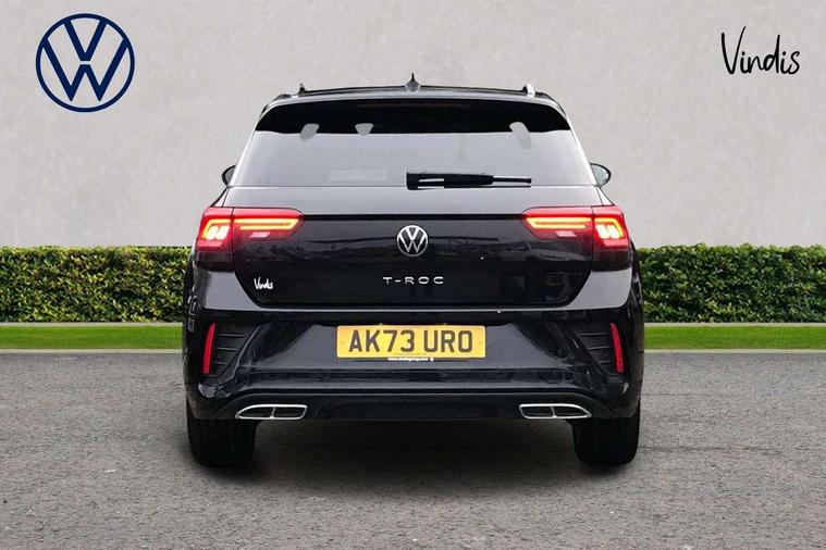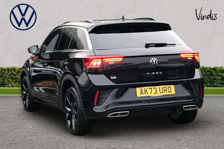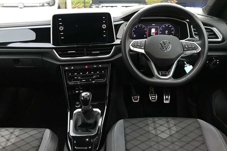 10.25" Digital cockpit pro, Advanced driver attention and drowsiness monitor, Bluetooth mobile phone interface, Emergency call service, Lane keeping system Lane Assist, Modified key software - reduce switch off time for key status change to Long no motion, Online services, Park assist including front and rear parking sensors, Service interval indicator, Tailgate/trunk lid release from outside, Think blue trainer driver tips and journey analysis, Warning sound and light for front seatbelts unfastened, Wireless app connect, Battery regeneration during braking, Start/stop function with battery regeneration, Diversity antenna for FM reception, Music playback - MP3, WMA and AAC files, Premium USB cable in choice of either Apple or Android smartphone compatibility, SD card slot, Simultaneous pairing of 2 compatible mobile devices, Title and cover art display, We Connect and We Connect Plus functionality, 3rd brake light, Auto dimming interior rear view mirror, Automatic hazard lights activation under emergency braking, Automatic headlight control with LED separate daytime running lights with coming/leaving home function, Electrically adjustable and heated door mirrors, Extended roof spoiler, Exterior mirrors aspherical on driver side, convex on front passenger side, External USB type C socket and charging sockets, Front windscreen wiper with intermittent wipe and 4 position delay, Heated rear window, LED rear combination lamps, LED rear number plate lights, Power windows with comfort operation and circuit breaker, R-Line design body coloured bumpers, Rain sensor, Rear exhaust tailpipe, Rear fog light on one side and reversing lights on both sides, Rear side wing doors, Rear wash/wipe with intermittent wipe setting, Remote electrically foldable door mirrors, puddle lights and reverse activated passenger's door mirror, 12V power socket in centre console, 3 rear head restraints, 3 seat bench in 2nd row, 4 load lashing points in luggage compartment, Air care climatronic air conditoning system with active combination filter and 2-zone temperature control, Black roof lining, Chrome plated radiator grille inserts, air vent surrounds and light switch surrounds, Door and side trim panel with leatherette insert, Front + rear carpet mats, Front centre armrest, Front cupholders x 2, Front footwell illumination, Front reading light, Front scuff plates with R Line logo, Front seat back storage pockets, Glove compartment door with light, Instrument lighting, white adjustable panel illumination, Interior ambient lighting and surround lighting, Interior light delay, Isofix child seat preparation, Leather gearshift handle, Load-through provision with cup holder when folded down ('Unsplit rear seat bench, split folding backrest, with centre armrest), Luggage compartment lighting, Single front passenger seat, Stainless steel pedals, Storage compartment in left and right luggage area, Storage compartment in rear doors, Storage compartments in driver and front passenger doors, Sunvisors with illuminated vanity mirrors, Variable boot floor, height adjustable and removable, Driver assistance pack without proactive passenger protection - T-Roc, 3 point height adj front seatbelts + pretensioners, 3 point seatbelts in outer rear with ECE label, ABS, Child locks on rear doors, City emergency braking and pedestrian monitoring, Driver and front passenger airbag with front passenger airbag deactivation, Driver and front passenger safety-optimised head restraints, Drivers seatbelt reminder, Electronic parking brake, Electronic Stability Control (ESC) inc EDL (Electronic Differential Lock) and ASR (Traction Control), Front and rear passengers curtain airbag system including front side airbags, Hill start assist, Predictive pedestrian protection, Rear disc brakes, Two tone horn, Tyre pressure loss indicator, Volkswagen roadside assistance, Anti-theft alarm system with interior monitoring, backup horn, and towing protection, Remote central locking with SAFELOCK, radio remote control with 2 remote control folding keys, Trims for alloy wheels,