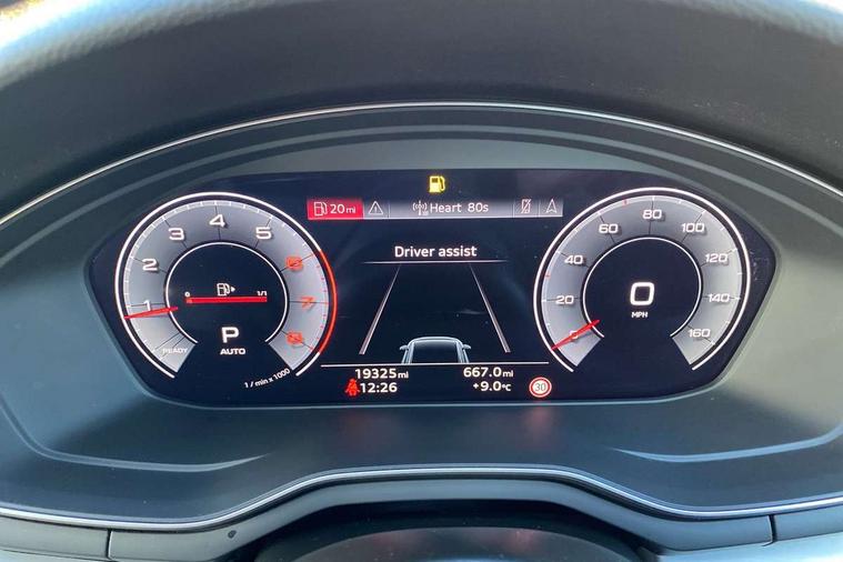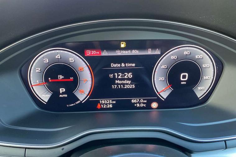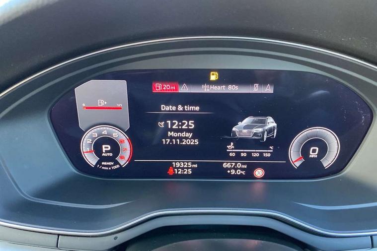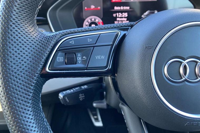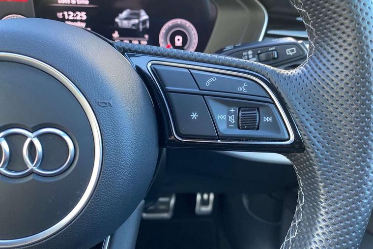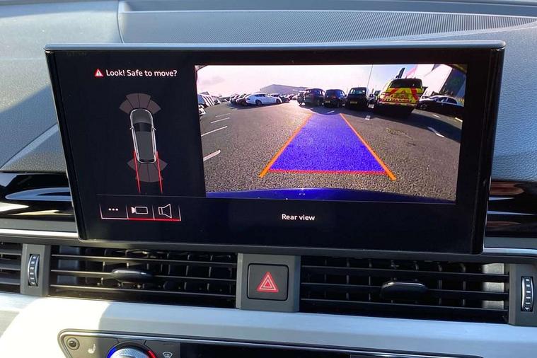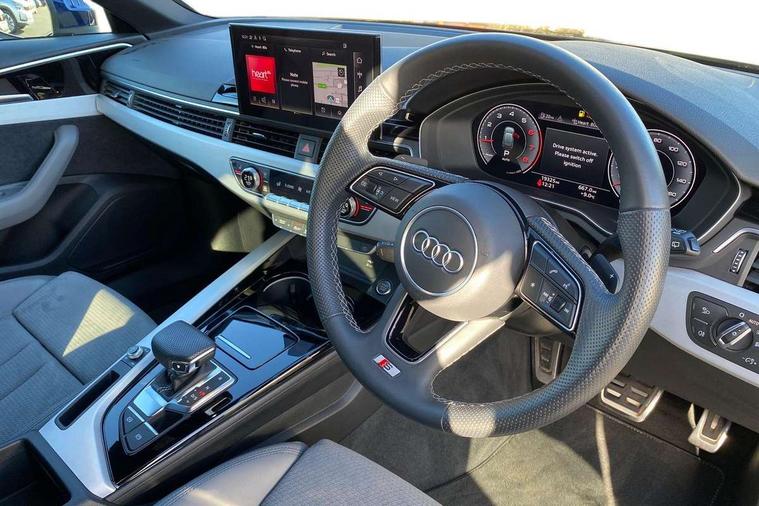 Audi connect safety and service (e-call), Audi drive select, Audi smartphone interface, Audi virtual cockpit, Automatic start-stop system with coasting functionality and efficiency programme, Bluetooth interface, Camera based traffic sign recognition, Electromechanical power steering, Email, calendar and text messages displayed via MMI, Front and rear parking sensors, Lane departure warning, MMI Navigation plus with MMI touch includes 10.1" high resolution colour MMI display, 3D map, Power operated tailgate, Rear view camera, Voice control system, 54 litre fuel tank, Sports suspension lowered by 23mm, 2 USB charging ports, 8 passive loudspeakers, DAB digital radio reception, Aluminium roof rails, Auto dimming rear view mirror, Body colour door handles, Body colour front spoiler lip, Body colour side sill trim, Body coloured door mirrors, Electric adjustable/heated/folding door mirrors with auto dimming, Grained matt black side air inlets with matt aluminium silver inlay, High beam assistant, Honeycomb structure radiator grille in grained matt black, LED headlights with LED rear lights + dynamic rear indicators + headlight adjustment and high beam, turning light + LED daytime running lights, LED third brake light, Matt aluminium silver tailpipe trim, Privacy glass, Rain and light sensors, Rear side wing doors, Rear wiper, S Line badges on the front wings, S line front and rear bumpers with side skirts, S Line rear diffuser in matt anthracite black with trim strip in matt aluminium silver, S Line roof edge spoiler, Variable intermittent front wash/wipe, Windscreen with acoustic glazing, 3 spoke high multi-function sports leather steering wheel grips in perforated leather with S badging including paddle shift, 4 way electric lumbar support for driver and front passenger, 40/20/40 split folding 3 rear seat bench in 3 parts with rear centre armrest, Black carpets, Black cloth headlining, Black perforated leather gearknob, Contrast stitching on seats, steering wheel and gear lever gaiter, Deluxe 3 zone electronic climate control, Electric load area cover, Front and rear head restraints, Front centre armrest, Heated front seats, Illuminated door sill trims with S logo, ISOFIX child seat mounting and top tether, Manual seat adjustment, Single front passenger seat, Stainless steel pedals and foot rest, High gloss package - A4, LED Interior light pack - A4/S4, 3 rear seatbelts, 6 airbags - Driver, front passenger, curtain and side windows, Attention and drowsiness assist, Electronic Stabilisation Control (ESC) including ABS, ASR and EDL, Hill hold assist, Multi collision brake assist, Pop-up bonnet for pedestrian protection, Pre sense city, Rear door child safety locks, Seatbelt monitoring, Warning triangle and first aid kit, Anti theft alarm, Anti theft wheel bolts, Central locking, Keyless Go, Matt brushed aluminium inlays, Tool kit, Tyre repair kit,