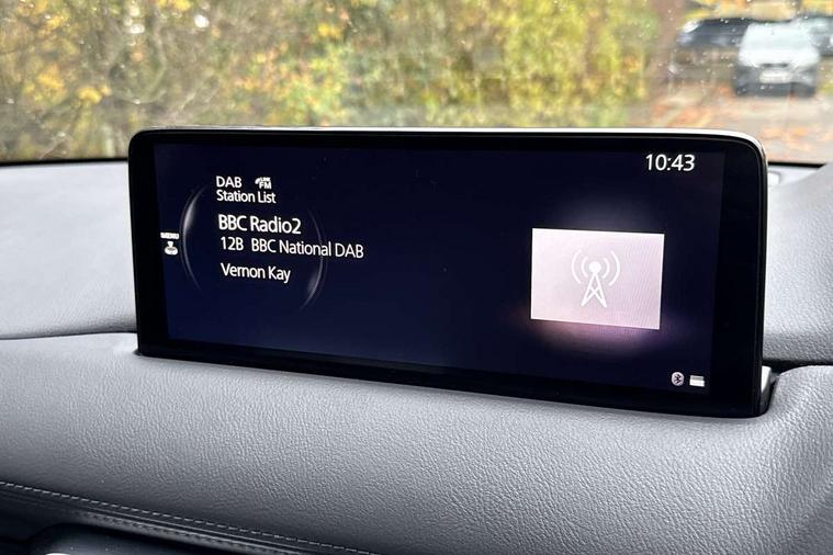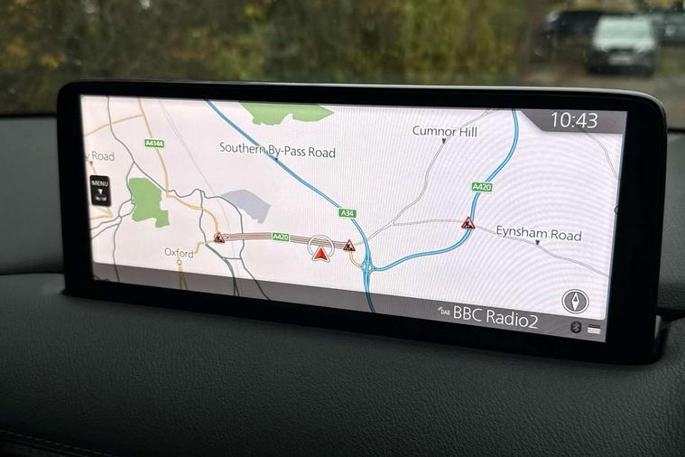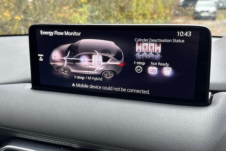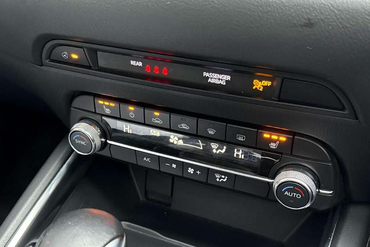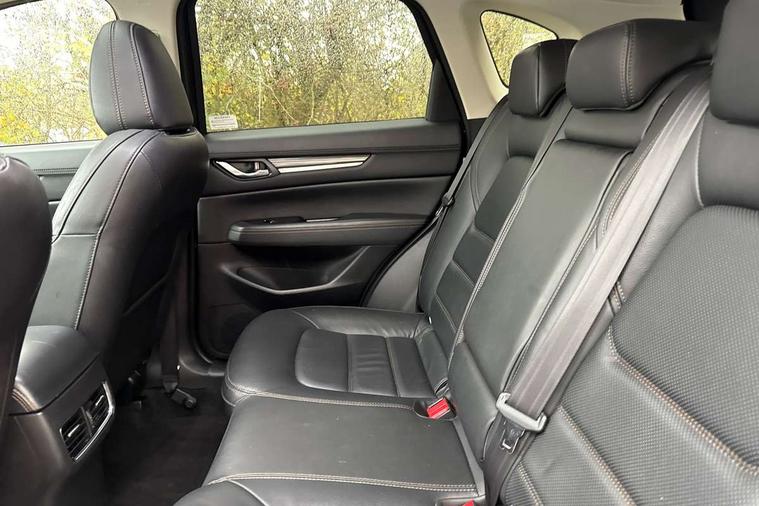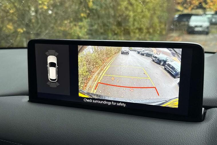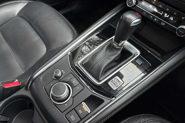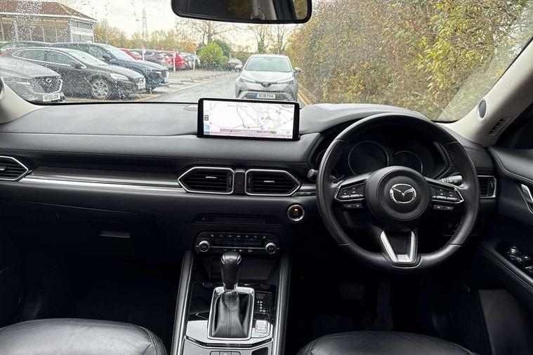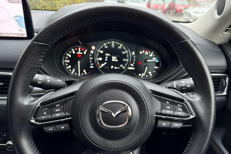 10.25" display with Mazda Connect infotainment, 7" colour TFT display, Advanced blind spot monitoring, Bluetooth connectivity with voice control, Collision prevention assist, Connected services, Cruising Traffic Support, Drive mode selector, Electric power steering, Emergency stop signalling system, Engine start/stop button, Forward collision warning, Front and rear parking sensors, Integrated navigation system, Intelligent speed assist, Lane departure warning system, Lane keep assist, Power liftgate, Qi wireless phone charging, Radar cruise control with Stop and Go, Rear cross traffic alert, Reversing camera, Service indicator, Traffic sign recognition (TSR), Trip computer, Windscreen projected colour active driving display (HUD) with memory, Wireless apple car play/android Auto, Cylinder Deactivation, i-stop, AM/FM radio, Bluetooth audio streaming, Bose premium sound system with 10 speakers, DAB Digital radio, Multimedia Commander including separate volume dial, Steering wheel mounted audio controls, Adaptive front lighting system, Auto dimming rear view mirror, Automatic headlights, Black inlay dashboard panel, Body colour door mirrors, Body colour roof spoiler, Body coloured front and rear black lower bumper mouldings, Coming/leaving home lighting function, Door mirror integrated indicators, Dual chrome tailpipes, Dusk sensitive headlamps, Electric front/rear windows with one touch auto up/down, Front grille in gloss black finish, Front grille in gloss black finish with chrome signature wing, Gloss black B and C pillars garnish, High beam assist, Intermittent rear wash/wipe, LED auto levelling, LED daytime running lights, LED front fog lights, LED Headlights, LED third brake light, Power folding and heated door mirrors, Power tilt/slide sunroof, Privacy glass (rear side windows only), Rain sensing front wipers, Rear side wing doors, Satin black side mouldings, Scuff plates, Shark fin antenna, Signature LED rear combination lights, Variable intermittent front wash/wipe, Vinyl with wood grain metal inlay door trim panel, Windscreen wiper de-icer, 12v electrical power outlet, 3 seat bench in 2nd row, 3 stage heated front seats, 40:20:40 Karakuri fold-flat seat system, 6 way electric adjustable passenger seat, 8 way electric driver seat with lumbar support + memory, Cargo room flat floor board with waterproof undertray, Driver seat power slide, recline and height adjustment, Driver, Front passenger and two rear grab handles with coat hooks, Driver/passenger front seatback pockets, Driver/passenger sunvisors + illuminated vanity mirrors (drivers with ticket holder), Dual zone climate control, Folding centre armrest with 2 cup holders, Front and rear door pockets, Front centre storage with two cupholders, Front passenger seat power slide, recline and height adjustment, Heated steering wheel, Humidity sensor, Illuminated glovebox, Interior dome light with integral spotlight, ISOFIX child seat anchorage points attached on outer rear seats, Karakuri tonneau cover, Leather upholstery, Leather wrapped steering wheel and gear knob, Light roof lining, Luggage compartment LED lighting, Luggage compartment power outlet, Paddle shifts, Rear air vents, Rear headrests, Rear seat recline, Roof mounted sunglasses holder, Single front passenger seat, Three height adjustable head restraints, Tilt/height adjustable steering wheel, USB Connectivity (2x front Type-C, 2x rear Type-B), White interior LED illumination lighting, 3 point front seatbelts with pre-tensioners, 3 rear 3 point seatbelts, ABS, Advanced Smart City Brake Support - SCBS, Child locks on rear doors, Driver and front passenger side airbags, DSTC-Dynamic Stability and Traction Control, Dual front airbags, Electronic brake force distribution, Electronic parking brake with auto hold, ESP, Front and rear curtain airbags, Front passenger airbag deactivation, G-Vectoring control, Hill hold assist, Seatbelt reminder front and rear, Single stage passenger airbags, Smart brake support with forward obstruction warning, Tyre pressure monitoring system, Automatic door locking when moving off, Deadlock, Immobiliser, Power door locks, Remote central locking, Smart keyless entry, Thatcham Cat.1 alarm, 19" diamond cut black alloy wheels, Tyre repair kit,