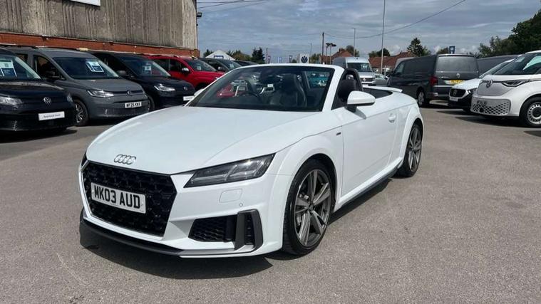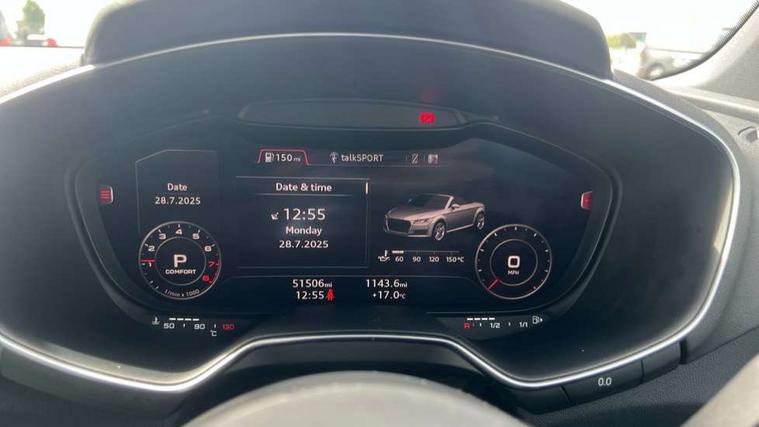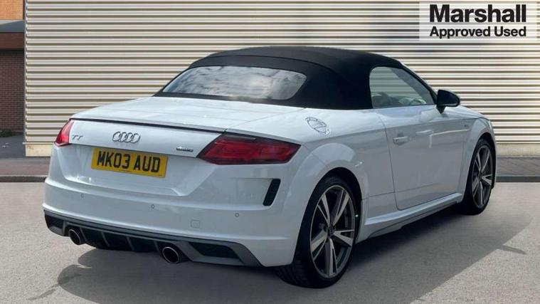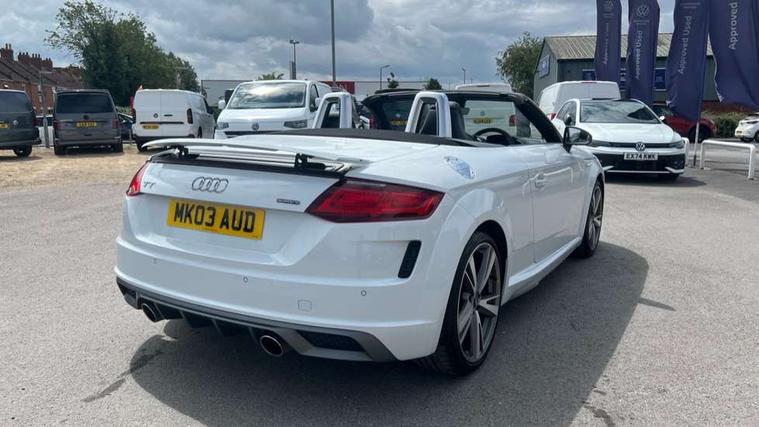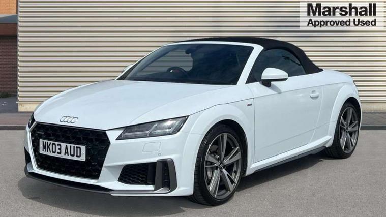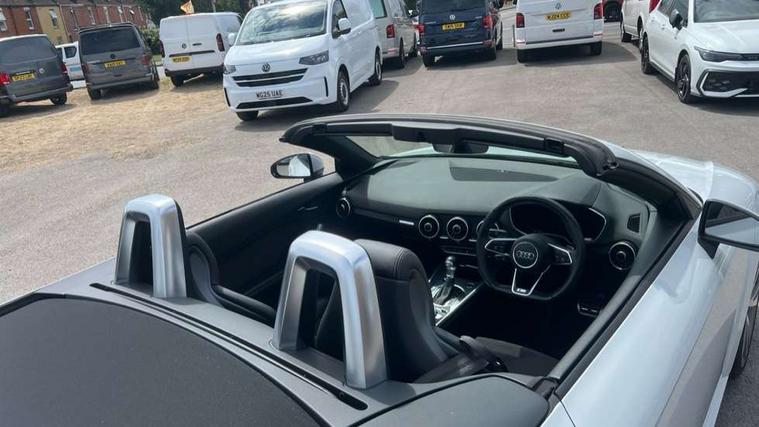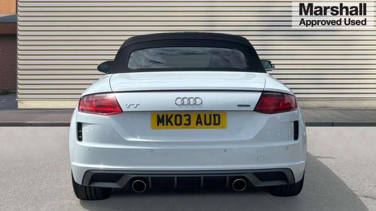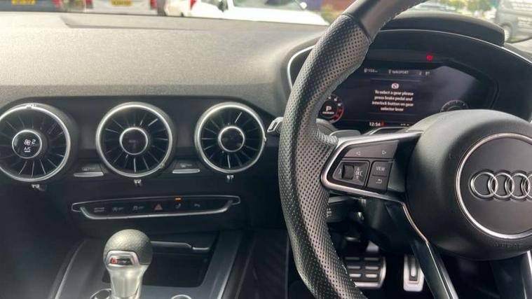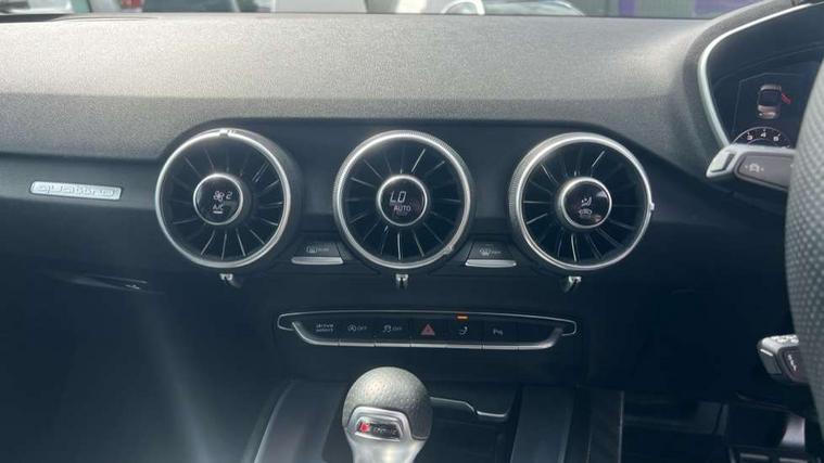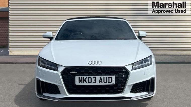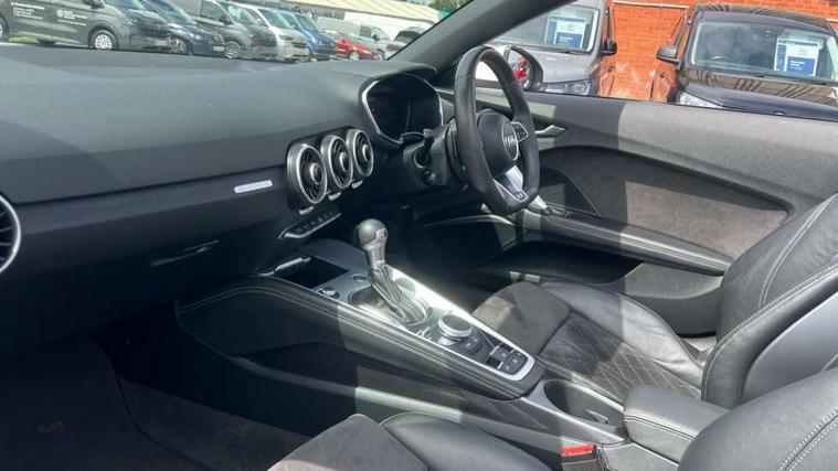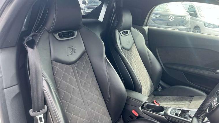 Audi active lane assist, Audi drive select with 4 Pre configured modes, Cruise control + speed limiter, MMI touch panel, Progressive power assisted steering, Rear parking sensors, Seat belt microphone, Service interval indicator, Start/Stop system with energy recuperation, TP memo, 8 Speakers, AM/FM radio, Audi music interface, Bluetooth audio streaming, DAB Digital radio, MMI Radio with CD player and SD/XC card slot, Auto dimming rear view mirror, Auto headlight range control, Body colour bumpers, Dynamic rear indicators, Electric front windows, Front fog lights, Fully automatic acoustic hood, Green tinted heat insulating glass, Headlight wash system, High gloss black radiator grille, LED daytime running lights, Light and rain sensors, Retractable rear boot spoiler, S line badges on front wings, S Line body styling, S Line front and rear bumpers, S line rear diffuser with platinum grey insert, S line sill plates, Sunband for windscreen, 12V socket, 3 spoke flat bottomed high multi-function leather sport steering wheel with gearshift paddles, 4 way electric lumbar support for driver and front passenger, Black headlining, Door sill trims with S line logo, Extended aluminium look with stainless steel pedals, Front centre armrest, Front super sports seats, Heated front seats, Height adjustable driver's seat, Height adjustable front head restraints, Height/reach adjust steering wheel, ISOFIX child seat mounting for front passenger seat with airbag deactivation, Perforated leather gearknob, S Line badge on steering wheel, Non smoking pack - TT/TT RS, 3 point front seat belts, ABS, ASR traction control, Brake energy regeneration, Curtain airbags, Driver and front passenger airbag with front passenger airbag deactivation, EDL traction control, Electromechanical parking brake, ESP, First aid kit, Front side airbags, Head airbags, Hill hold assist, Seatbelt warning, Tyre pressure warning, Warning triangle, Anti theft alarm, Anti theft wheel bolts, Immobiliser, Keyless Go, Remote central locking, Matt brushed aluminium inlays, Tool kit, Tyre repair kit,