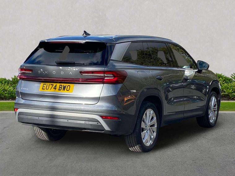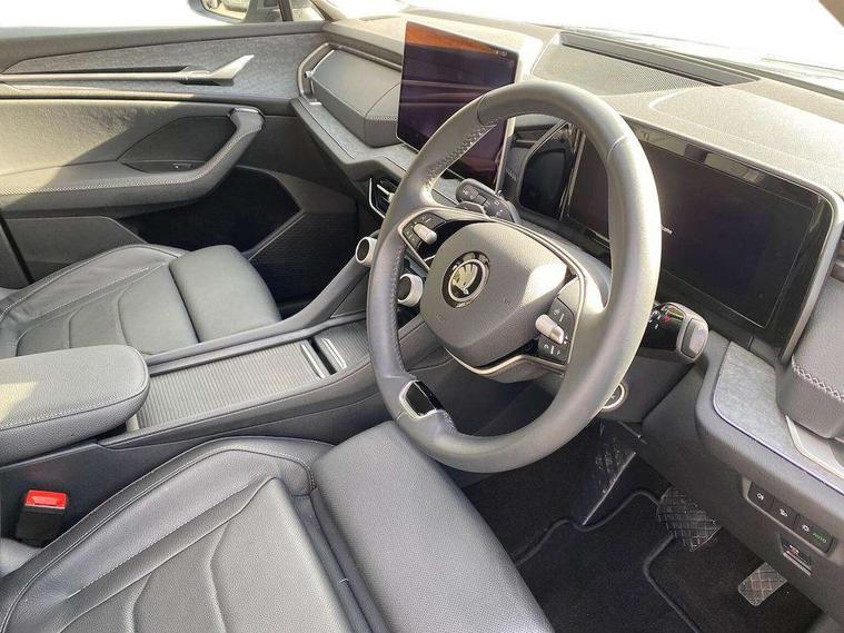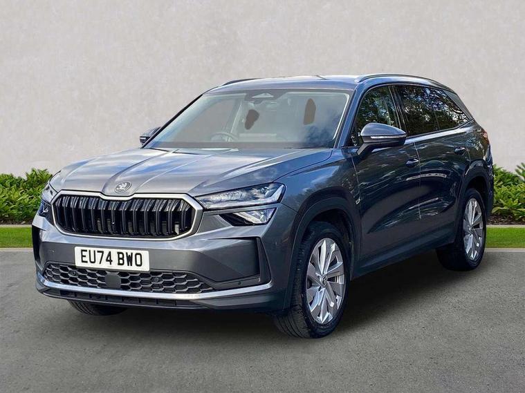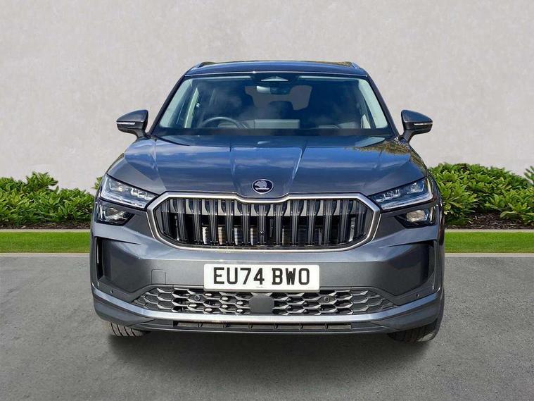 13" satellite navigation touchscreen display, Blind spot detection with door exit warning, Bluetooth system, ChatGPT functionality, Drive mode selector, Driver alert with fatigue sensor, Driver drowsiness alert system, Dry display cleaner, e call+, Front cross traffic assist, Lane assist, PAS, Rear traffic assist, Tailgate unlocking from outside, Traffic sign recognition, USB C Port x 2 in front centre console, Virtual Cockpit - 10.25" digital display, Voice control system, Wireless charging for two smartphones (15W) with cooling function, Wireless SmartLink for Apple CarPlay and Android Auto, Stop/start function, 2x USB-C in the rear, DAB Digital radio, Aero front windscreen wipers with intermittent function, Auto dimming rear view mirror, AWL (all weather lighting) and all weather light with cornering function, Black wheel arch surrounds, Body colour bumpers, Body colour door mirrors and handles, Cornering light and poor weather light, Electric folding /adjustable/separted heated/folding door mirrors, auto dimming with boarding sports and memory function, Electric front and rear windows, Exterior black decorative trims, Heat insulating glass in windshield, Heated rear window, Ice scraper in fuel tank cap, Invisible tailpipe, LED daytime running lights, LED rear fog light, LED third brake light in rear spoiler, Light assistant with automatic headlight control and coming home feature, Logo projection in door mirrors, Privacy glass, Rear side wing doors, Rear spoiler, Rear window wiper, Red decorative strip between rear LED lights, Safety reflectors on front and rear doors, Window control switches with black trim, Windscreen wipers with rain sensor, Without engine designation, 1.5l bottle holder points in all door, 12V socket in boot, 1x centre rear reading light, 2 seat bench in 3rd row, 3 configurable smart dials with 32mm coloured display, 3 seat bench in 2nd row, 4 foldable roof handles with rear coat hooks, Ambient interior lighting - Dashboard, front-door stowage compartments, front and rear door panels and footwell lighting, Automatic gear selector on steering wheel, Chrome interior door handles, Driver/front passenger reading lights, Fabric headlining, Fixed bench 40:60:40 split folding backrests, Front and rear floor mats, Front centre armrest with jumbo box storage compartment, cup holder and 12V socket, Front courtesy lights, Height adjustable front headrests, Isofix child seat fittings in outer middle row rear seats and front passenger with top tether, Manually adjustable steering column, Pollen filter, Rear centre armrest with cupholders, Rear seat boot backrest release, Retractable luggage compartment cover, Single front passenger seat, Sliding trunk cover, Small Bags on the inner sides of the front backrests, Storage pocket including mobile phone pockets on the backs of the front seats, Sunvisors with illuminated vanity mirrors, Three rear height adjustable headrests, Ticket holder on A Pillar, Tri zone climate control, Umbrella in door panel x1 made from sustainable materials, Upper and lower glovebox with card holder and coin compartment, USB C port by rear view mirror for charging only (15W), Exterior styling pack - Kodiaq, Auto door release and activation of warning lights in the event of an accident, Driver and front passenger airbag with knee airbag and front passenger airbag deactivation, Electric child locks, Electronic parking brake, ESC (incl. ABS+EMD+MSR+ASR+EDL+HBA+DSR+RBS+ESBS+MCB+TSA+XDS), Front assist with braking reaction to vehicles, pedestrians and cyclists, Front disc brakes, Fuel cut off safety device, Height adjustable front 3 point seatbelts + pretensioners, Hill hold control, Junction assist with automatic emergency braking, Rear disc brakes, Safety vest holder in door, Seat belt reminder for all seats, Three point rear seat belts, Two tone horn, Tyre pressure monitor, Anti-theft wheel bolts, Immobiliser, Remote central locking with 2 keys, Breakdown kit,