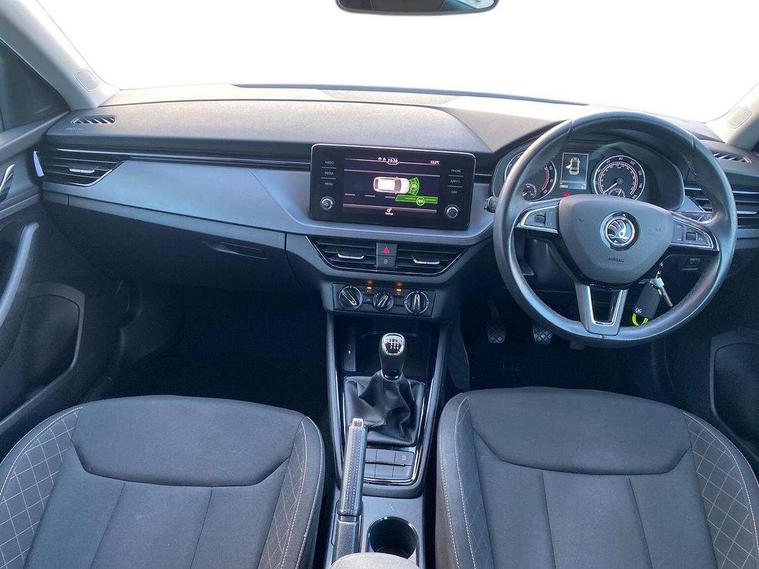 Bluetooth system, Easy light assist, Front assist system, Lane assist, Multi function trip computer, Rain and light assist with auto dimming rear view mirror, Speed limiter, 2 USB - C ports, 8 loudspeakers, Bolero radio with 8" touchscreen display, DAB Digital radio, Body colour door mirrors and handles, Chrome grille surround, Electrically adjustable and heated door mirrors, Front and rear electric windows, Tinted windows, 12V Accessory socket in centre console, 12V socket in luggage compartment, Chrome inner door handles, Cloth upholstery, Decor strip on dashboard and door panel, Glasses storage in roof liner, Glovebox with cooling system and illumination, Height adjustable drivers seat, Height adjustable passenger seat, Instrument cluster with chrome painted decor ring, ISOFIX for rear passenger seat, Leather gearknob and handbrake lever, Reading lights for driver and front passenger, Storage compartment under front seats, Sun visor with make up mirror for front passenger, Third rear headrest, Umbrella, Curtain airbags, Emergency call and proactive services, Front head and side airbags, Hill hold control, Passenger airbag switch off function, Seat belt reminder for all seats, Two tone horn, Alarm, Anti-theft wheel bolts, SAFE function for remote central locking, Temporary space saver wheel,