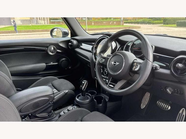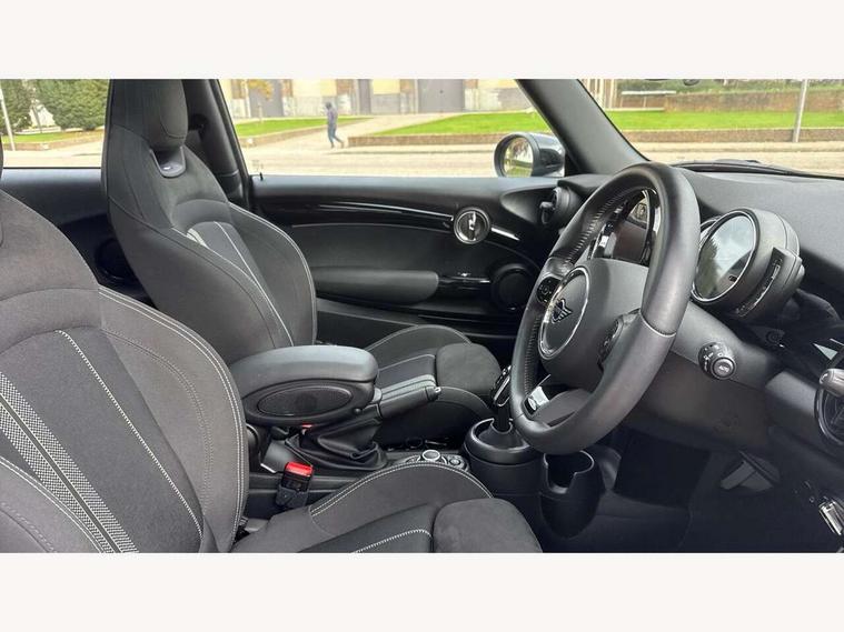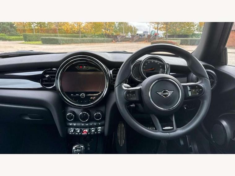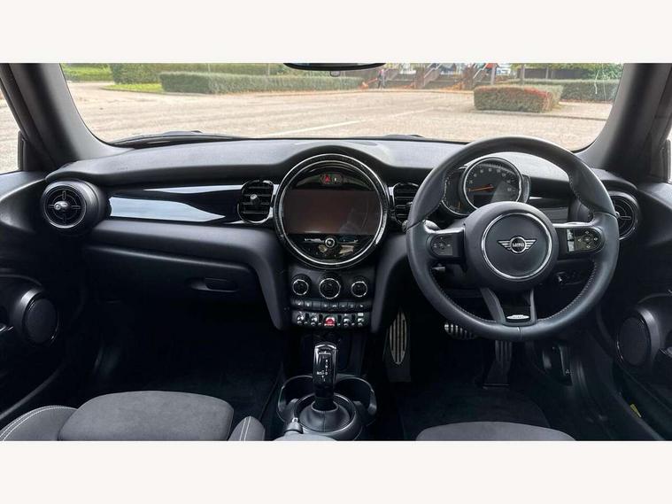 Apple CarPlay, Automatic start/stop function with brake energy recuperation, Compatible mobile phone bluetooth with audio streaming, Digital dashboard display, Electro-mechanical speed dependant steering assistance, Flexible car sharing preparation, Instrument cluster, Mini E-call, MINI TeleServices, On board computer, Service interval indicator, Double Vanos system, Fully variable valve control, High precision injection, Intelligent adaptive suspension, Performance Control, Steptronic transmission with double clutch, 4 speakers in front door trims and underneath front seats, 8.8" touchscreen with LED ring, FM tuner and DAB digital radio, 3rd brake light, Automatic headlight activation switch, Dynamic brake lights, Electric front windows, Heated rear window, Heated windscreen washer jets, JCW Aerodynamic kit - Front and rear bumpers with sporty JCW styling and part-painted side sills with MINI John Cooper Works door sill finishers, John Cooper Works rear spoiler, LED headlight with closed ring and daytime driving lights, Metal door sill strips with MINI imprint, Model logo Cooper on right of tailgate, Rain sensor window wipers, Rear fog lights, Rear LED lights with union jack design, Rear window wiper, Side scuttle panel with integrated indicator, Sun/heat protection glass, White indicator lenses, 12V Accessory socket in centre console, 2 seat bench in 2nd row, 4 lashing eyes in luggage compartment, 60/40 split folding rear seat, Anthracite headliner including grab handles and clothes hooks, Carbon black colour line - Knee roll and door armrest, Chrome interior highlights, Cupholders, Front and rear isofix with front passenger airbag deactivation, Front floor mats in velour, Glove compartment, Height and length steering column adjustment, Integrated headrests, adjustable thigh support for seats, Interior lighting with 12 different colours across the dashboard, underneath door bezel with illuminated laser-engraved design on central display, Leatherette gearshift lever and handbrake gaiters, LED reading lights, vanity mirror lights, front foot well light and spotlight on front seats, Mechanical seat adjustment - forward/back & backrest for front seats and driver seat height adjust, Multifunction steering wheel, Passenger seat height adjuster, Single front passenger seat, Storage compartments in doors, Sunvisors with vanity mirrors, Walknappa leather steering wheel with grey seam and John Cooper Works badge on Piano Black lower steering wheel spoke, Driving assistant pack - Mini Hatchback, Piano black exterior pack - Mini Hatchback Cooper, Premium pack - Hatchback, 3 point seatbelts on all four seats, 6 Airbags - front, side, head and seat belt tensioners, Anti-lock braking system (ABS), DSC - Dynamic Stability Control, Front and rear disc brakes, Single tone fanfare horn, Tyre pressure monitoring system, Alarm system with tilt sensor, monitoring doors, bonnet interior and tailgate, Electronic vehicle immobiliser, Start/stop toggle with keyless go, Piano black interior trim, Tool kit,