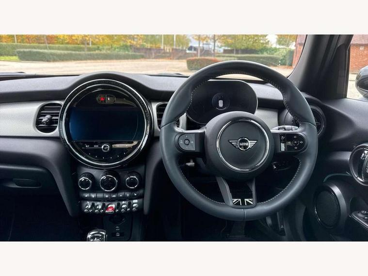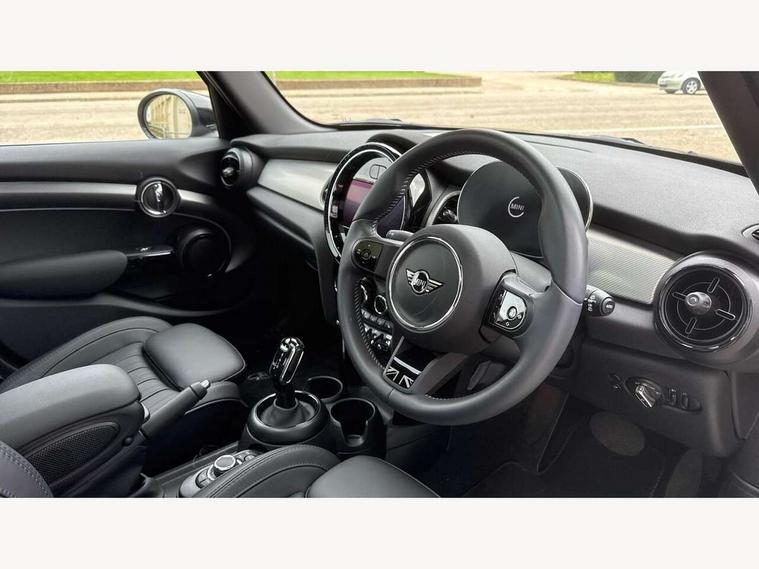 Apple CarPlay, Automatic start/stop function with brake energy recuperation, Compatible mobile phone bluetooth with audio streaming, Electro-mechanical speed dependant steering assistance, Flexible car sharing preparation, MINI Driving Modes - centre toggle switch to control driving setting (sport, mid and green), Mini E-call, MINI TeleServices, On board computer, Rear park distance control, Service interval indicator, Double Vanos system, Fully variable valve control, Gear change indicator display, High precision injection, Performance Control, Steptronic transmission with double clutch, 8.8" touchscreen with LED ring, FM tuner and DAB digital radio, 3rd brake light, Automatic headlight activation switch, Body colour fuel filler cap, Chrome line exterior - radiator grille bars, tailgate handle, lower front grille grating and rear central fog-light, Dynamic brake lights, Electric front+rear windows, Heated rear window, Heated windscreen washer jets, Metal door sill strips with MINI imprint, Model logo Cooper on right of tailgate, Rain sensor window wipers, Rear fog lights, Rear LED lights with union jack design, Rear side wing doors, Rear window wiper, Side scuttle panel with integrated indicator, Sun/heat protection glass, White indicator lenses, 12V Accessory socket in centre console, 3 seat bench in 2nd row, 4 lashing eyes in luggage compartment, 60/40 split folding rear seat, Anthracite headliner including grab handles and clothes hooks, Carbon black colour line - Knee roll and door armrest, Chrome interior highlights, Chrome line interior - air vents, gear lever base, door handles and speakers in doors, Cupholders, Front and rear head restraints, Front and rear isofix with front passenger airbag deactivation, Front and rear velour floor mats, Glove compartment, Height and length steering column adjustment, Interior lighting with 12 different colours across the dashboard, underneath door bezel with illuminated laser-engraved design on central display, Leatherette gearshift lever and handbrake gaiters, LED reading lights, vanity mirror lights, front foot well light and spotlight on front seats, Mechanical seat adjustment - forward/back & backrest for front seats and driver seat height adjust, MINI yours badge on exterior pillar, Multifunction steering wheel, Single front passenger seat, Storage compartments in doors, Sunvisors with vanity mirrors, Walknappa leather steering wheel with grey seam and MINI Yours badge on Piano Black lower steering wheel spoke, 3 point seatbelts on all five seats, 6 Airbags - front, side, head and seat belt tensioners, Anti-lock braking system (ABS), Child locks on rear doors, DSC - Dynamic Stability Control, Front and rear disc brakes, Hill start assist, Single tone fanfare horn, Tyre pressure monitoring system, Alarm system with tilt sensor, monitoring doors, bonnet interior and tailgate, Electronic vehicle immobiliser, Start/stop toggle with keyless go, Tool kit,