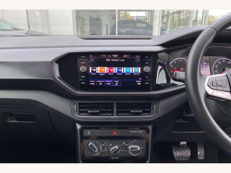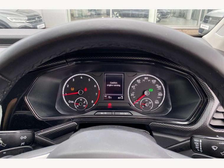 'Lights On' Reminder warning buzzer, Adaptive cruise control including front assist, forward collision warning, autonomous emergency braking, speed limiter, Blind spot monitoring, Bluetooth telephone and audio connection for compatible devices, Car information display, Digital cockpit, Driver alert system, eCall emergency call system, Lane assist, Low washer fluid warning light, Multifunction computer with visual gear change recommendation for fuel consumption, Operating permit alteration, Power assisted speed sensitive steering, Speedo, rev counter, electronic odometer, trip, service interval display, exterior temperature and fuel gauge, Stop/start system, Warning sound and light for doors and tailgate open, Warning sound and light for front seatbelts unfastened, We Connect Go Dongle, Wireless Car net app connect with Apple CarPlay, combined functionality of Apple CarPlay/Android Auto and MirrorLink, Battery regeneration during braking, Misfuel prevention device, 2x USB connection with USB charging sockets and in rear centre console, DAB Digital radio receiver, Diversity antenna for FM reception, Multi device interface (MDI) with USB connection, Music playback - MP3, WMA and AAC files, Premium USB cable for Apple or Android smartphone compatibility, Simultaneous pairing of 2 compatible mobile devices, Title and cover art display, Automatic hazard lights activation under emergency braking, Black roof rails, Body colour door handles, Body colour door mirrors with integrated indicators, Body coloured bumpers, Dusk sensor + automatic driving lights, Electrically foldable, adjustable and heated door mirrors with reverse activated kerb view adjustment on passenger's side, Front and rear electric windows, Front fog lights with static cornering function, Galvanised body, Heated rear window, LED third brake light, Lower door sills and door pillars in black, Radiator grille with high gloss surface and chrome strip, Rear fog light on one side, reversing light on both sides, Rear lights incorporating LED technology, Rear side wing doors, Rear window aerial, Rear windscreen washer and wiper with interval delay, Reflectors in all doors, Tailgate with integrated roof spoiler, Windscreen wipers/ intermittent wipe + 4 position delay, 12V Accessory socket in centre console, 3 rear head restraints and 3 rear three point seat belts with ECE label, 3 seat bench in 2nd row, 60/40 split folding rear seat backrest, Drawer under drivers seat, Driver and front passenger sunvisor with vanity mirror, Driver's sunvisor with ticket holder, Dust and pollen filter, Front and rear reading lights X 2, Front centre armrest with storage compartment, Front seat back storage pockets, Front seats with adjustable lumbar support, Glovebox, Heating and fresh air system with 4 stage blower, Height/reach adjust steering wheel, Instrument lighting white adjustable panel illumination, Interior light with delay, Isofix child seat preparation for 2 rear child seats, Luggage compartment cover, Luggage compartment lighting, Manual air conditioning, Manual front seats with height adjustment, Moveable and foldable Rear bench seat, Storage compartment in drivers and front passengers door, Three spoke multi-function leather trimmed steering wheel and gearknob, Triangle ties/pearl cloth upholstery, Variable boot floor, Anti-lock Braking System (ABS) with Hydraulic Brake Assist (HBA), Automatic post collision braking system, Driver and front passenger safety-optimised head restraints, Drivers and Front Passengers airbags with front passengers airbag deactivation switch, ESC with EDL, ASR, EDTC and trailer stabilisation function, Front and rear curtain airbags, Front seat side impact airbags, Height-adjustable front three-point seat belts with tensioners, Hill start assist, Pre crash preventive occupant protection, Rear door child safety locks, Rigid safety cell with front and rear crumple zones, Single torn horn, Tyre pressure loss indicator, Volkswagen roadside assistance, Alarm with interior protection and deactivation via infotainment system, Child security locks in rear doors, Electronic engine immobiliser, Remote tailgate unlocking using key fob, Pineapple decorative inserts in dash and doors, 17" Clayton alloy wheels + anti theft wheel bolts, Breakdown kit,