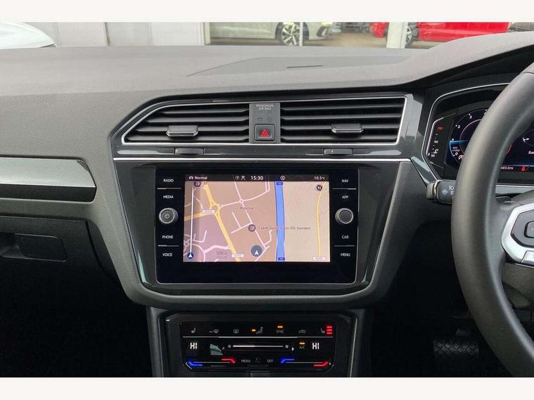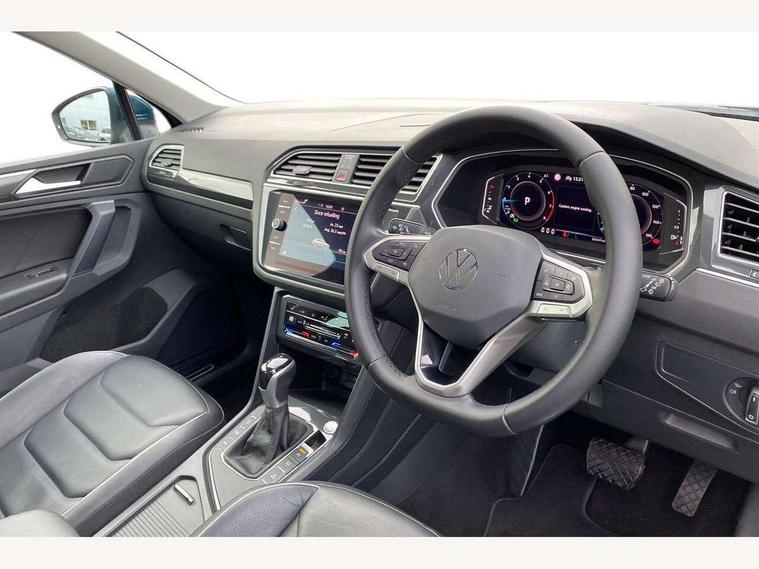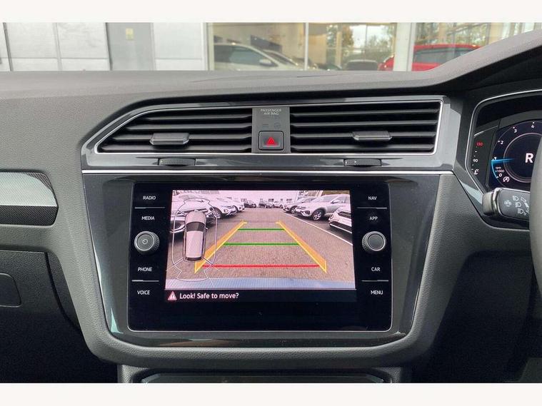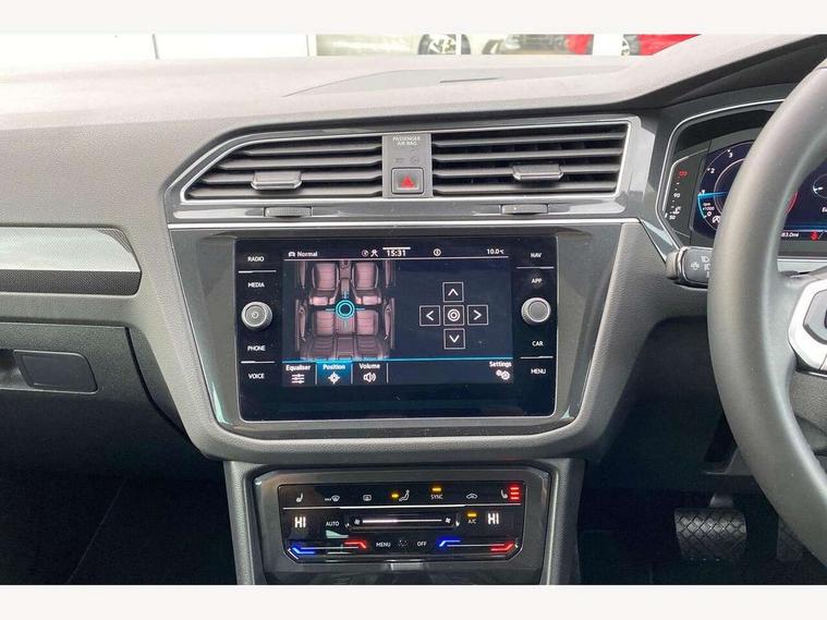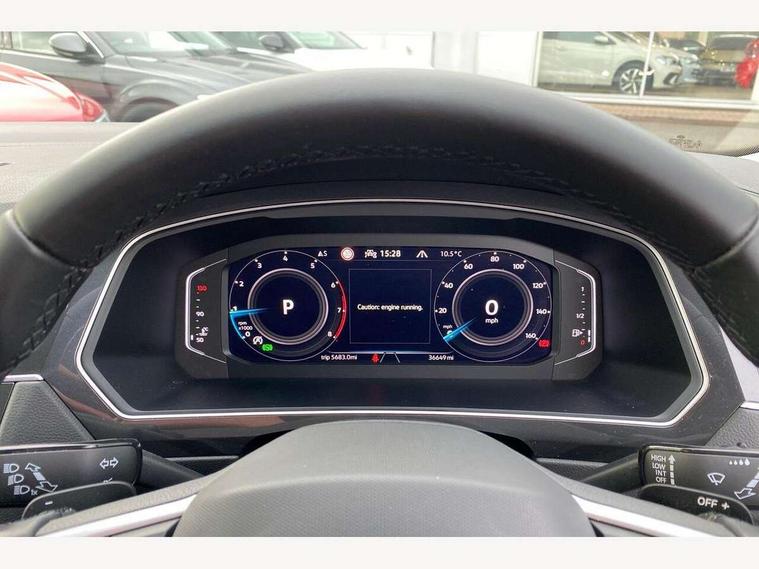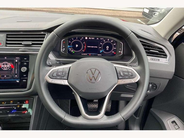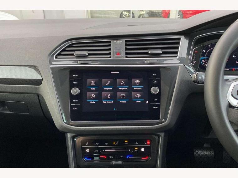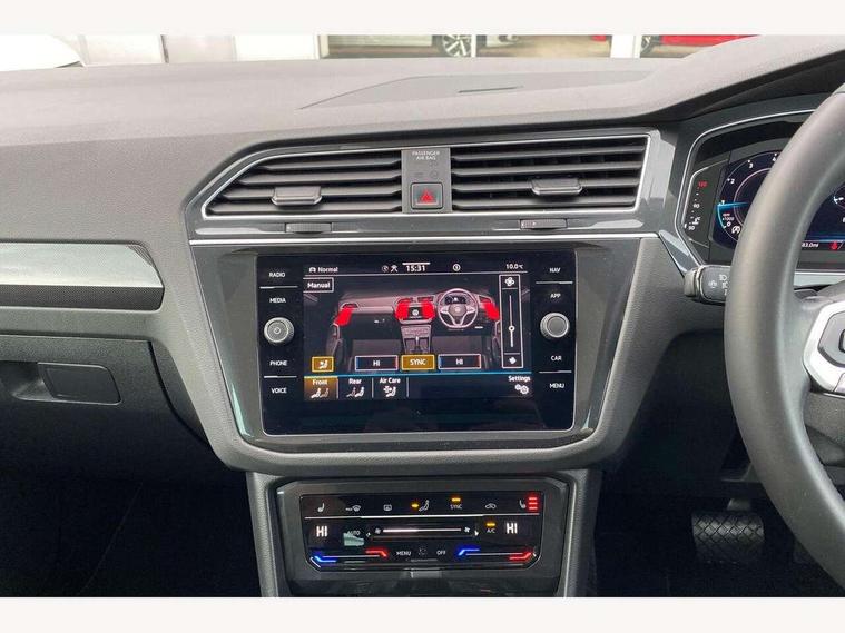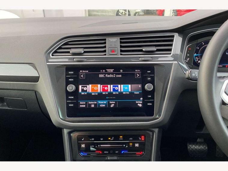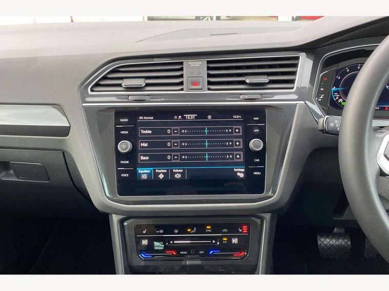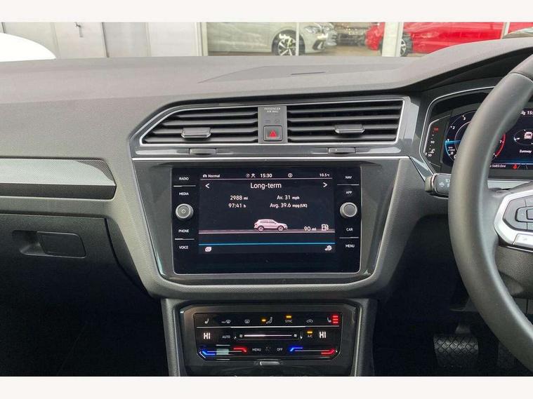 Adaptive cruise control ACC stop and go including speed limiter, App-Connect incl. App-Connect Wireless for Apple CarPlay and Android Auto, Bluetooth phone integration system, Digital Cockpit Pro - Active info display, Distance control assist, Driver alert system, Driver profile selection, Dynamic road sign display, eCall emergency call system, Electromechanical speed sensitive power steering, Engine start/stop button, Lane keeping system Lane Assist, Lights on warning, Motorised electric tailgate operated via key fob, drivers door and foot movement under tailgate, Multifunction front facing camera, Outside temperature display, Premium multifunction display with multi colour display, Remote control boot opening, Rev counter, Revision / skills operating concept travel assistant, Service interval indicator, Speed limit display, Start/stop system with regenerative braking, Tailgate/trunk lid unlocking from outside, Trip computer, Warning sound and light for doors and tailgate open, Battery regeneration during braking, XDS electronic differential lock for improved traction and handling, 2 USB-C ports in the front, 1 USB-C charging socket on the center console in the rear, Diversity antenna for FM reception, Radio, SD card slot, Simultaneous pairing of 2 compatible mobile devices, SMS functionality - read, compose and send SMS messages using touch-screen display, Title and cover art display, Aluminium door sill protectors, Auto dimming interior rear view mirror, Automatic headlight control system, Body colour door handles, Body coloured bumpers, Body coloured door mirrors with integrated indicators, Coming/leaving home lighting function, Dynamic headlight range control, Front and rear electric windows, Heated rear window, High level 3rd brake light, IQ light-Adv high beam, Dynamic light assist for LED matrix headlamp+LED separate DRL+DCL, dark red rear LED tech, Poor weather light+ cornering light, Laminated safety glass windshield, heat and sound insulating, LED rear number plate lights, Poor weather light and cornering light, Privacy glass for rear side windows and rear window, Rain sensor windscreen wipers, Rear exhaust tailpipe, Rear fog lamp, Rear side wing doors, Rear windscreen washer and wiper with interval delay, Side and rear windows in heat insulating glass, Tilting and sliding panoramic sunroof with rear panoramic sunroof, Trailer Stability Programme, Windscreen wipers/ intermittent wipe + 4 position delay, 12V outlet in center console rear and in luggage compartment, 12V outlet in front and tray, 2 cup holders in front, 2 LED front reading lights, 2 LED rear reading lights, 3 bench rear seats in 2nd row, 3 rear headrests, 4 load lashing points, 40:20:40 split folding rear seats, Air Care Climatronic 3 zone automatic climate control with enhanced air filter and controls in the rear, Backrest release for left front seat, Climate control unit rear with touch function, Door and side trim panel in foam film and woven fabric, Front + rear carpet mats, Front centre armrest, Front footwell illumination, Front seats head restraints (x-adjustment), Height adjustable front seats, Height/reach adjust steering wheel, Instrument lighting white adjustable panel illumination, Interior light with delay, Isofix Preparation 2 Rear child seats, Leather gear knob, Lockable cooled glovebox, Luggage compartment lighting, Luggage net, Rear bench seat asymetrically split folding, longitudinally movable and folding with load-through hatch and center armrest, Remote unlocking for rear seat backrest, Removable luggage cover, Removable rear headrests, Safety optimised front head restraints, Single front passenger seat, Sliding/reclining rear seats, Standard rear seat release, Storage compartment in driver's door, Storage compartment in passenger's door, Storage compartment in rear doors, Storage compartments in luggage area left and right, Storage tray on dashboard, Sun visors with illuminated vanity mirrors, Top front comfort seats, Variable boot floor, height adjustable and removable, Ambience pack - Tiguan, Chrome pack - Tiguan, Easy open and close pack with safelock - Tiguan, 3 point seat belt for centre rear seats, 3 point seat belts with seat belt pretensioners for the outer rear seats, Active bonnet, Curtain airbags for front and rear passengers, Driver/Front Passenger airbags, Drivers knee airbag, Electronic parking brake with auto hold, Electronic Stability Control with driver steering recommendation, ABS, ASR, EDL, EDTC and trailer stabilization, Front assist with autonomous emergency braking (for Adaptive Cruise Control ACC up to 130 mph), Front disc brakes, Front passenger airbag deactivation, Front side airbags, Height adjustable front 3 point seatbelts + pretensioners, Hill hold control, Manual child proof rear door locks, Pedestrian monitoring system, Power assisted brakes, Proactive passenger protection system in combination with front assist, Rear disc brakes, Rigid safety cell with front and rear crumple zones, Two tone horn, Warning sound and light for front seat belts if unfastened, Anti theft alarm system with interior monitoring, backup horn and towing protection, Anti theft wheel bolts, Central locking system with safelock radio remote control and 2 remote control folding keys, Electronic engine immobiliser, Tool kit,