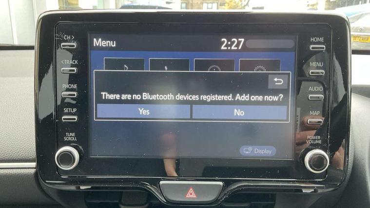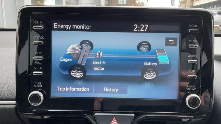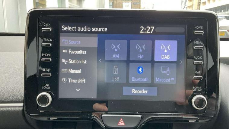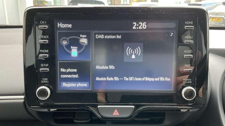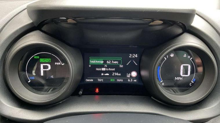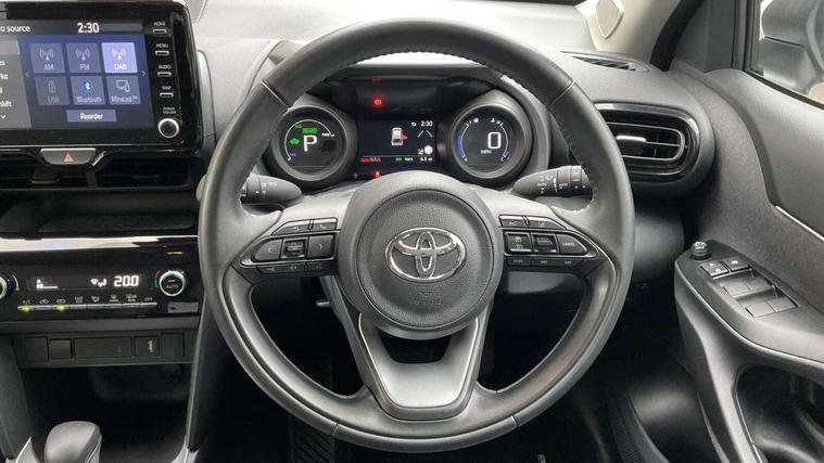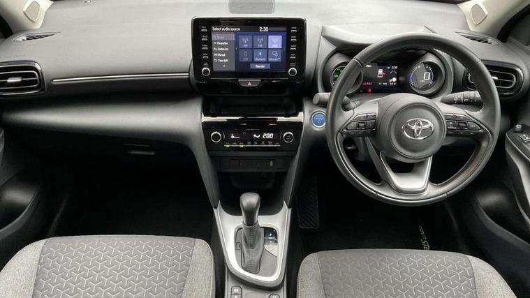 4.2" multi information display, 8" Toyota touch 2 multimedia system with Smartphone integration with Apple CarPlay and Android auto, Adjustable speed limiter, Bluetooth connectivity, Digital speedometer, Driver attention alert system, eCall emergency system, Electric power steering, Full range intelligent adaptive cruise control, Hybrid system indicator, Key reminder warning, Lane trace assist, Multimedia, audio, telephone and voice recognition switches on steering wheel, My T Connected services, Pre-collision system enhanced with emergency steering assist, Reversing camera, Road sign assist - RSA, Steering assisted vehicle stability control, 6 speakers, DAB Digital radio, USB connection, 3rd brake light, Acoustic windscreen glass, Anti-jam protection on power windows, Auto high beam [AHB] with on/off switch, Automatic headlights, Black lower front grille, Black Shark-fin antenna, Black upper front grille, Black wheel arch mouldings, Body colour door handles, Body colour front bumper, Body colour rear bumper, Electric adjustable heated door mirrors, Follow me home headlights, Front and rear electric windows with auto up/down function, Front intermittent wipers, Halogen projector headlights, Headlight cut off reminder, Indicators integrated on door mirrors, Intermittent rear wiper, LED daytime running lights, LED Indicators, Manual headlight levelling, Manually retractable door mirrors, Noise reduction layer on windscreen, Rain sensor, Rear side wing doors, Rear spoiler, Rear window defogger, 12v power outlet - front, 2x Rear coat hooks, 3 seat bench in 2nd row, 3 spoke leather steering wheel, 60/40 split folding rear seat, Adjustable speed limiter switch on steering wheel, Auto air conditioning, Boot light, Central armrest, Driver and front passenger personal lights, Fabric door trim, Fabric upholstery, Front console box, Front cup holders, Front head restraints, Glovebox, Grey roof lining, Height adjustable driver's seat, Height adjustable front passenger seat, ISOFIX child restraint system, Lane departure alert switch on steering control, Leather gearshift, Manual telescopic and tilting steering wheel, Mirror on driver and passenger sun visor, Pollen air filter, Rear head restraints, Single front passenger seat, Soft tonneau cover, 3x3 point rear seat belts, ABS+EBD+Brake assist, Driver and passenger central airbags, Driver and passenger front airbags, Driver and passenger side airbags, Electronic parking brake, Emergency brake light system (EBS), Front seat belt reminder, Hill start assist control (HAC), Passenger airbag on/off switch, Pre-collision system with pedestrian and cyclist detection, Rear door child safety locks, Rear passenger side airbags, Rear seat belt reminder, Traction control, Tyre pressure warning system, Immobiliser, Intrusion alarm, Keyless smart entry with push button start, Power door locks, Power passenger window lock, Remote door lock, 16" 10 spoke alloy wheels, Tyre repair kit,