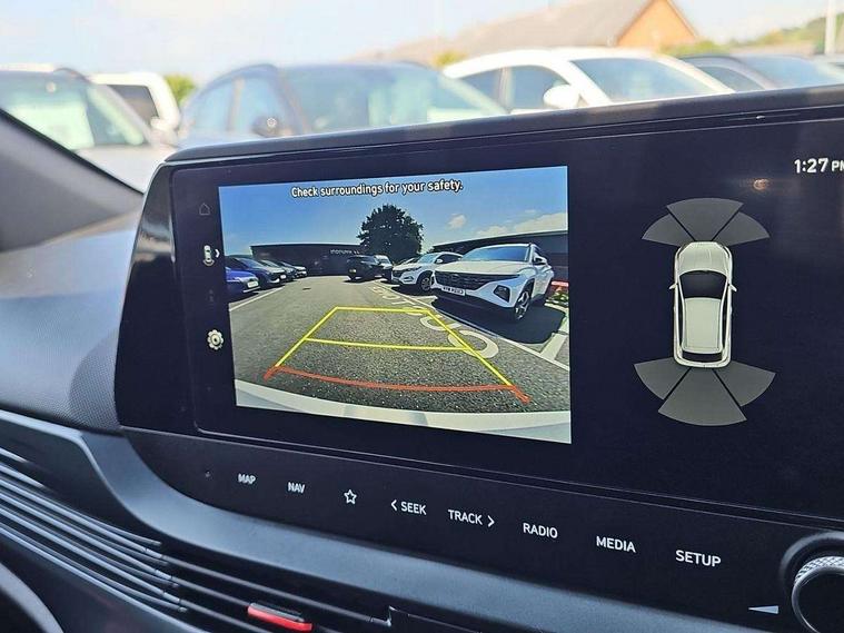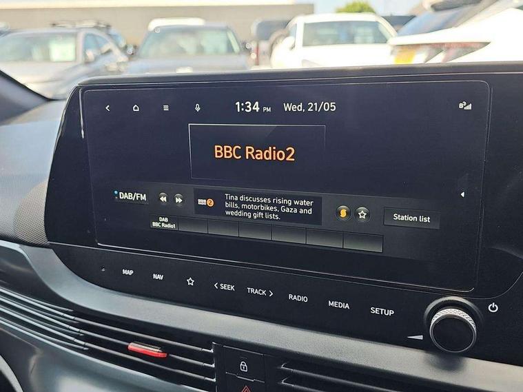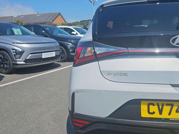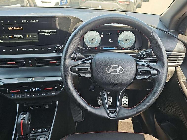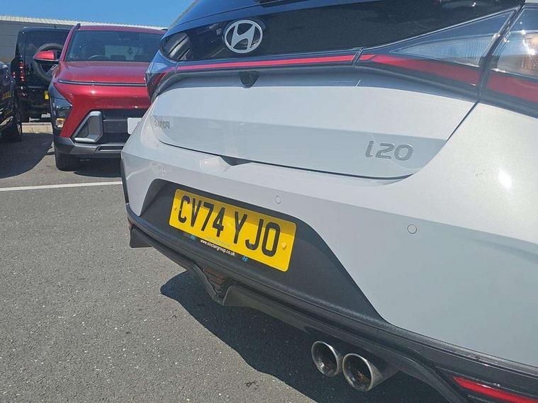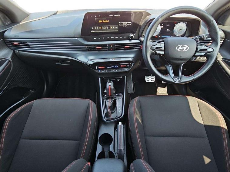 10.25" Touchscreen satellite navigation including mapcare and live services, 2nd Gen eCall, 8" Touchscreen DAB Radio with android auto and apple carplay, Apple car play/Android Auto, Driver's supervision instrument cluster with 10.25" LCD display, E-call, Forward collision assist with car, pedestrian and cycle detection, Front parking sensor, Intelligent speed assist, Lane follow assist, Lane keep assist, MAP OTA updates, PAS, Rear parking sensor, Rear view camera with dynamic guidelines, Wireless charging pad, Bose premium sound system, USB C and USB A ports in front, USB C Port in rear, Automatic defog system for front windscreen, Automatic dimming rear view mirror, Automatic headlights with dusk sensor, Automatic windscreen wipers, Body colour door handles, Electric front and rear windows, Front fog lights, Heated door mirrors with electric adjustment and power folding function, High beam assist, LED daytime running lights, LED Headlights, LED positioning lights, LED taillights, Privacy glass - Rear windows and tailgate, Rain sensor, Rear roof spoiler with integrated LED brake light, Rear side wing doors, Rear wiper, Repositioned flat metal hyundai emblem, Shark fin antenna, Windscreen with acoustic film, 3 seat bench in 2nd row, Adjustable head restraints, Air conditioning climate control, Automatic de-fog system for front windscreen, Cloth upholstery, Driver and passenger illuminated vanity mirrors with driver ticket holder, Floor mats, Front cup holder, Heated front seats, Heated steering wheel, Height adjustable driver's seat, Isofix, Leather wrapped steering wheel and gear knob, Luggage hooks, Multi colour ambient lighting, Rear Seats - Split Folding (60/40), Single front passenger seat, Sport metal pedals, Steering wheel remote controls, Tilt and telescopic steering wheel adjustment, 3x3 point rear seatbelts, Anti-lock brake system (ABS), Autonomous emergency braking, Child locks on rear doors, Driver and front passenger airbags, Rear seat alert, Side and Curtain airbags, Tyre pressure monitoring system, Immobiliser, Smart key with keyless entry and engine start/stop button, 17" N Line black alloy wheels, Tyre repair kit,
