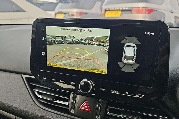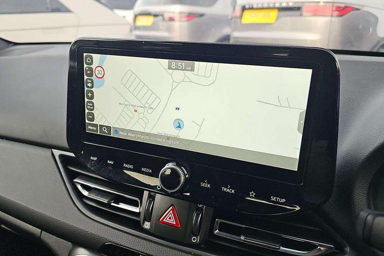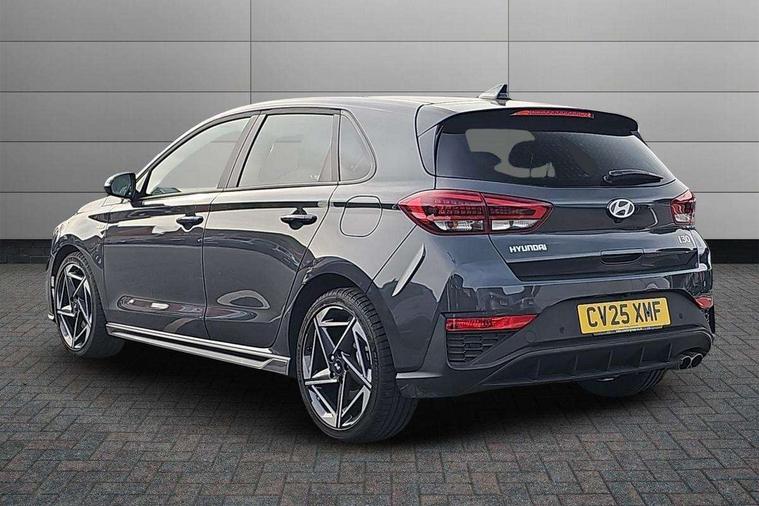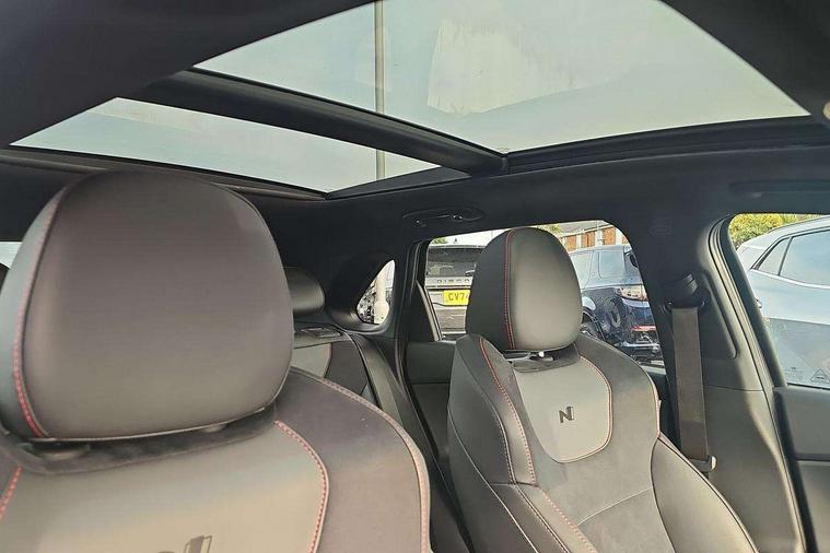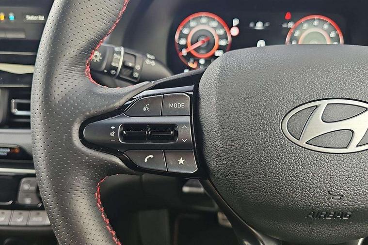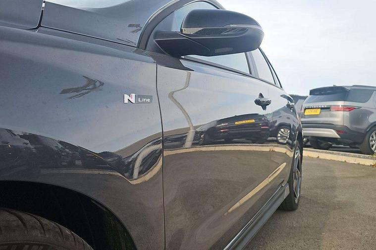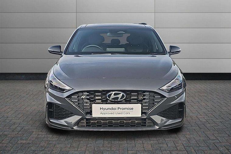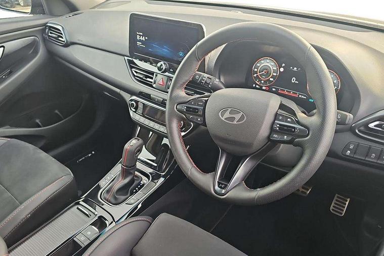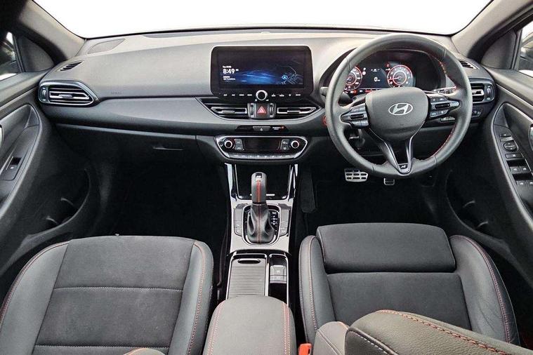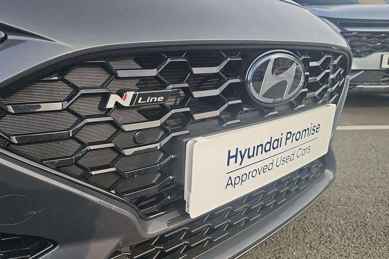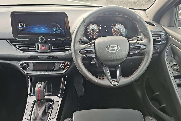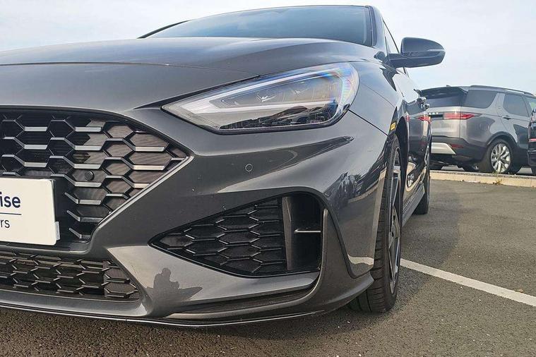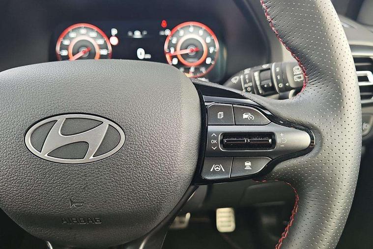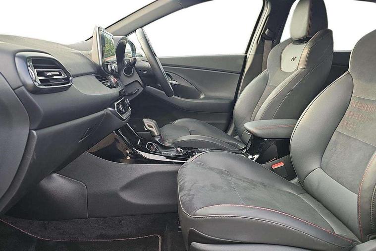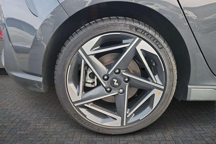 10.25" Digital drivers display supervision instrument cluster, 10.25" Infotainment screen, navigation with bluelink and map care, Android Auto, Apple car play, Bluetooth connectivity with voice recognition, Cruise control, Drive mode select, e-Call (Emergency button system), Forward Collision Avoidance Assist Junction Turning (FCAJX), Front 1 + Rear 2 USB Type-C port for charging, Front and rear parking sensors, Highway Driving Assist (HDA), Intelligent speed limit assist (ISLA), Lane follow assist, Lane keep assist, PAS, Rear view camera, Wireless phone charging pad, Automatic defog system for front windscreen, Automatic headlights, Black door mirrors with integrated indicators, Black door surround, Body coloured bumpers, Door mirror puddle lights, Electric adjustable heated door mirrors, Electric folding door mirrors, Electrochrome rear view mirror, Front fog lights, Gloss black radiator grille, Glossy black side skirt, LED daytime running lights, LED headlights with static cornering light, LED rear combination lights, LED tail lights, Panoramic sunroof, Privacy glass, Rain sensor, Rear fog lights, Rear roof spoiler with integrated LED brake light, Rear side wing doors, Rear wiper, Twin muffler rear exhaust, 3 seat bench in 2nd row, 4 Way adjustable driver lumbar support, 60/40 split folding rear seat, Central tunnel in glossy black, Centre armrest with cup holder, Driver's seat manual adjustments, Driver/passenger sunvisors and illuminated vanity mirrors, Dual zone climate control air conditioning, Front armrest with storage box, Front head restraints, Front passenger's seat manual adjustment, Leather wrapped steering wheel and gear knob, Leather/Faux suede upholstery, LED interior illumination, Luggage cargo net, Metal pedals, Rear head restraints, Seat back pockets, Single front passenger seat, Ski through channel, Stain chrome effect interior door handles, Start/stop button bezel colour in red, N Line exterior design pack - I30, Trailer wiring pack - I30, 3x3 point rear seatbelts, Anti-lock braking system (ABS), Autonomous emergency braking, Childproof rear door locks, Electric parking brake, Electronic stability control, Hill start assist control (HAC), Rear occupancy alert, Tyre pressure monitoring system (TPMS), Alcohol interlock wiring preparation, Smart key with keyless entry and engine start/stop button, 18" 5 spoke silver alloy wheels, Michelin sport tyre, Temporary mobility kit (TMK),