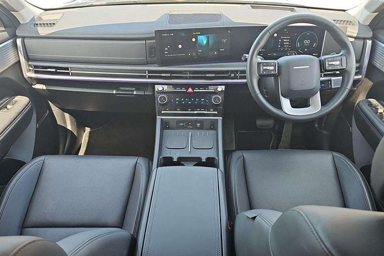 12.3" Drivers supervision instrument cluster with LCD display, 360 degree parking sensors, Blind spot collision avoidance assist (BCA), Blind spot view monitor (BVM), Bluelink and Wireless Apple Carplay/Android Auto, Bluetooth connectivity with voice recognition, Drive mode selector, Driver status monitor (DSM), Dual wireless phone charging pad, Emergency services call system, Forward collision avoidance assist (FCA 2.0), Head up Display, Highway drive assist 2 (HDA 2), Intelligent speed limit assist (ISLA), Lane departure warning system (LDW), Lane Follow Assist 2 (LFA 2), Lane keeping assist (LKA), Low washer fluid warning, Navigation based smart adaptive cruise control with stop and go, Over the air software updates (OTA), Parking Collision Avoidance Assist-Reverse (PCA-R), Power assisted steering, Remote smart parking assist, Safe exist assist (SEA), Smart electric tailgate with hand's free opening function, Surround view monitor, Self levelling suspension, Shift by Wire Gear Selector (SBW), 12.3" Touchscreen display with satellite navigation, 2nd Row USB C Ports x2 Charging, 3rd Row USB C Ports x2 Charging, Front USB C port 1 charging and 1 data/charging, Premium BOSE sound system with 12 speakers and subwoofer, Steering wheel audio, phone and cruise controls, Automatic headlights with dusk sensor, Automatic windscreen wipers with rain sensor, Body colour bumpers, Digital centre mirror, Dual glass electric tilt and slide sunroof, Dynamic welcome light, Electric adjustable/heated/auto power folding door mirrors, Front and rear electric windows, Heated rear window, Hidden rear wiper, High beam assist, LED daytime running lights, LED Headlights, LED indicator lights, LED indicators in door mirrors, LED positioning lights, LED taillights, LED third brake light, Manual rear door blinds, Rear side wing doors, Rear windows and tailgate privacy glass, Roof rails, Solar glass windscreen and front windows, Windscreen auto defog function, Windscreen with acoustic film, 2nd and 3rd row center armrest with cupholder, 3rd row head restraints, Centre rear head restraint, Dual zone climate control air conditioning, Electrically adjustable front seats with 2 way electric lumbar support, Front head restraints, Front seats with memory, Heated front seats, Heated rear seats, Height and reach electrically adjustable steering column, Leather upholstery, Leather wrapped heated steering wheel, Luggage cover, Luggage hooks, Luggage net, Multi colour LED ambient lighting, Rear head restraints, Single front passenger seat, Split folding (50/50) third row seats, Split folding (60/40), sliding and reclining second row seats, Sun Visors with driver and passenger illuminated vanity mirrors, Two front cup holders, Ventilated front seats, Trailer wiring pack - Santa Fe, 3 point seatbelts on all seats, Adjustable regenerative braking paddle shifters, Airbag - Front, front side, curtain and centre front airbags, Anti-lock brake system (ABS), Dynamic brake control, Electric parking brake with auto hold function, Electronic Stability Control (ESC), Hill start assist control (HAC), Manual child lock in rear doors, TSA (Trailer Stability Assist), Tyre pressure monitoring system, Immobiliser, 20" Standard silver alloy wheels, Tyre mobility kit,