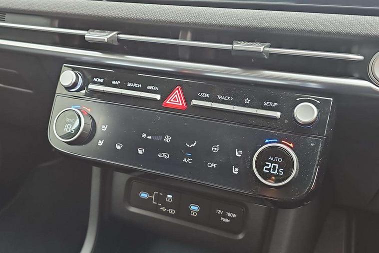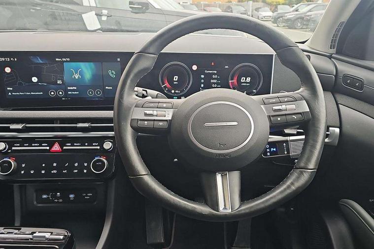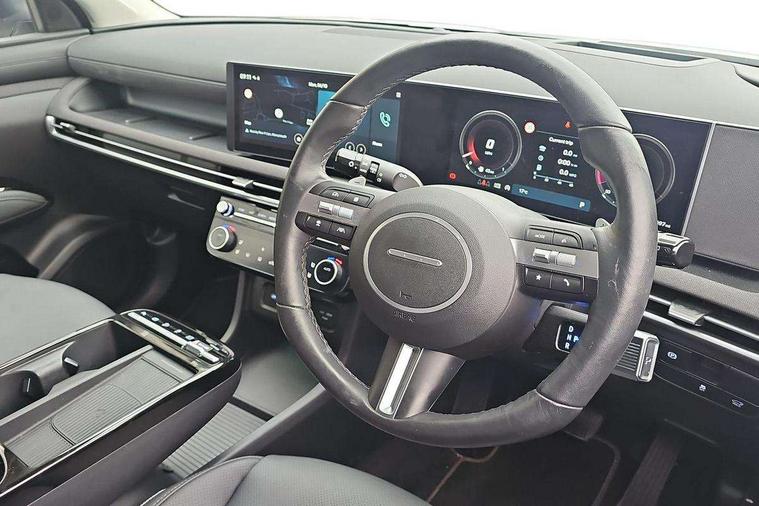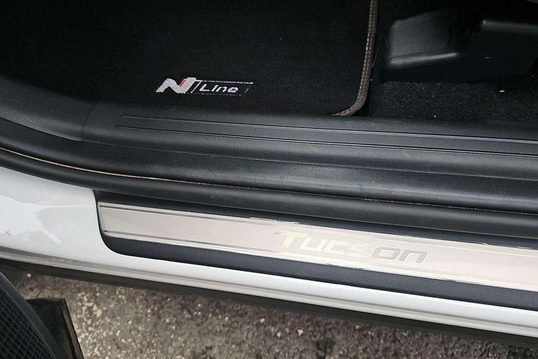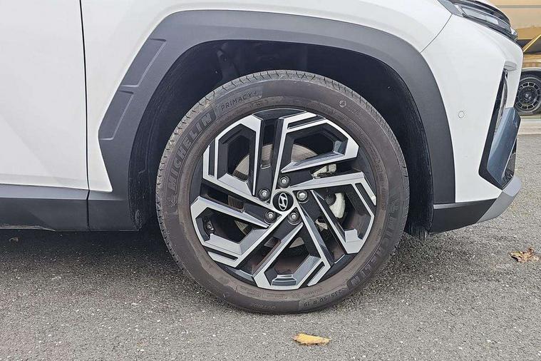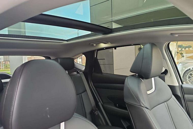 12.3" LCD display with driver's supervision instrument cluster, 12.3" widescreen navigation with bluelink and mapcare, Blind spot view monitor, Bluetooth system, Cruise control - smart adaptive speed control with stop and go function, Digital clock, Drive mode selector, Driver attention warning, E-call, Emergency stop signalling system, Forward Collision Avoidance Assist (FCA) - Car, Pedestrian and Cycle, Forward Collision Avoidance Assist Junction Turning (FCAJX), Front and rear parking sensors, Front, rear and side parking distance warning, Highway Driving Assist (HDA), Hyundai road side assistance, Intelligent speed limit assist, Lane follow assist, Lane keep assist, Over the air updates(OTA), Parking collision avoidance assist (PCA), PAS, Rear camera and guidance parking system, Rev counter, Smart power tailgate, Surround view monitor, Tailgate open warning light, Trip computer, Trip odometer, Voice recognition, Water temperature gauge, Windscreen washer fluid sensor and warning indicator, Wireless Apple CarPlay/Android Auto, Wireless phone charging pad, Shift by Wire Gear Selector (SBW), 2 front and 2 rear USB-C ports, DAB Digital radio, Krell premium audio system with 8 speakers and subwoofer, Steering wheel mounted audio/phone controls, Adjustable intermittent front windscreen wipers with aero wiper blade, Auto dimming rear view mirror, Automatic defog system, Automatic headlights with dusk sensor, Automatic windscreen wipers with rain sensor, Black wheel arches, Body colour bumpers, Body colour door mirrors with integrated indicators, Body colour exterior door handles, Electric tilt/slide panoramic sunroof, Electrically adjustable, heated and power folding door mirrors, Follow me home headlights, Front and rear electric windows with anti-trap mechanism and one touch control, Front fog lights, LED 3rd brake light, LED daytime running lights, LED rear lights, Matrix LED headlights, Positioning Lights - LED, Privacy glass - Rear windows and tailgate, Rear side wing doors, Rear wash/wipe with intermittent wipe setting, Roof rails, Tinted glass with windscreen shade band, Trailer stability assist, 12V power outlets in front console and luggage compartment, 3 seat bench in 2nd row, 40/20/40 split folding rear seat, 64 colours interior ambient lighting, Adjustable head restraints (Up and down), Cupholders in rear armrest, Door courtesy lights, Driver and passenger sunvisors with illuminated LED vanity mirrors, Driver's seat electric adjustments, Driver's seat memory, Front and rear door pockets, Front armrest with storage box, Front centre console and door bottle holders, Front passenger's seat electric adjustments, Heated front seats, Heated rear seats, Heated steering wheel, Height/reach adjustable steering column, Illuminated/air conditioned glove compartment, ISOFIX child seat anchorage points attached on outer rear seats, Leather upholstery, Leather wrapped steering wheel and gear knob, Luggage compartment lighting, Luggage cover, Luggage hooks, Luggage net, Map and reading lights, Rear seat remote folding function, Rear side window sunblind, Reclining rear seats, Retractable load cover, Single front passenger seat, Sunglasses holder, Three zone climate control, Touch sensitive climate controls with temperature dials, TUCSON branded metal door scuff plate, Underfloor boot compartment, Ventilated front seats, Wireless charging with armrest, Trailer wiring package - Tucson, 3x3 point rear seatbelts, Active bonnet, Airbag - Front, front side, curtain and centre front airbags, Anti-lock brake system (ABS), Brake assist function, Childproof rear door locks, Curtain airbag roll over sensor, Downhill brake control, Electric parking brake, Electronic stability control, Front and rear seatbelt reminder, Front passenger airbag deactivation switch, Front seatbelt pretensioners, Hill start assist control (HAC), Multi-Collision braking, Outer rear seatbelt height adjustment, Seatbelt height adjustment for front seats, Traction control, Tyre pressure monitoring system with individual tyre pressure display - TPMS, Vehicle stability management, Deadlocks, Immobiliser, Locking wheel nuts, Remote control central locking, Smart key with keyless entry and engine start/stop button, Speed sensitive auto door locking, Thatcham category 1 alarm, 19" Alloy wheels, Tyre repair kit,