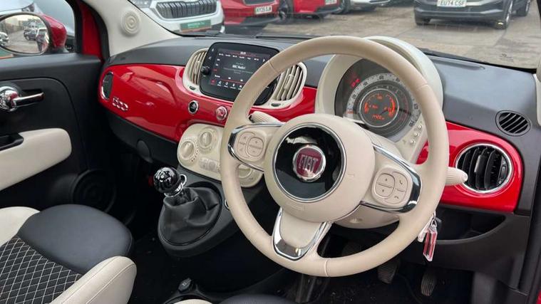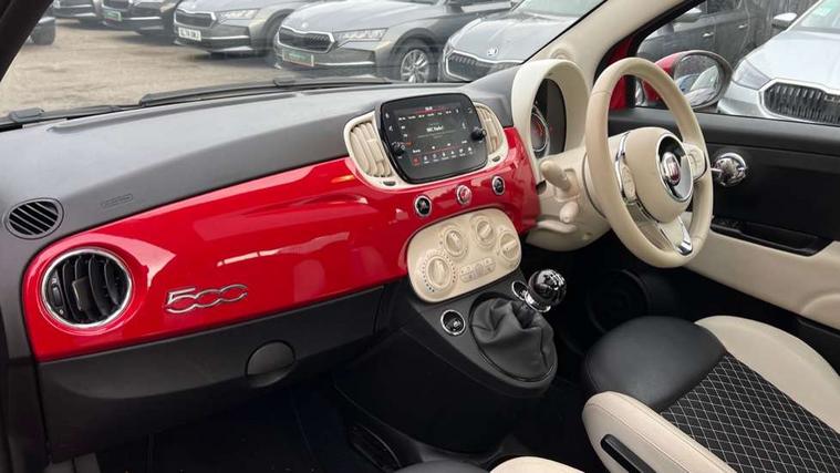 Apple car play/Android Auto, Cruise control, E-call, External temperature gauge, Power assist steering, Rear parking sensor, Speed limiter, Stop/start system, Trip computer, 4 speakers, 7" HD Touchscreen Radio, Bluetooth, USB and DAB, Rear speakers, 3rd brake light, Auto headlights, Body colour bumpers, Body coloured electrically adjustable door mirrors, Chrome plated exterior door handles, Dolcevita badge on fender, Dusk and rain sensors, Electric front windows, Fixed glass sunroof with sunblind, Front fog lights, Halogen headlamps, Heat insulated glass, Heated rear windows with wash wipe, LED daytime running lights, Rear side wing doors, Rear wiper, 1 passenger grab handle, 2 seat bench in second row, 50/50 split folding rear seats with height adjustable rear headrests, Air conditioning, Auxilliary 12V power socket, Chrome kit, Front headrests, Height adjustable drivers seat, Height adjustable steering wheel, Isofix child seat preparation, Single front passenger seat, Techno leather steering wheel with audio controls, 7 airbags - Driver, passenger, side, window and drivers knee airbags, ABS/EBD, ESC + ASR/MSR + HBA + Hill holder, Passenger airbag deactivation system, Traction control, Tyre pressure monitoring system, Automatic door locking, Immobiliser, Locking fuel filler cap, Remote central locking, 15" Alloy wheels,