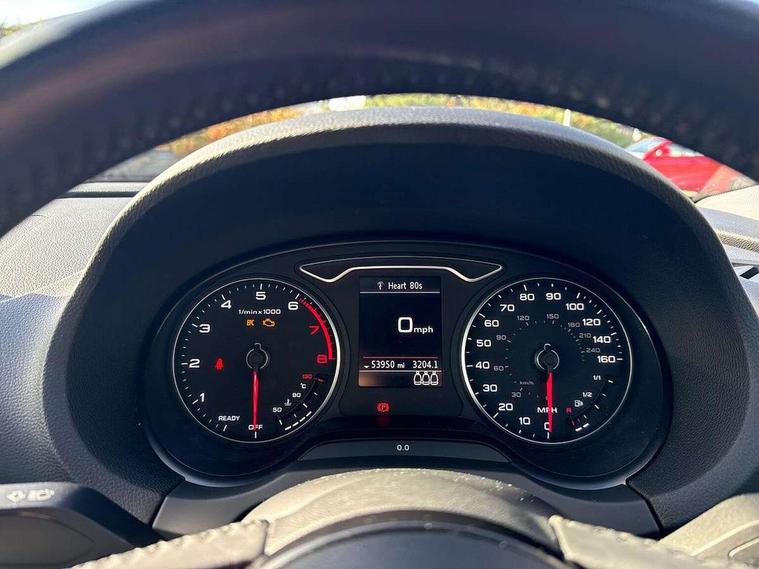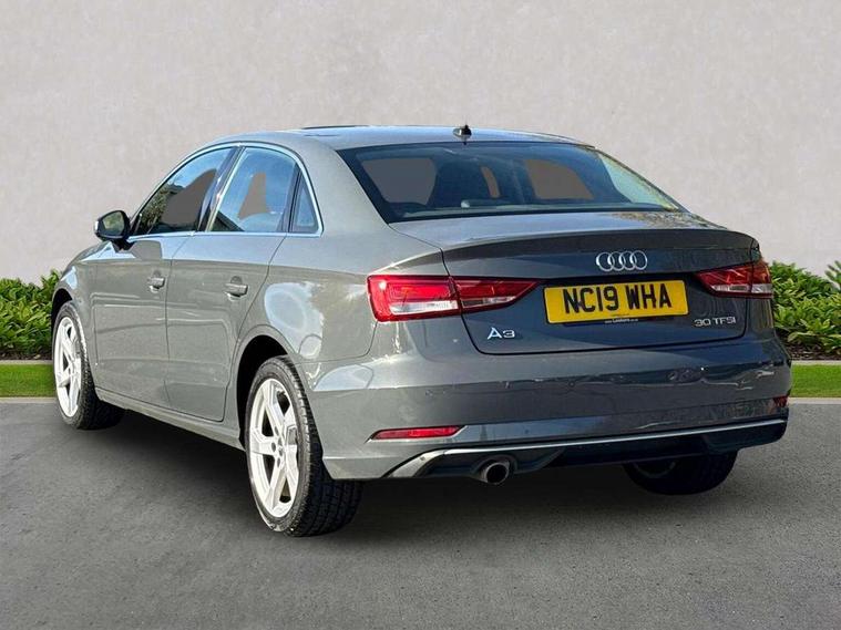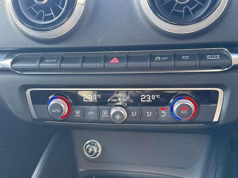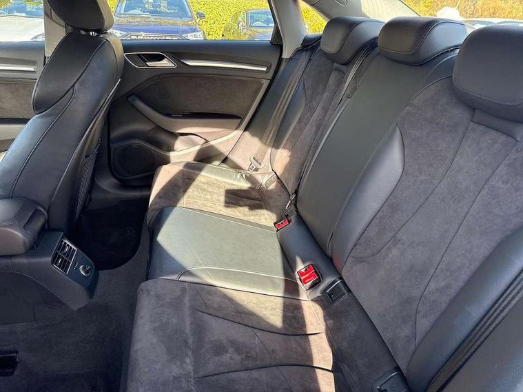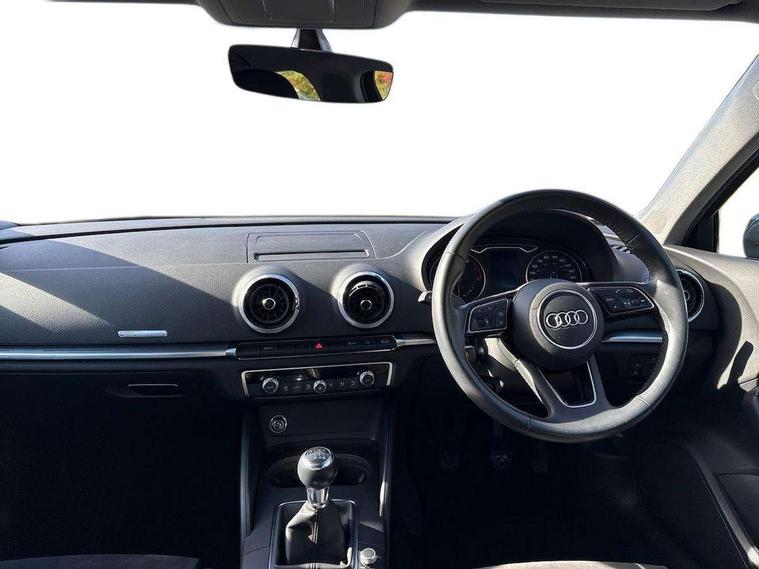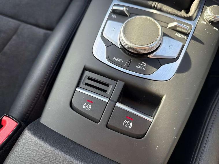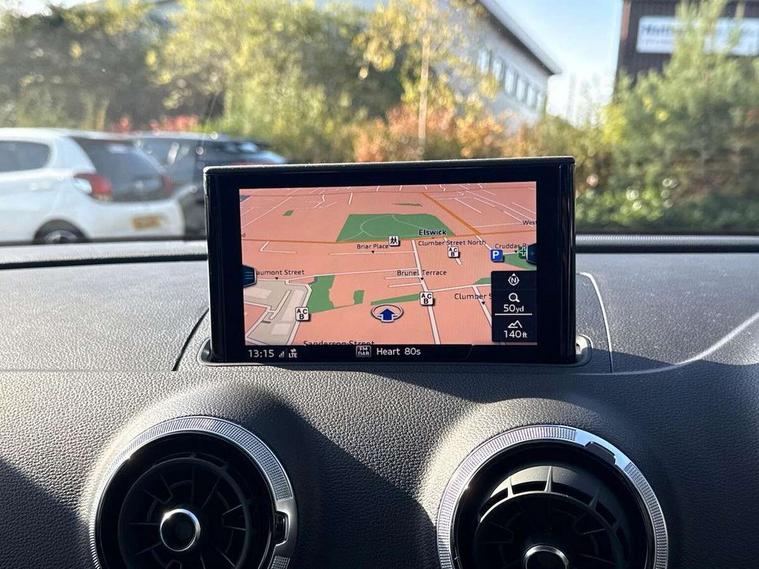 Audi connect, Audi drive select, Audi smartphone interface, Automatic start/stop system, Bluetooth interface, Colour driver's information system display, Cruise control + speed limiter, Electro-mechanical PAS, SD card based MMI navigation, Service indicator, Voice control system, Dynamic suspension, 2 USB interfaces and Aux-In jack, CD player, DAB Digital radio, MMI radio plus with 7" colour MMI screen and MMI controller, Two SDXC card slots, Aluminium side window trim, Auto dimming rear view mirror, Automatic lights and wipers, Body colour bumpers, Body colour door mirrors, Body colour roof spoiler, Electrically adjustable and heated door mirrors with integrated LED side indicators, Front and rear electric windows, Heated rear window, Heated windscreen washer jets, Illuminated roof module, Model and engine designation badges at rear, Passive door reflectors, Single chrome exhaust tailpipe, Sport specific side air inlet grille and diffuser insert, Xenon headlights with LED Daytime running light, 3 adjustable rear headrests, 3 spoke leather multifunction sports steering wheel, 4 lashing points to secure luggage, 60/40 split folding rear seat, Adjustable front centre armrest, Aluminium door sill trims, Cloth headlining, Driver/passenger sunvisors, Dual zone electronic climate control, Front and rear interior lights with delay, Front sports seats, Front/rear floor mats, Height/depth adjustable steering column, Illuminated glovebox, Illuminated luggage compartment, ISOFIX child seat mounting and Top Tether with front passenger airbag deactivation, Manual height adjustable front seats, Storage compartments in doors side trims, centre console and under front drivers seat, Non smoking pack - A3, Storage and luggage pack - A3/RS3, 3 point seatbelts on all seats, ABS/EBD, Active front headrests, Airbags - front driver/passenger, front & rear side, curtain, drivers knee, ASR, EDL, Electromechanical parking brake, ESC - Electronic Stability Control + traction control, Hill hold assist, Predictive pedestrian protection, Seatbelt warning, Tyre pressure warning, Warning triangle and first aid kit, Anti theft alarm, Anti-theft wheel bolts, Immobiliser, Remote control central locking, Aluminium air vent surrounds, Aluminium mistral silver inlay, Aluminium trim elements, Tool kit, Tyre repair kit,