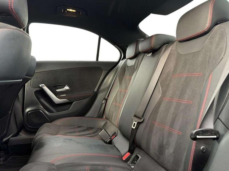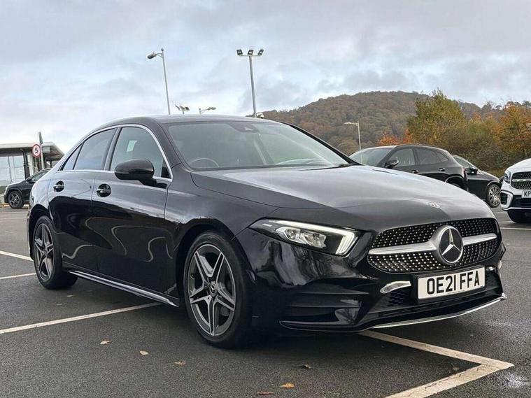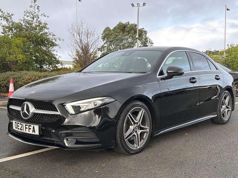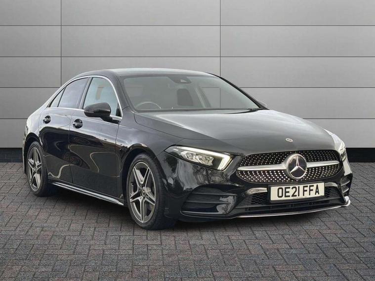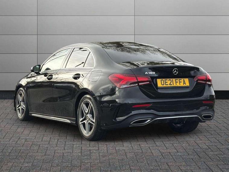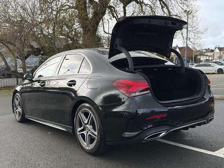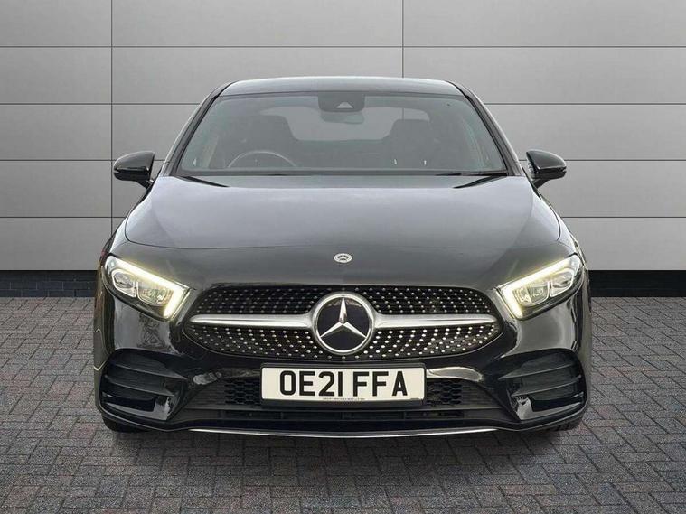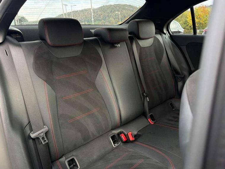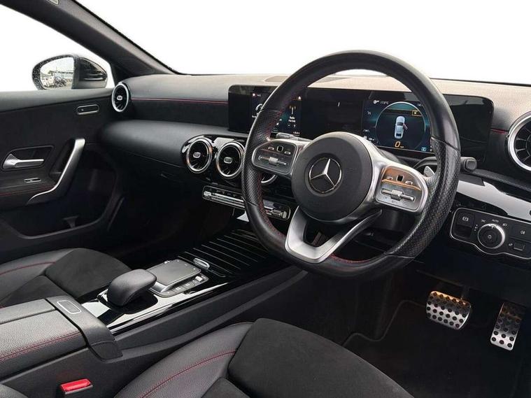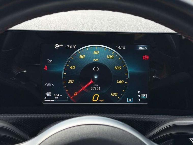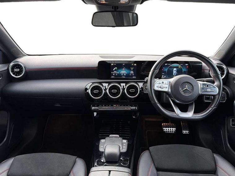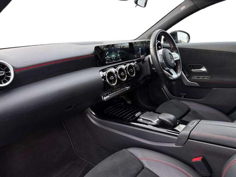 180 degree rear view camera with parking guidelines, 7" colour screen in instrument panel, 7" touchscreen media display, Attention assist, Brake pad wear indicator warning light, Car wash mode, Cruise control + speed limiter, Direct steering, Dual bluetooth interfaces, DYNAMIC SELECT with a choice of driving modes (ECO, Comfort, Sport and Individual), ECO start/stop function, Fluid level warning indicator for fuel, oil, coolant and washer fluid, Hard-disk navigation, Hey Mercedes Voice activation, Lamp failure indicator, Mercedes me connect including emergency call system, accident recovery, breakdown and maintenance management, Mercedes me remote services, Outside temperature gauge, Owners manual in English, Pre-installation for private car sharing, Preinstallation for Mercedes Benz link, Service indicator (ASSYST), Speed sensitive power steering, Trip computer, Lowered comfort suspension, Rear axle torsion beam, 2 USB ports (type C) in rear stowage compartment and one in front of center console, 6 speakers, DAB Digital radio, MBUX multimedia system with DAB digital radio and touchpad including satellite navigation, Mercedes-Benz sound system - 100W, 4 Electric Front and Rear windows, Adaptive brake lights, AMG bodystyling - Front apron with splitter in chrome, rear apron with chrome trim and chrome visible trim elements in tailpipe, Black weather strip, Body colour bumpers, Body colour door handles, Body colour side skirt, Body coloured door mirrors, Chrome beltline trim, Diamond radiator grille with chrome pins and silver louvre + chrome insert, Electric adjustable and heated door mirrors with integrated LED side indicators, Exhaust system - Twin visible tailpipes in polished stainless steel, Headlamp assist automatic headlamp activation, Heated glass rear windscreen + timer control, LED high performance headlamps with integrated LED daytime running lights, LED tail lamp, LED third brake light, Privacy glass, Radio aerial, Rain sensing windscreen wipers with two sensitivity settings, Rear fog lights, Window line trim strip in chrome, 3 Spoke flat bottom leather multi function steering wheel with perforated leather in grip area, 40:20:40 split folding rear seats, Artico man-made leather/Microfibre Dinamica upholstery with red contrast stitching, Auto Mercedes-Benz child seat recognition sensor, Black air vents with surround in silver chrome, Black roof lining, Brushed stainless steel sports pedals with rubber studs, Controller on centre console with chrome surround, Floor mats with stitched edging and AMG lettering, Front centre armrest with storage compartment, Front door sills with Mercedes Benz lettering, Front seat backs luggage nets, Front seat cushion length adjustment, Front sports seats with adjustable head restraints, Galvanished gear shift paddles on steering wheel, Heated front seats, Height/reach adjustable steering column, Interior mirror with reading lamps in black and frameless, Manual height adjustable front seats, Rear head restraints, Seat occupancy sensor for front passenger seat, Stowage compartment in centre console with retractable cover, Sunvisors with illuminated vanity mirrors, Touchpad on center console, Twin front cupholders, Two zone thermotronic luxury automatic climate control, Light and sight pack - A Class, Seat comfort pack - A Class, 3 rear 3 point seatbelts, ABS with Brake Assist, Active bonnet, Active brake assist includes forward collision warning system with autonomous braking, Adaptive brake assist with hold function and hill start assist, Black seatbelts, Childproof locks manually operated for rear doors and electrically operated for rear power windows, Crash responsive emergency lighting, Driver and passenger head and side airbags, Drivers knee airbag, Dual stage driver/passenger airbags, Electronic parking brake, ESP curve dynamic assist, ESP with ASR, Front and rear seatbelt reminder, Front brake callipers with Mercedes Benz lettering, ISOFIX and top tether child seat fixing points in two outer rear seats, Tyre pressure monitoring system, Warning triangle and first aid kit, Window airbags, Alarm system/interior protection/immobiliser, Keyless Go, Remote central locking and crash sensor with emergency opening function, Urban guard vehicle protection system with immobiliser and interior protection, Dinamica microfibre trim in black, 18" AMG 5 twin spoke light alloy wheels in titanium grey with highsheen finish, Summer tyres, Tirefit sealant kit,