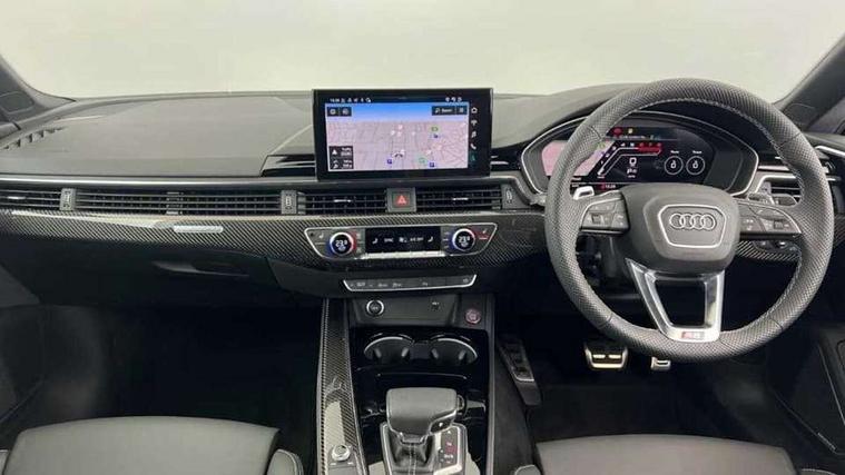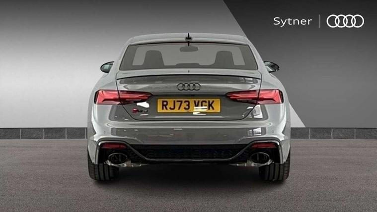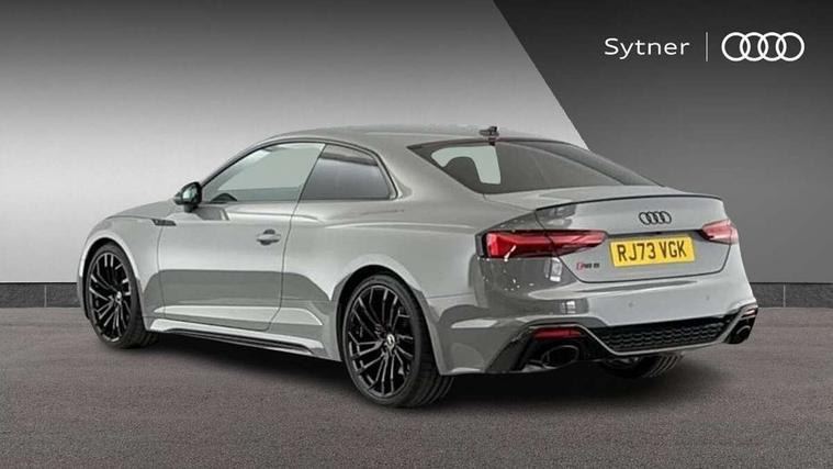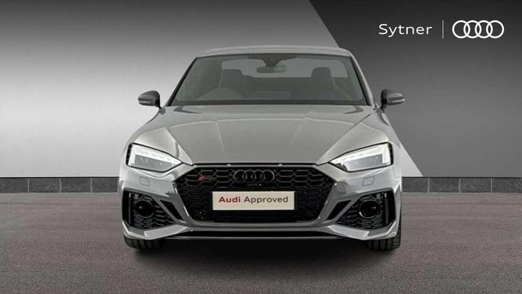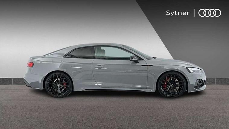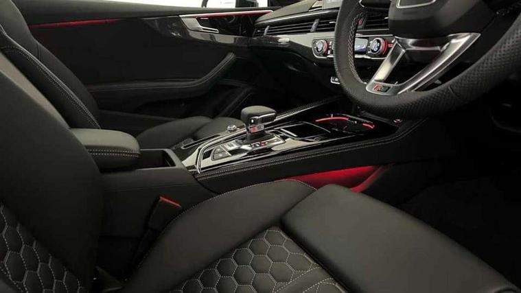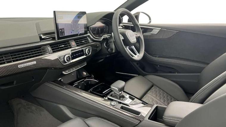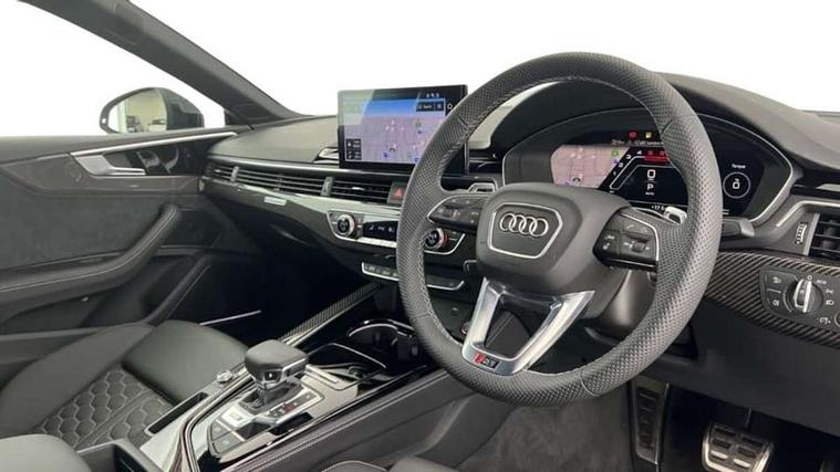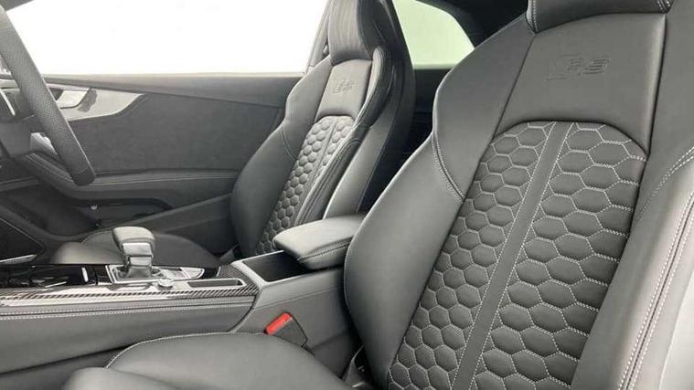 Audi connect safety and service (e-call), Audi parking system plus with front and rear sensors, Audi side assist, Audi smartphone interface, Audi Virtual Cockpit with RS specific design and 12.3" display, Automatic start-stop system with coasting functionality and efficiency programme, Bluetooth interface, Camera based traffic sign recognition, Electromechanical power steering, Email, calendar and text messages displayed via MMI, Lane departure warning, MMI Navigation plus with MMI touch includes 10.1" high resolution colour MMI display, 3D map, Rear view camera, RS Audi drive select, RS drive modes on steering wheel, Service interval indicator, Voice control system, Quattro sports differential, Audi sound system, DAB digital radio reception, Audi Beam uses LEDs to project the RS logo, Audi matrix LED headlights with LED rear lights + dynamic front and rear indicators, Audi rings and lettering glossy black, Auto dimming rear view mirror, Body colour door handles, Electric front windows, Electric rear windows, Electrically folding, adjustable and heated door mirrors with integrated LED side indicators and kerb view function for passenger side, Exterior mirror housing in high gloss black, High beam assistant, Larger singleframe grill, LED 3rd brake light, LED daytime running lights, Privacy glass with rear acoustic glazing, Rain and light sensors, Rear boot, RS bumper with quattro lettering, RS5 badges on grille, the front wing panels and rear, RS5 dual branch chrome tailpipes with left and right oval pipes, Windscreen with acoustic glazing, 2 x USB charging port with aux input socket, 40:20:40 split folding 2 seater rear seat bench with rear centre armrest, Aluminium shift paddles, Black cloth headlining, Deluxe 3 zone electronic climate control, Electrically adjustable front seats, Front centre armrest, Front head restraints, Front knee pads in Leatherette, Front/rear floor mats, Heated front seats, Illuminated door sill trims with RS5 logo, ISOFIX child seat mounting and top tether, Pneumatic massage function, Rear head restraints, RS Super Sports seats with contrast honeycomb stitching, Single front passenger seat, Stainless steel pedals, Tool kit, Carbon black styling pack - RS5, LED Interior light pack - RS5, 2 x 3-point rear seat belts, 6 airbags - Driver, front passenger, curtain and side airbags, Attention and drowsiness assist, Electromechanical parking brake, Electronic Stabilisation Control (ESC) including ABS, ASR and EDL, Front passenger airbag deactivation, Height adjustable front seatbelts, Hill hold assist, Multi collision brake assist, Pop-up bonnet for pedestrian protection, Pre sense city, RS Model enhanced braking system, Seatbelt monitoring, Tyre pressure warning, Warning triangle and first aid kit, Anti theft alarm system, Anti theft wheel bolts, Immobiliser, Keyless Go, Remote control key with RS emblem, Carbon twill inlays, 20" 5 Segment spoke Evo style design audi sport alloy wheels in glossy black, Tyre repair kit,