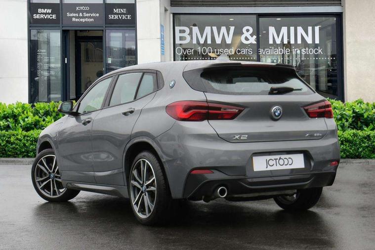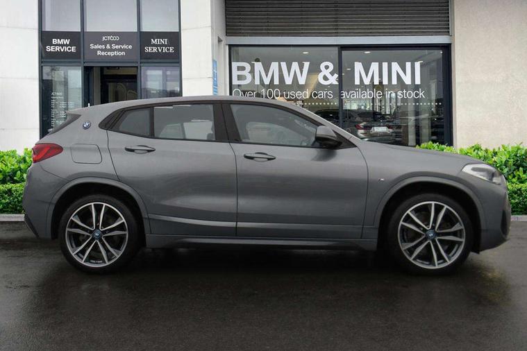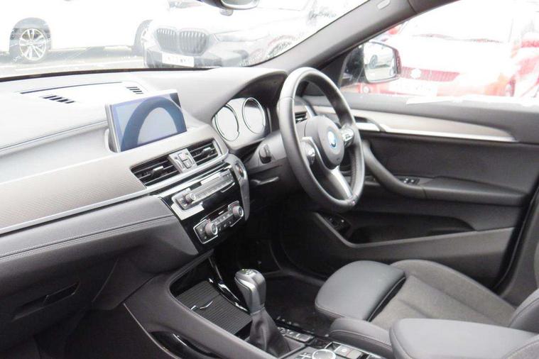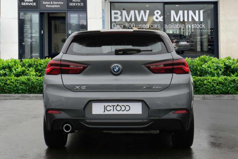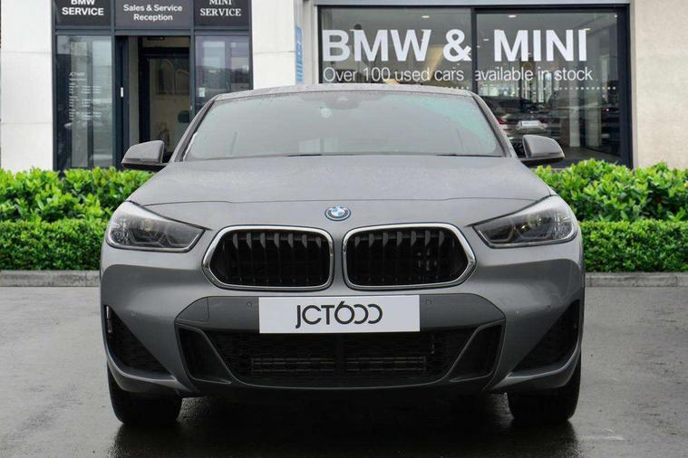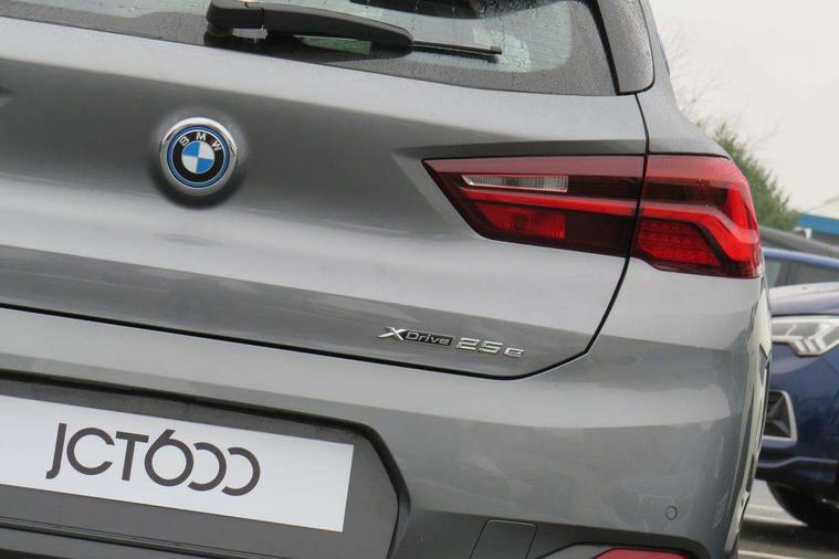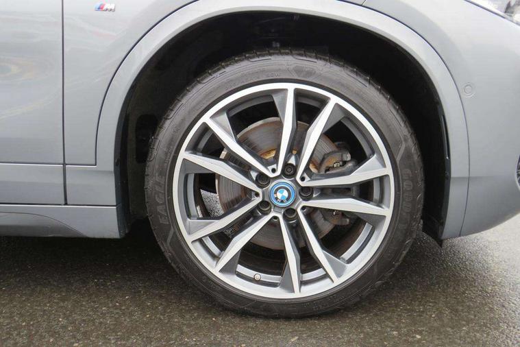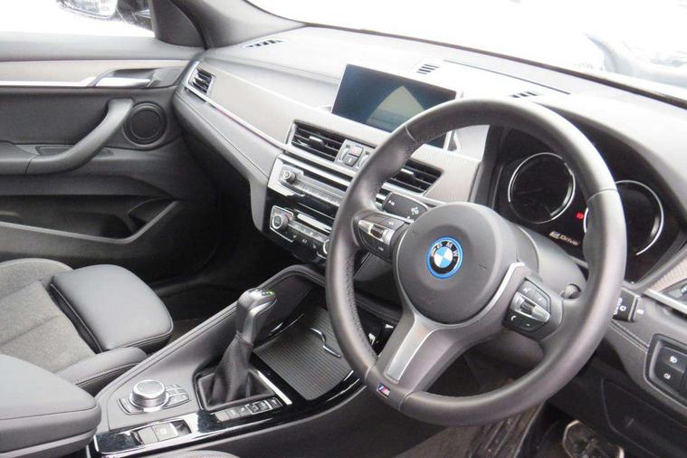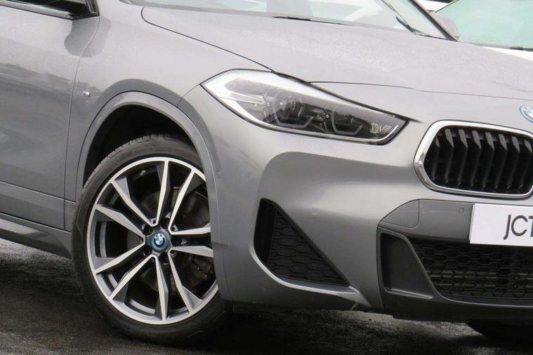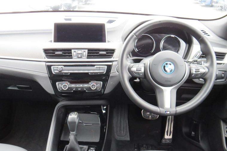 Active Guard incl approach control warning with city brake function and person warning with city brake function, Apple CarPlay preparation, Automatic powered electric bootlid, BMW ConnectedDrive online services, BMW Navigation system with 8.8" monitor, BMW Online services, BMW Teleservices, Brake pad wear indicator in front and rear, Check Control warning system for monitoring of lights and door/luggage compartment open warning, Connected eDrive Services, eDrive button activates auto eDrive, max eDrive and save battery modes, eDrive specific displays in instrument cluster and CID, Electric Power Steering (EPS) with Servotronic, Electro hydraulically controlled multi plate clutch in rear axle, Energy efficient operating strategy, Front axle single joint with specific axle kinematics to minimise drive influences on steering + provide increased rigidity agile driving behaviour, Instrument cluster with black optic and 5.7" colour display + speedometer + tachometer + fuel gauge + instant fuel economy, Integrated owners handbook, Lights on warning by audio warning signal when ignition is switched off, On board computer - average speed+fuel consumption, service interval, clock/date, odometer/trip meter, outside temperature display and ice warning, Operation by iDrive with direct selection buttons and 8 programmable buttons, Optimum shift indicator, Park assist system, Personal Profile, Real time traffic information, TMC for lifetime of vehicle, Variable and stepless distribution of drive torque between front and rear axle, 12V compressor with integrated sealant injection bottle and hose, 2.4kW AC charging with 5m cable, AC Fast Charging, Aluminium lightweight construction including crankcase, Anti roll bar front and rear, Automatic transmission, Balancer shaft, Double VANOS, Drive performance control with ECO PRO comfort + sport mode, eDrive exterior sound, Electric engine installed under rear seats driving the rear wheels, Electronic differential lock, High precision injection, Lithium-ion high voltage battery (10.0 kWh) fitted under rear seats, Performance Control, Transmission of power to rear axle via front axle differential and two-part cardan shaft, Twin tube gas filled shock absorbers with degressive characteristic curve, xDrive electric drive, after activation of the electric motor and common drive via all four wheels, 6 Speaker Loudspeaker system, Bluetooth audio streaming, BMW professional radio, DAB Digital radio, Steering wheel mounted audio/telephone controls, Adjustable headlights, Aero curtain, Automatic windscreen wipers and automatic headlight, Automatically dimming rear view mirror, BMW badge on bonnet, tailgate with integrated tailgate release and C pillars, Body colour door handles, Body colour mirror caps, Body colour roof trims, Chrome kidney grille with black vertical slats, Clear lenses direction indicator lights, Dark shadow front air intakes, Daytime running lights, Differentiation of xEV Vehicles - Blue ring around BMW roundel on wheel hub/tailgate/bonnet/c-pillar/steering wheel and side panel inscription, Direction indicator side lights integrated in exterior mirrors using LED technology, Door mirror integrated indicators, Dynamic brake lights, Electric folding exterior mirrors with anti-dazzle, Electrically adjustable and heated door mirrors glass aspheric on driver's side and convex on passenger side, Engine designation on electric bootlid - right, Fingertip control / anti-trap function on electric window, Front and rear bumper system, Front and rear electric windows, Green tinted heat protection glazing, Heated windscreen washer jets, High gloss black front side air intake with matt black insert, High gloss black in window frame, recess covers and B-Pillar trim, High gloss shadowline in window frame, recess covers, mirror frame and B-Pillar/C- pillar trim, High level third brake light, M logo designation in side chrome, M Sport spoiler, Model designation in left tailgate, Rear fog lights, Rear side wing doors, Rear tail lights with LED technology and 3D design, Rear window aerial, Rear window wiper with wash/wipe function, Reversing light in rear light cluster, Shark fin antenna, Single exhaust tailpipes with chrome finishers 90mm in left, Visible VIN plate, Welcome lighting, 2 cupholders in front centre console, 3 Spoke M sport nappa leather multifunction steering wheel, 40:20:40 manually split folding rear seat with two tilt positions for backrest, Anthracite headlining, Armrest in centre section of rear seat backrest and folding, Automatic two zone climate control air conditioning, Child seat ISOFIX attachment for two outer rear seats and front passenger seat with anchorage points, Conditioned based service, Contrast stitching on centre console and mid section of dashboard to match upholstery seam, Driver and front passenger seat heating, Driver/passenger sunvisors with ticket holders, Floor mats with black surround and M flag detail on front mats, Front and rear door armrests, Front armrest, Front axle always driven, Front door sill finishers with M designation, Front head restraints, Front sports seats, Illuminated charging socket with visual display of charge status, Interior light in front centre interior mirrors and rear centre auto interior light activation when door is opened when ignition switched off, Luggage compartment lighting, Luggage compartment loading edge with stainless steel insert, Luggage compartment with underfloor storage and four lashing eyes, Pre-conditioning of battery for optimum operating temperature, Pre-conditioning of interior via BMW Remote app or setting time within iDrive menu, Rake/reach adjustable steering wheel, Single front passenger seat, Three rear headrests, Additional interior lighting pack - X2, Extended storage pack - X2, M Sport aerodynamic pack - X2, 3 point seatbelts on all seats, front pyrotechnic belt tensioners, stopper and belt force limiters, rear coded belt buckles, Airbags - Front driver and passenger, front 