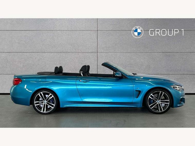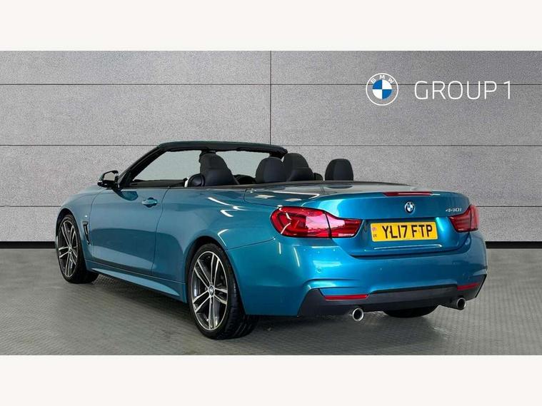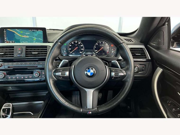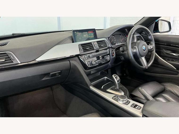 BMW Online services, BMW remote services, BMW Teleservices, Brake pad wear indicator warning light, Check control system, Door/boot open warning, Front/rear Parking distance control, iDrive controller and display with 6.5" monitor, Lights on warning, Oil temperature gauge, On board computer, Outside temperature display, Real time traffic information, Run flat indicator, Service interval indicator, Stop/start button, Drive Performance Control, Electronic differential lock, Sports function on gearbox with steering wheel mounted gearshift paddles, Bluetooth audio streaming, BMW professional radio/CD/MP3, DAB Digital radio, 2 speed adjustable intermittent wipers with wash/wipe function, Auto dimming rear view mirror, Body colour bumpers, Body colour door handles, Body colour door mirrors, Body colour roof mouldings, Chrome kidney grille with black vertical slats, Door sill finishers, Dual chrome exhaust, Electric adjustable heated door mirrors, Electric front windows/one touch facility, Follow me home headlights, Heat insulating tinted glass, Heated windscreen washer jets, High gloss shadow line, LED daytime running lights, LED front fog lights, Left and right single chrome exhaust tailpipes, M aerodynamic bodystyling, Rain sensor including auto headlights activation, Welcome lighting, Windscreen with grey shadeband, 12V sockets in front centre console and passenger footwell, 3 spoke leather M sport multifunction sports steering wheel, Anthracite Velour floor mats, Dual zone climate control, Folding front centre armrest with storage compartment, Folding storage compartment with glasses holder + coin tray, Front cupholders x 2, Front door storage with bottle holder, Front head restraints, Front sports seats with electric side bolster adjustment, Front/rear armrests within door panels, Glovebox with lid, Heated front seats, Integrated rear head restraints, ISOFIX child seat preparation+airbag deactivation, Lashing eyelets in boot, Leather handbrake grip, Reach + rake adjustable steering column, Rear centre armrest, Storage compartment behind rear seat, Storage compartment in centre rear seat base, Storage compartment in rear centre console, Toolkit located in luggage compartment, Extended lights package - 4 Series, 3 point seatbelts on all seats, ABS/EBD, Automatic Stability Control (ASC), BMW emergency call, Brake energy regeneration, Cornering brake control (CBC), Crash Sensor - activates hazard/interior lighting + unlocks doors, Driver seatbelt warning indicator, Driver/Front Passenger airbags, DSC+, Dynamic brake control, Dynamic Traction Control - DTC, Front passenger airbag deactivation, Front seatbelt force limiters, Front seatbelt pretensioner, Front side airbags, Hill start assist, Roll over protection, Side impact protection, Tyre pressure monitor, Warning triangle and first aid kit, Central locking including fuel filler and boot, Drive away door locking, Electronic immobiliser, Remote control Thatcham category 1 alarm,