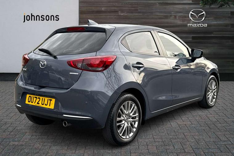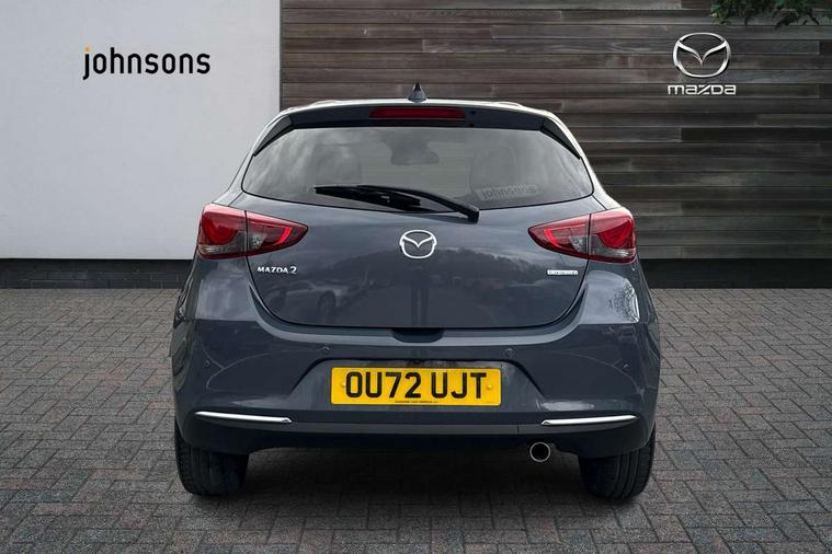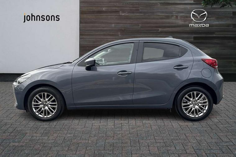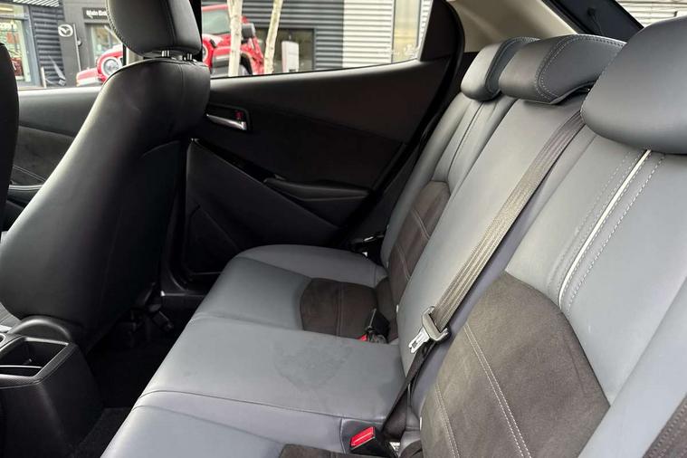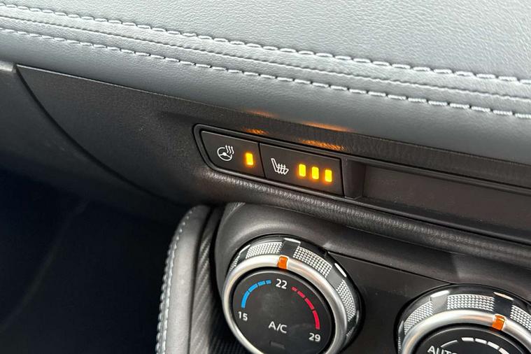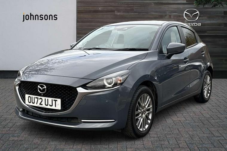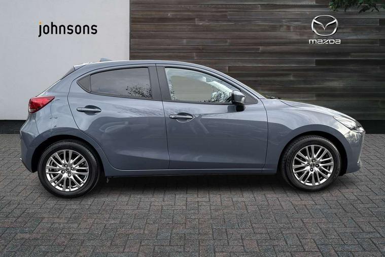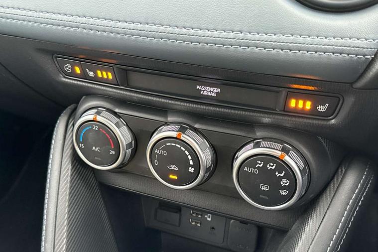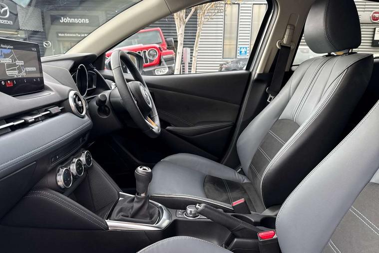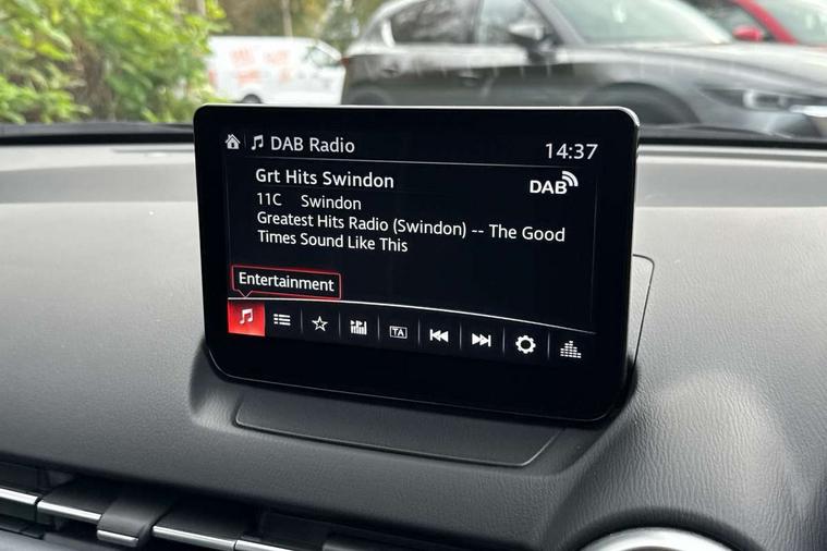 360 View Monitor, Adjustable speed limiter, Analogue rev counter, Blind spot monitoring with rear cross traffic alert, Cruise control, Digital instrument cluster, Digital speed display meter, Driver attention alert system, E-call, Emergency stop signalling system, Engine start/stop button, Front and rear parking sensors, Head up display - Colour active driving display, Integrated bluetooth, Lane departure warning system, Lane keep assist, Mazda connect with 8" colour touch screen, Navigation system, PAS, Service indicator, Trip computer, Wireless Apple CarPlay and wired Android Auto, i-stop, AM/FM/DAB radio with 6 speakers with USB and AUX inputs, Multimedia Commander including separate volume dial, Steering wheel mounted audio/bluetooth controls, Adaptive LED Headlights, Auto dimming rear view mirror, Auto headlight levelling, Body colour door mirrors, Body coloured front bumper with bright lower bezel, Body coloured rear bumper with bright lower mouldings, Chrome exhaust tailpipes, Chrome finish signature wing on front grille, Chrome front lower bezel, Chrome rear lower bezel, Coming/leaving home lighting function, Dusk sensing headlights, Electric adjustable/heated/folding door mirrors, Electric front/rear windows with one touch auto up/down for driver's window, Gloss black front grille, LED indicator lights, LED third brake light, Privacy glass, Rain sensing front wipers with adjustable sensitivity and speed, Rear side wing doors, Rear wiper, Shark fin antenna, Signature LED daytime running lights, 3 seat bench in 2nd row, 60/40 split rear seats, Climate control air conditioning, Driver, Front passenger and two rear grab handles with coathooks, Drivers seat manual slide recline and height adjustment, Drivers/front passengers covered vanity mirrors and drivers ticket holder, Folding rear seats, Front centre storage with two cupholders, Front head restraints, Front passenger and driver door pockets, Front passenger seat manual slide, recline and height adjust, Front passenger seatback pockets, Gear shift indicator, Glovebox, Heated front seats with 3 stage setting, Heated leather steering wheel, Interior courtesy light with integrated spotlight, ISOFIX child seat anchorage points attached on outer rear seats, Leather gear knob, Leather handbrake, Leather upholstery with black granlux inserts, Luggage compartment light, Satin silver dials, Single front passenger seat, Three height adjustable rear head restraints, Tilt/telescopic adjustable steering wheel, 2x3 point front seatbelts with pre-tensioners, 3 point seatbelts on all rear seats, Anti-lock braking system (ABS), Collision mitigation braking system, Dynamic stability control + Traction control, ESP, Front and rear curtain airbags, Front driver, passenger and rear seat seatbelt warning, Front dual stage driver and single stage front passenger airbags, Front side airbags, Front smart city brake support, G-Vectoring control plus, Hill launch assist, Manual child lock in rear doors, Passenger airbag cut-off switch, Rear smart city brake support, Tyre pressure monitoring system, Deadlocking system, Immobiliser, Power door locks, Remote central locking, Smart keyless entry, Thatcham accredited alarm and immobiliser, Blue/grey soft touch dashboard, 16" Bright finish alloy wheels, Emergency tyre repair kit,