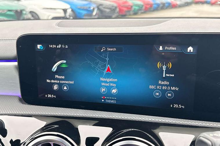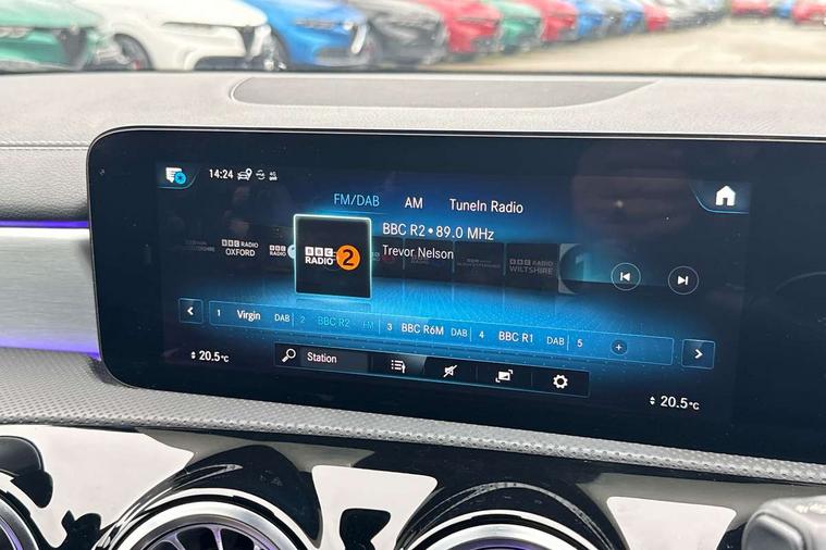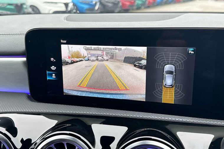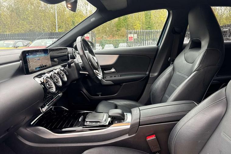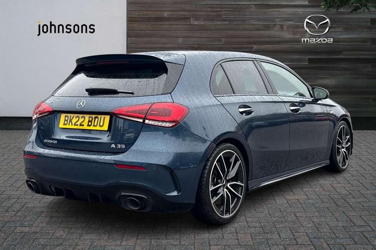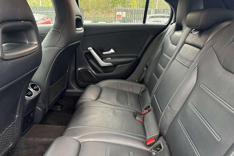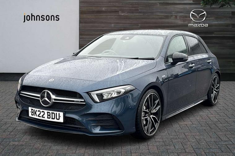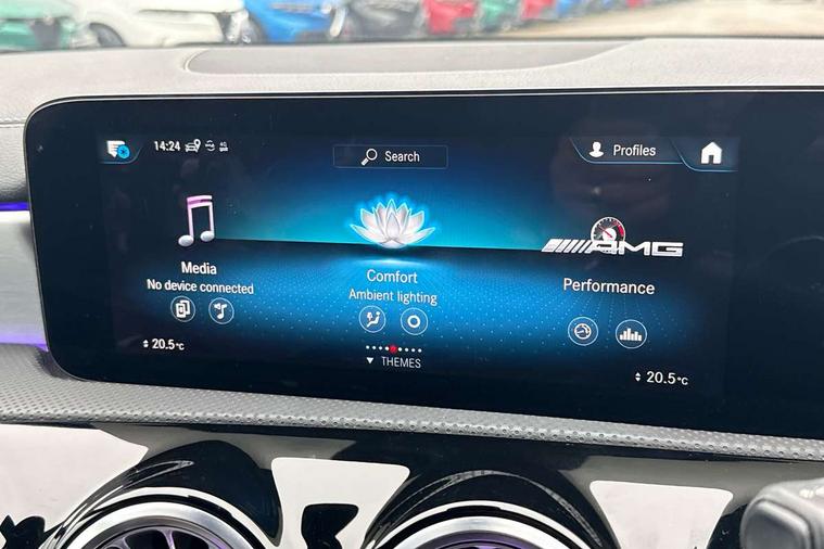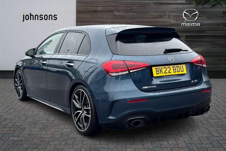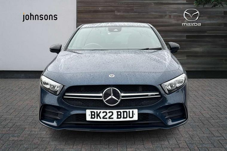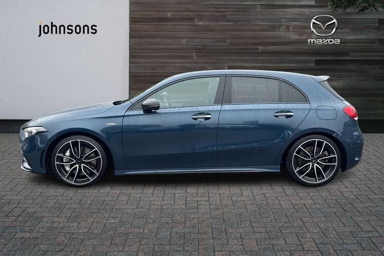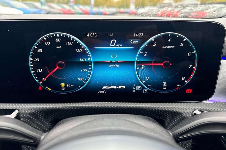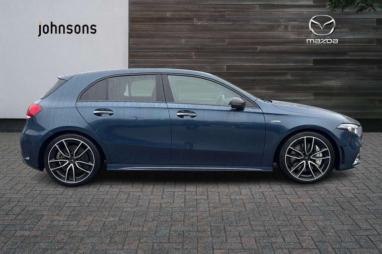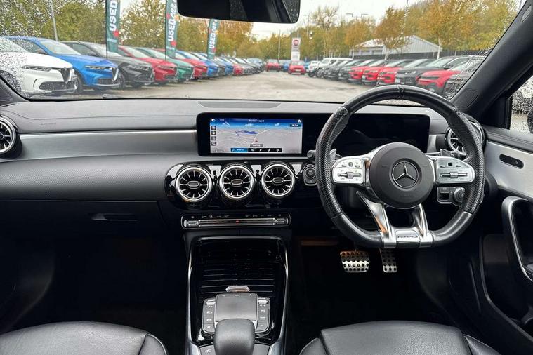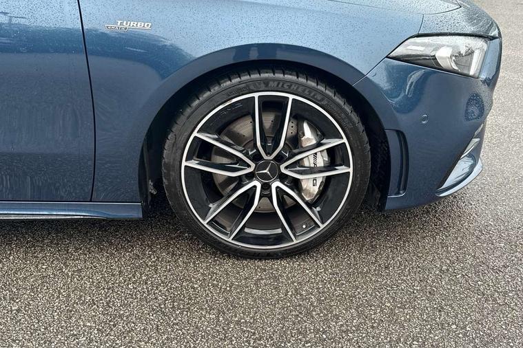 10.25" Digital instrument cluster display screen, 10.25" media display, 180 degree rear view camera with parking guidelines, Active parking assist with visual and audible warning of detected obstacles, Attention assist, Brake pad wear indicator warning light, Car wash mode, Cruise control + speed limiter, Direct steering, Dual bluetooth interfaces, DYNAMIC SELECT with driving programs (Slippery, Comfort, Sport, Sport+ and Individual), ECO start/stop function, Fluid level warning indicator for fuel, oil, coolant and washer fluid, Hard-disk navigation, Hey Mercedes Voice activation, Lamp failure indicator, Lane keeping system, Mercedes me connect including emergency call system, accident recovery, breakdown and maintenance management, Mercedes me remote services, Outside temperature gauge, Owners manual in English, Pre-installation for private car sharing, Preinstallation for Mercedes Benz link, Service indicator (ASSYST), Smartphone integration with Apple CarPlay and Android auto, Speed sensitive power steering, Trip computer, Ultrasonic sensors positioned in the front and rear bumpers, AMG performance suspension, Rear axle multi-link, 10 speakers, 2 USB ports (type C) in rear stowage compartment and one in front of center console, DAB Digital radio, MBUX multimedia system with DAB digital radio and touchpad including satellite navigation, Mercedes-Benz sound system - 100W, 4 Electric Front and Rear windows, Adaptive brake lights, AMG bodystyling - Front apron with splitter in chrome, rear apron with chrome trim and chrome visible trim elements in tailpipe, AMG Front apron with flics as air deflector elements on the outer air intakes, AMG radiator grille with twin blade lamella and AMG Lettering, AMG Rear apron with specific diffuser look with four vertical fins and two round chrome plated tailpipe trim elements with a diameter of 90 mm, AMG spoiler lip on roof, AMG Sports exhaust system with two round tailpipes measuring 90 mm in diameter attached in rear apron, AMG lettering plus ribbing on the inside of the, Automatic headlights, Black weather strip, Body colour bumpers, Body colour door handles, Body colour side skirt, Electric adjustable and heated door mirrors with integrated LED side indicators, Front wings wheel arches with TURBO 4MATIC lettering, Headlamp assist automatic headlamp activation, Heated glass rear windscreen + timer control, High gloss black beltline, LED High level third brake light, LED high performance headlamps with integrated LED daytime running lights, LED tail lamp, Privacy glass, Radio aerial, Rain sensing windscreen wipers with two sensitivity settings, Rear fog lights, Rear side wing doors, Rear wiper, Trim elements on louvres in outer air inlets in high gloss black, Wider wheel arches for AMG wheels, Window line trim strip in high gloss black, 3 seat bench in 2nd row, 40:20:40 split folding rear seats, AMG Performance steering wheel in nappa leather, Auto Mercedes-Benz child seat recognition sensor, Black air vents with surround in silver chrome, Black roof lining, Brushed stainless steel sports pedals with rubber studs, Controller on centre console with chrome surround, Floor mats with stitched edging and AMG lettering, Front centre armrest with storage compartment, Front seat backs luggage nets, Front seat cushion length adjustment, Heated front seats, Height/reach adjustable steering column, Illuminated AMG front door sills with changeable cover, Interior lighting - 64 colour Ambient lighting, Interior mirror with reading lamps in black and frameless, Manual height adjustable front seats, Rear armrest with 2 cupholders, Rear head restraints, Seat occupancy sensor for front passenger seat, Silver coloured aluminium gear shift paddles on steering wheel, Single front passenger seat, Sports seats with integrated headrests, Stowage compartment in centre console with retractable cover, Sunvisors with illuminated vanity mirrors, Touchpad on center console, Twin front cupholders, Two zone thermotronic luxury automatic climate control, AMG night pack - A Class, Light and sight pack - A Class, Mirror package - A Class, Seat comfort pack - A Class, 3 rear 3 point seatbelts, ABS with Brake Assist, Active bonnet, Active brake assist includes forward collision warning system with autonomous braking, Adaptive brake assist with hold function and hill start assist, Black seatbelts, Childproof locks manually operated for rear doors and electrically operated for rear power windows, Crash responsive emergency lighting, Driver and passenger head and side airbags, Drivers knee airbag, Dual stage driver/passenger airbags, Electronic parking brake, ESP curve dynamic assist, ESP with ASR, Front and rear seatbelt reminder, Front brake calipers with AMG lettering, ISOFIX and top tether child seat fixing points in two outer rear seats, Perforated front brake discs, Tyre pressure monitoring system, Warning triangle and first aid kit, Window airbags, Alarm system/interior protection/immobiliser, Keyless entry lock/unlock, Keyless Go, Remote central locking and crash sensor with emergency opening function, Urban guard vehicle protection system with immobiliser and interior protection, Light aluminium with longitudinal grain interior trim, 19" AMG 5 twin spoke light alloy wheels, Summer tyres, Tirefit sealant kit,
