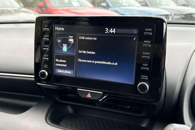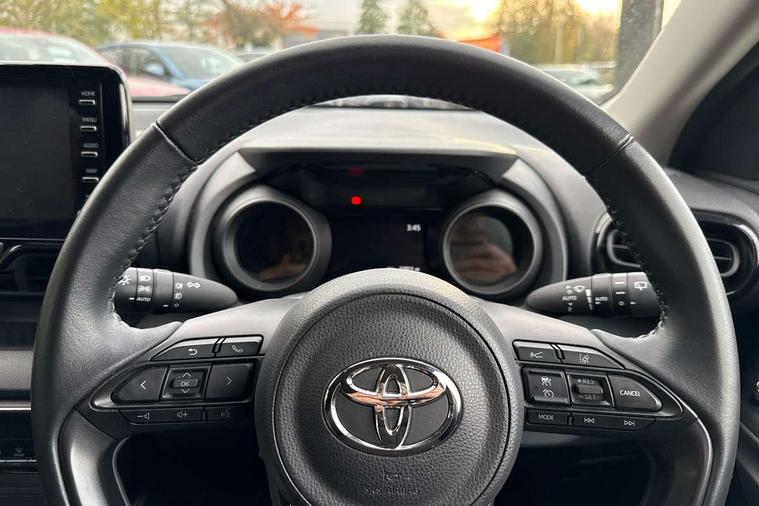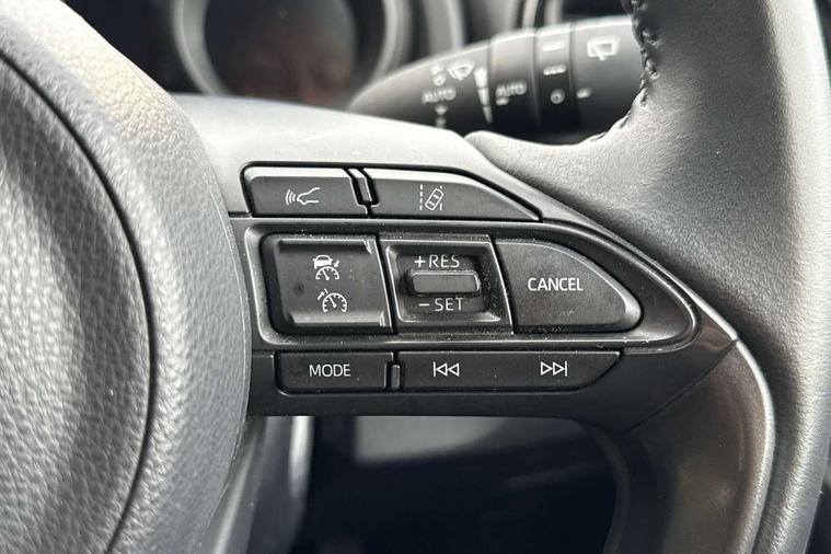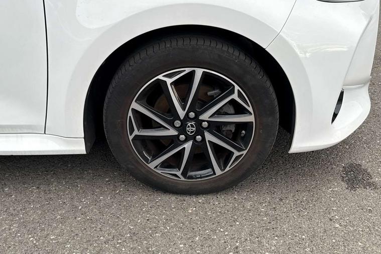 Adaptive cruise control, Adjustable speed limit with speed warning, Bluetooth connectivity, Colour binocular inspired displays with digital speedometer, E-call, Electric power steering, Hybrid energy display, Multi information display switches on steering wheel, Reversing camera, Smartphone integration with Apple CarPlay and Android auto, Tailgate, Voice recognition, Vehicle Stability Control (VSC), 4 speakers, 8" Multimedia display touch screen, USB connection, Acoustic windscreen glass, Auto windscreen wipers, Automatic headlights, Body coloured door mirrors, Electric adjustable heated door mirrors, Follow me home headlights, Front auto power windows with anti jam protection, Full LED rear lights, LED daytime running lights, LED front fog lights, LED front light guide, LED Headlights, LED High mounted stop lamp, LED Indicators, LED rear light guide, Manual headlight levelling, Painted chequered front grille, Rain sensor, Rear auto power windows with anti jam protection, Rear privacy glass, Rear side wing doors, Rear spoiler, Rear wiper, Shark fin antenna, Turning signal integrated indicators in door mirrors, Variable front intermittent wipers, 3 adjustable rear headrests, 3 spoke leather steering wheel, 60/40 split folding rear seat, Active headrests, Adjustable boot height, Auto air conditioning, Coat hooks in rear grab handles, Cup holders (2 front & door), Data Communication Module (DCM) connected services, Fabric upholstery, Front armrest, Glovebox, Grey roof lining, Height adjustable driver's seat, Isofix seat fixing, Leather gearshift, Pollen filter, Shopping bag hooks, Single front passenger seat, Tilt/telescopic steering column, 3 point seatbelts on all rear seats, ABS+EBD+Brake assist, Electronic parking brake, Emergency brake light system (EBS), Front passenger airbag on/off switch, Front seatbelt reminder, Hill start assist control (HAC), Rear child proof door locks, Rear seat belt reminder, Supplemental Restraint System (SRS) 8 airbags: Driver & passenger's airbags, dual side curtain airbags, side impact airbags, front centre airbag, Toyota Safety Sense 2, Precollison + Night time Pedestrian & Cyclist Detection, Lane Trace Assist, Auto High Beam, Intelligent ACC & Road Sign Assist, Tyre pressure warning system, 2x Master key, Alarm/immobiliser, Remote powered central double locking doors, Soft touch instrument panel, Space saver spare wheel,