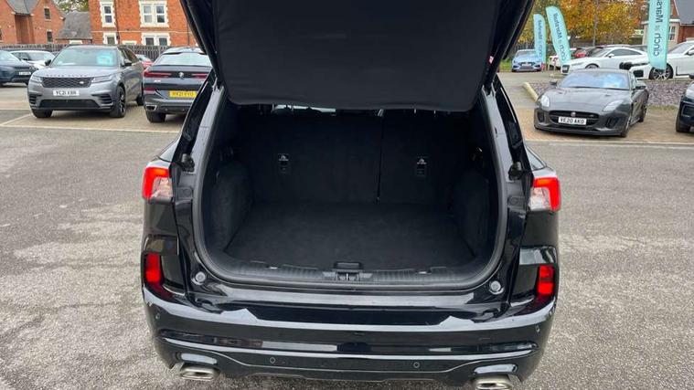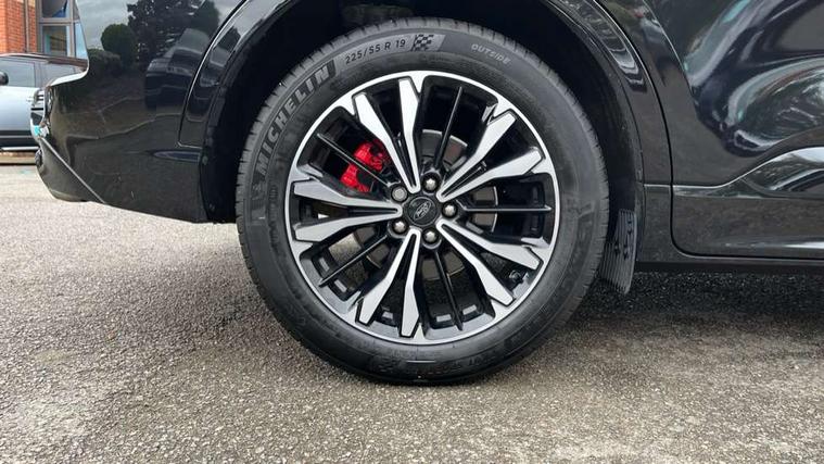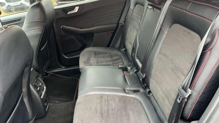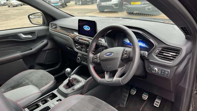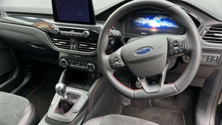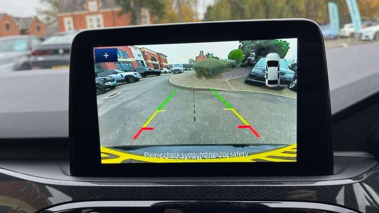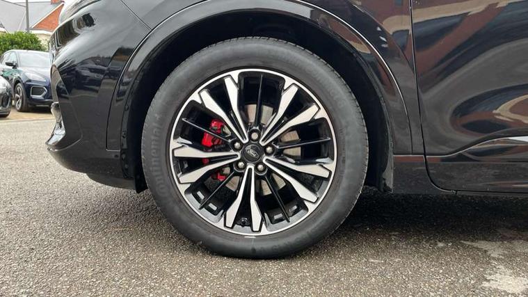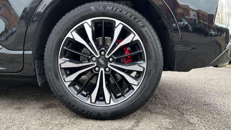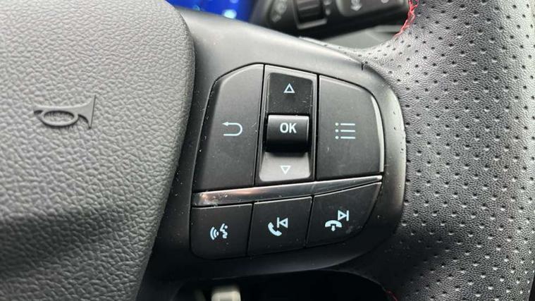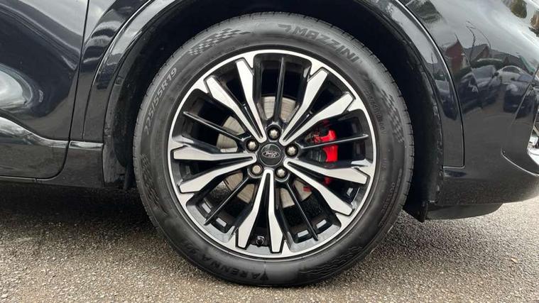 12.3" digital colour instrument cluster, Ford easy fuel, Ford SYNC 3 with 8" TFT LCD touchscreen, App Link, andriod auto/apple carPlay, emergency assistance and navigation with Ford pass connect, Front and rear parking sensors, Hands free power tailgate, Lane keeping aid with lane departure warning, Power assist steering, Rear view camera, Selectable drive modes, Service interval indicator, Sports suspension, Twist beam rear suspension, B&O premium audio system with 10 speakers and subwoofer, 2 USB ports, DAB radio/CD, Auto headlamps with high and low beam, Black roof rails, Day/night rear view mirror, Front LED fog lamps, Large rear spoiler, LED daytime running lights, LED rear lights, Power folding heated door mirrors with puddle lights, Power front/rear windows with global close, Power opening panoramic roof, Privacy glass, Quickclear heated windscreen, Rear side wing doors, Rear wiper, ST Line body styling kit with unique front and rear fascia and bumper, rear painted diffuser, front painted skid plates, dark mesh upper grille, ST Line front scuff plates, Third brake light, Twin exhausts, 10 way power adjustable drivers seat, 2nd row sliding seats with 60:40 split, 8 way manual passenger seat including lumbar support and height adjust, Alloy pedals, Centre console with electronic parking brake, Dark headlining and pillars, Dual electronic automatic temperature control, Flat bottomed leather steering wheel in sensico with red stitching, Front and rear head restraints, Heated passenger and driver seats, Heated rear seats, Heated steering wheel, Partial premium touch sensico leather upholstery with black cloth inserts and red stitching, Rear charging point, Single front passenger seat, Sports seats, ST Line front and rear floor mats, ST Line gear knob, 3x3 point rear seatbelts, Airbags - front driver/passenger, front and rear curtain, Drivers knee airbag, Electronic stability control (ESC) and ABS, Ford MyKey Gen 2 safety system, Manual child proof rear door locks, Post collision braking, Pre collision assist with autonomous emergency braking, Rear seat Occupancy alert, Red brake calipers, Tyre pressure monitoring system, Engine immobiliser, Keyless entry and Ford power start button, Locking wheel nuts, Remote powered central double locking doors, Thatcham category 1 alarm,