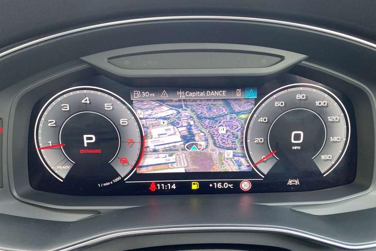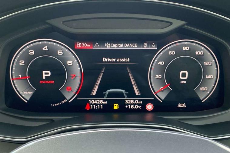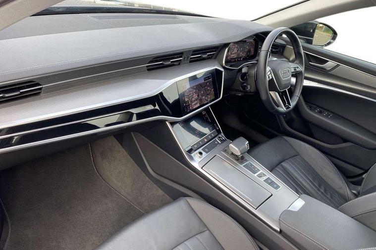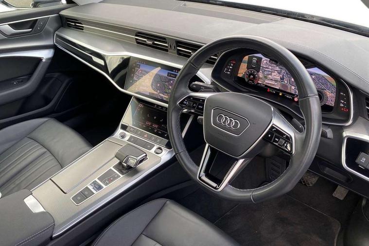 Audi connect safety and service (e-call), Audi connect with Amazon Alexa Integration, Audi drive select, Audi parking system plus - acoustic and visual park assist system for front and rear, Audi virtual cockpit, Automatic start/stop system with coasting functionality, Bluetooth interface, Camera based traffic sign recognition, Cruise control + speed limiter, Electric boot lid release, Lane departure warning system, MMI navigation plus with 10.1" and 8.6" touch screens, Progressive steering, Rear view camera, Service interval indicator, Smartphone interface includes wireless Apple carplay/Android Auto, Voice control system, Standard suspension, Audi front music interface, Audi sound system, Auxiliary input socket, DAB Digital radio, USB connection, Body coloured door mirrors, Daytime running lights, Electric front/rear windows, Electrically adjustable heated and folding + automatically dimming exterior mirrors with memory function, Frameless auto dimming interior rear view mirror, Front intermittent wipers, Heat insulating darkened glass in side and rear windows, Heat insulating glass in windshield, LED rear lights with dynamic indicators, LED third brake light, Matrix LED headlights, Matt black rear diffuser with diffuser strip and tailpipes in chrome, Matt black side air intake grille with inlay in matt aluminium, Privacy glass, Radiator grille in anthracite black matt, single frame in chrome and horizontal struts in matt aluminium silver, Rain and light sensors, Rear boot, Rear side wing doors, 2 zone deluxe electronic climate control, 3 spoke high multi-function leather steering wheel with shift paddles, 40/20/40 split folding 3 rear seat bench in 3 parts with rear centre armrest, Audi phone box light, Door sill trims with aluminium inlay, Electrically adjustable front seats including seat height, fore/aft position, backrest angle and 4-way lumbar with memory for driver's seat, Front and rear floor mats, Front centre armrest, Front head restraints, Heated front seats, Height/reach adjust steering wheel, Illuminated sun visors with vanity mirrors, Leather gear knob, Lunar silver cloth headlining, Rear headrests, Single front passenger seat, Tool kit and car jack, Twin leather upholstery, LED Interior Ambient Lighting Pack - A6, Non smoking pack - A6, 3 point seatbelts on all seats, Airbags - Front side, front and rear including head, Audi pre-sense front, EBD - Electronic brakeforce distribution, Electromechanical parking brake, Electronic Stability Control (ESC) including ABS, ASR and EDL, Extended pedestrian protection measures, ISOFIX child seat mounting for front passenger seat and ISOFIX child seat mounting with Top Tether for outer rear seats, Manual child proof rear door locks, Seatbelt monitoring, Tyre pressure warning light, Warning triangle and first aid kit, Anti theft alarm with tow away protection, Anti-theft wheel bolts and wheel loosening detection, Immobiliser, Keyless Go, Remote central locking, Aluminium fragment inlay, 18" 5 arm design cast aluminium alloy wheels,