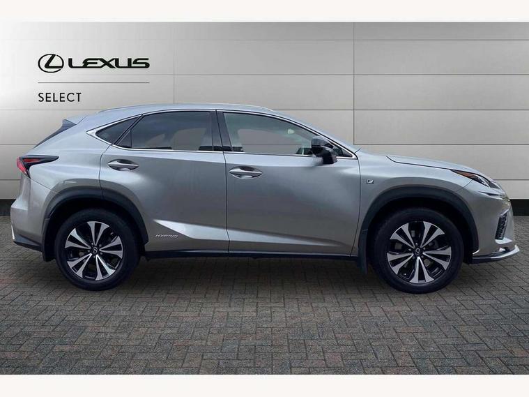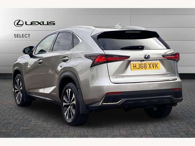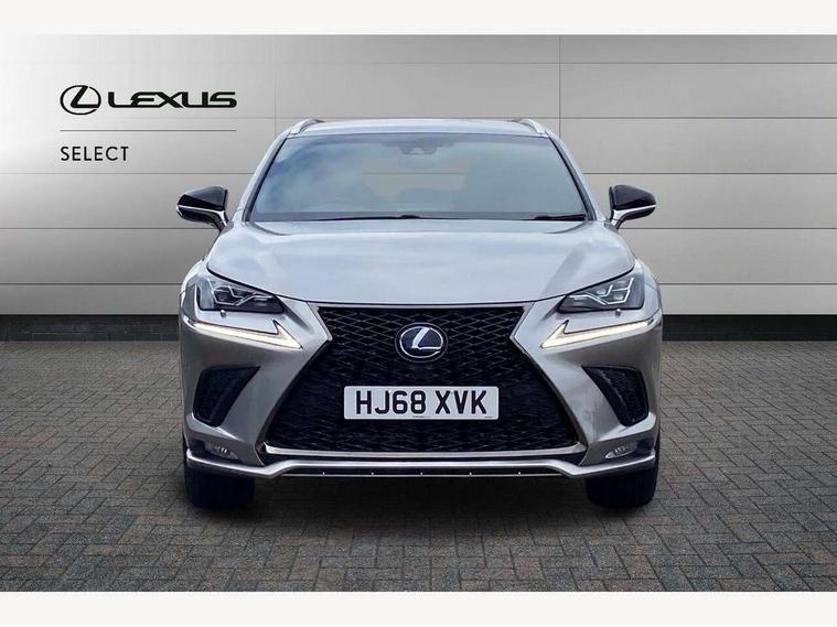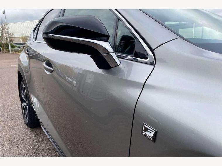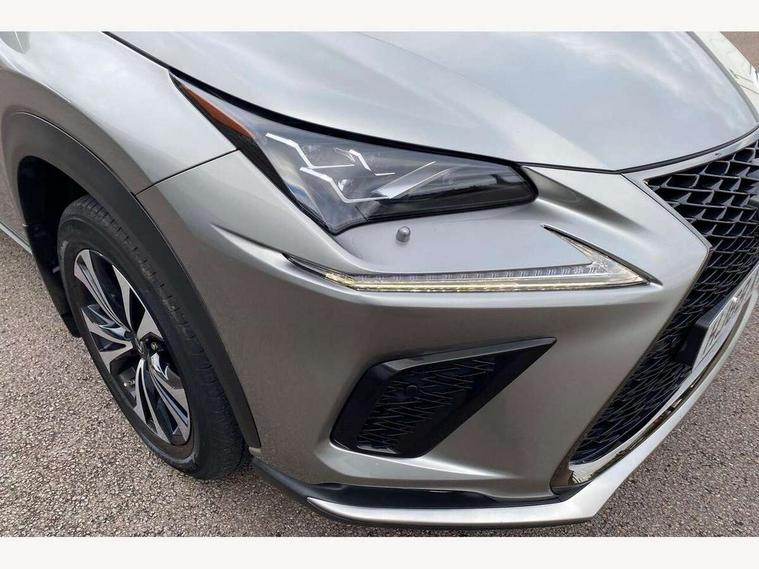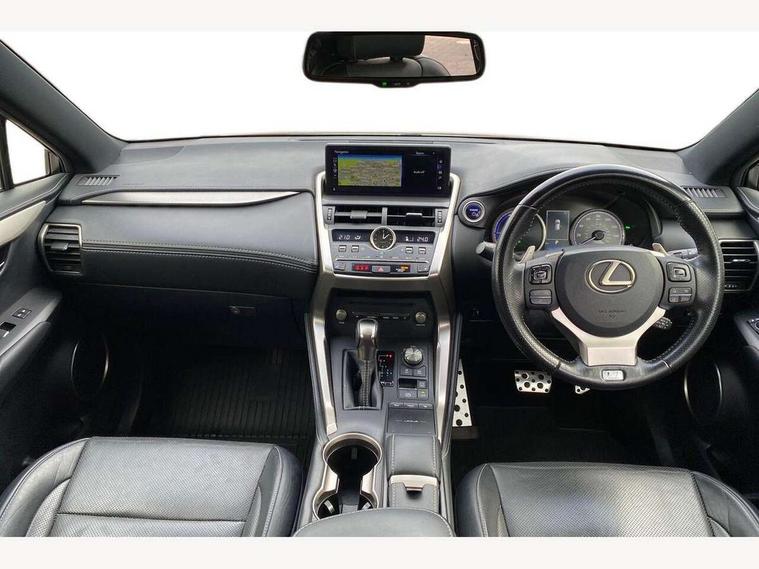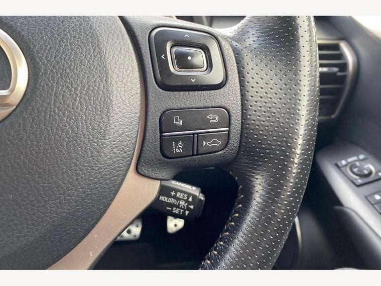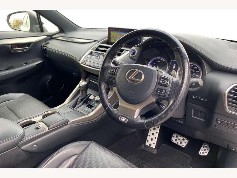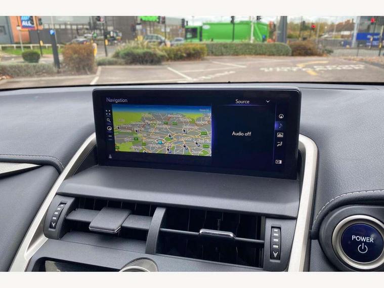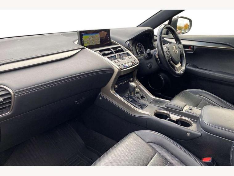 8" colour display screen, Adaptive cruise control + pre-crash system, Analogue clock, Bluetooth telephone connectivity, Drive mode selector, Electric speed sensitive power steering, Front and rear parking sensors, LKA - Lane keep assist, Multimedia display, Premium navigation system, Push button starter, Remote touch interface, Reversing camera, Service interval indicator, Traffic sign recognition, Trip computer, Performance dampers, Sports suspension, VDIM, Vehicle Stability Control (VSC), 10 speakers, Aux input, DAB Digital radio, DVD System, Steering wheel mounted audio controls, USB connection, Adaptive high beam assist, Black front grille, Black mirror caps, Body colour bumpers, Chrome grille surround, Door mirror memory, Electric windows-anti jam+driver side one touch, Electric/heated/folding door mirrors, Electrochromatic rear view mirror, Headlight washers, Illuminated door handles, LED daytime running lights, LED front fog lights with static cornering light function, LED Headlights, LED rear lights, Privacy glass, Puddle lights in exterior door handles, Rain sensor windscreen wipers, Rear wiper, Roof rails, Roof spoiler, Shark fin roof aerial, 12V socket in centre console and luggage area, 2 cupholders in front centre console, 3 spoke leather steering wheel, 60/40 split folding rear seat, 8 way electric adjust front seats, Active sound control, Adjustable height seatbelt anchor, Adjustable rear seat backrest, Aluminium pedals, Aluminium scuff plates, Centre armrest with storage box, Driver's electric adjustable lumbar support, Dual climate control air conditioning system, Electric adjustable steering column, Front and rear textile carpet mats, Front seat back map pockets, Gearshift paddles, Heated front seats, Isofix child seat attachment, Leather gear lever, Leather upholstery, LED interior illumination, Rear air vents, Rear centre armrest with 2 cupholders, Rear headrests, Shopping hook in boot, Sliding sunvisors with illuminated vanity mirrors, Tie down hooks in luggage area, Convenience pack - NX, 3x3 point rear seatbelts, ABS, Active front headrests, Curtain airbags, Driver/Front Passenger airbags, Driver/front passenger side airbags, Drivers knee airbag, EBD + Brake Assist, Electronic parking brake, Front/rear seatbelt pre-tensioners, Hill start assist, Passenger airbag cut-off device, Traction control, Tyre pressure warning, Immobiliser, Intrusion sensor and alarm, Locking wheel nuts, Remote central double locking, Smart keyless entry, Speed sensitive power door locks, Carbon interior trim, Space saver spare wheel,