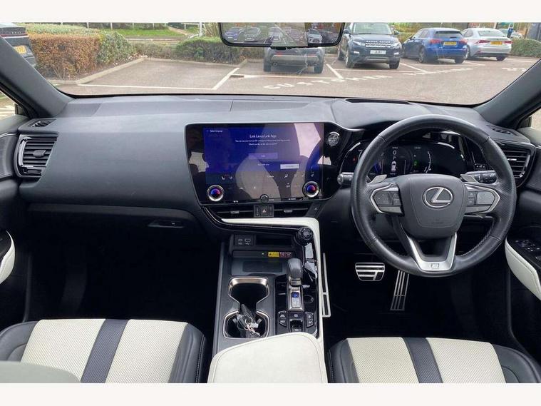 360 degree panoramic view monitor, 5 Driving modes EV/Normal/Eco/Sport/Sport S+, 7" display in instrument binnacle, Blind spot monitoring with rear cross traffic alert, Bluetooth telephone connectivity, eCall emergency system, Electric speed sensitive power steering, Head up Display, Intelligent parking sensors - 4 front and 4 rear, Lane change flasher function, Lexus link connect - Cloud based navigation, cloud based voice assistant, always online, 14" HD touchscreen, embedded nav and faster CPU, Push button starter, Reversing camera with back guidelines, Service interval indicator, Tazuna cockpit with 7" improved meters display, 10" HUD and capacitive touch steering wheel switches, Wireless Apple CarPlay and wired Android Auto, Wireless Smartphone charger, 6.6 kW onboard charger, All Wheel Drive (AWD), AVS - Adaptive variable suspension, Hybrid automatic transmission, Sports suspension with lateral performance dampers, Vehicle Dynamics Integrated Management (VDIM), Vehicle Stability Control (VSC), 10 speakers, 4 USB ports - 2 front, one USB C, 2 rear USB C, DAB Digital radio, 4 eye LED headlight with adaptive high beam, Auto dimming interior rear view mirror, Automatic headlights, Black roof rails, Double hidden exhaust pipes, F SPORT exterior styling - Black mesh front grille, enhanced side rockers, metallic front bumper, badging, black outside mirror covers, Front and rear one touch power windows, with anti-jam protection, Headlight cleaners, Heated, auto-folding, auto-dimming outside mirrors with reverse tilt function and turn indicators, Illuminated door handles with puddle light, LED brake lights and rear lights with emergency brake signal, LED cornering lights, LED daytime running lights, LED front fog lights, LED Indicators, Power back door with kick sensor, Privacy glass, rear doors and tailgate, Rain sensor windscreen wipers, Rear side wing doors, Rear wiper, 12V accessory port centre console and luggage compartment, 2 cupholders in front centre console, 2 way electrical lumbar adjustment for driver, 2 x fixed shopping bag hooks in boot, 2 x sun visors with vanity mirror and lamp, 3 seat bench in 2nd row, 4 x tie down hooks in the boot, 60/40 split folding rear seat, 8 way driver/passenger electrically adjustable front seats, Adjustable rear seat backrest, Card holder installed in driver and passengers sun visors, Centre armrest with storage box, Driver seat memory function, Dual zone climate control air conditioning system with humidity sensor, F Sport aluminium sports pedals, F SPORT leather gearlever, F SPORT seats - Leather upholstery, Front and rear head restraints, Front and rear textile carpet mats, Front passenger seat, Heated and ventilated front seats, Heated rear seats, Heated steering wheel, LED ambient lighting, LED interior illumination, Power adjustable F SPORT leather steering wheel with paddle shifts, Rear centre armrest with 2 cupholders, Whiplash Injury Lessening (WIL) feature (active headrest) for seats, 2 x Isofix child rear seat restraints, 3 point ELR front seatbelts with pretensioners, 3x3 point rear seat belts, ABS, Adjustable seat belt anchor points, Driver and front passenger 2 stage airbag, Driver/front passenger side airbags, Drivers knee airbag, E-Latch with safe exit assist, EBD + Brake Assist, ECB (Electronically Controlled Brake System), Electronic parking brake, Front and rear curtain shield airbags, Front center airbag, Front passenger seat cushion airbag, Hill assist control, Lexus safety system - dynamic radar cruise control, pre collision system day and night, lane tracing assist, road sign, OTA, Manual rear child locks, Passenger airbag cut-off device, Traction control, Tyre pressure warning, 2 x remote key fobs, Anti-theft system with alarm, intrusion sensor, glass breakage sensor, tilt sensor and engine immobiliser, Locking wheel nuts, Smart keyless entry, Speed sensitive auto door locking, Two motion door lock with double lock, VIN Window etching, Aluminium inlays,