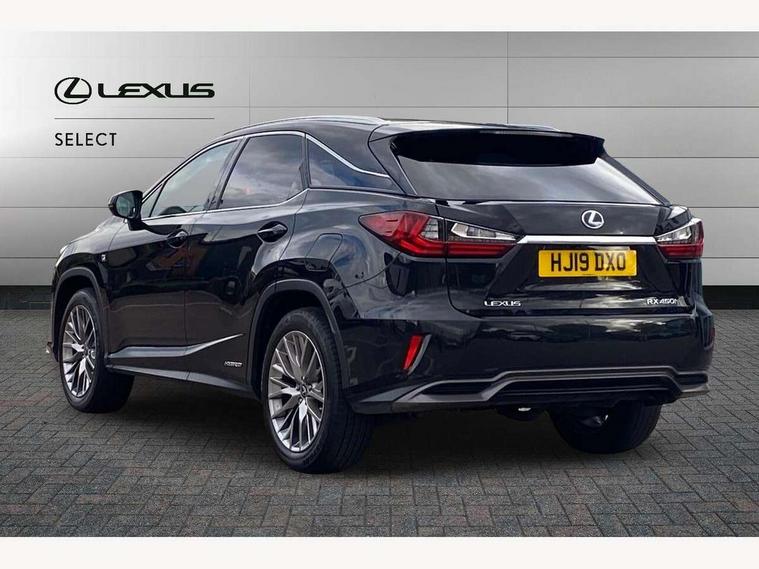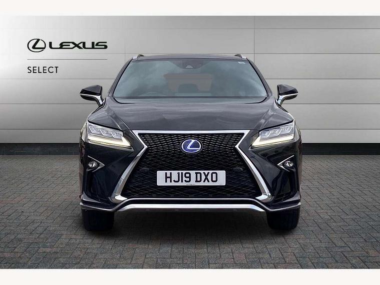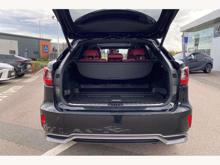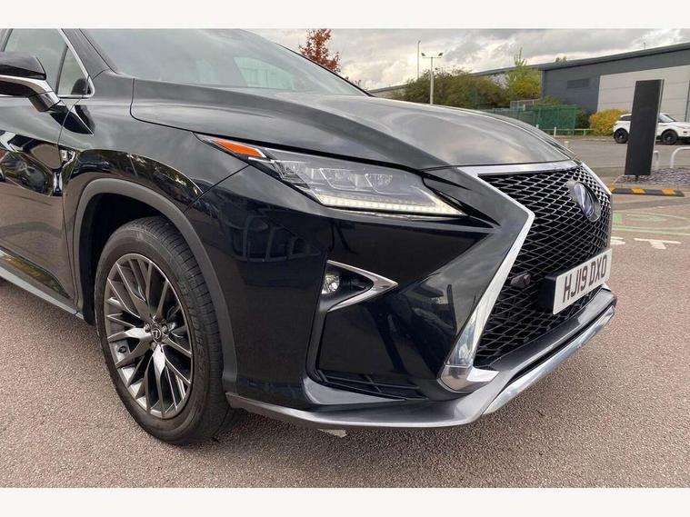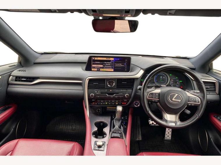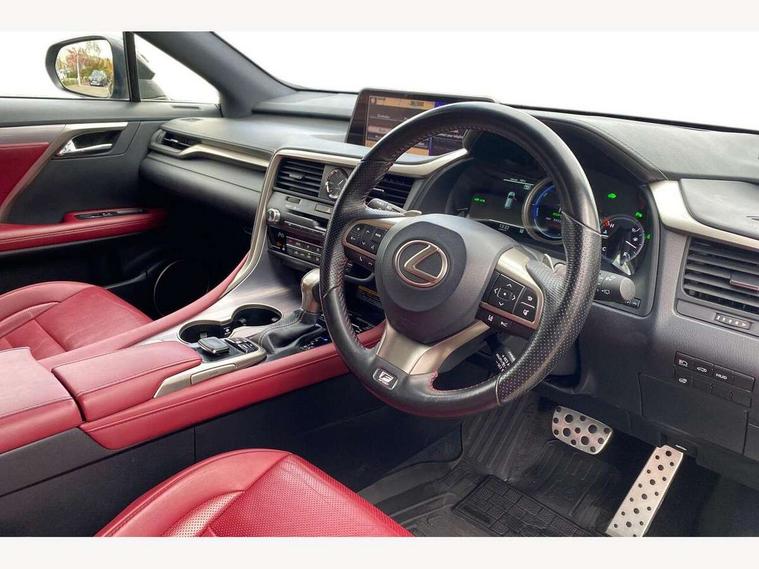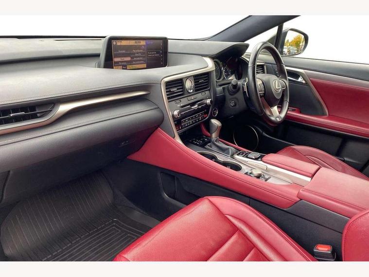Adaptive cruise control + pre-crash system, Analogue clock, Analogue clock with GPS function, Bluetooth system, Drive mode selector, Driver alert system, EPAS, Hands free power tailgate, Intelligent parking assist, Lane keep assist, Multi-information display, Premium navigation system, Push button starter, Remote touch interface, Reversing camera, Service interval indicator, Sports steering system, Traffic sign recognition, Trip computer, Wireless Smartphone charger, Adaptive variable suspension, VDIM, Vehicle Stability Control (VSC), 12 speakers, 12.3" colour touch-screen display, Auxiliary input socket, DAB Digital radio, DVD System, Steering wheel mounted audio/telephone controls, USB connection, 3 eye LED headlamps, Adaptive front lighting system, Auto dimming interior mirror + dimming door mirrors, Auto high beam assist, Black mirror caps, Body colour bumpers, Door mirror memory, Electric folding door mirrors, Electrochromatic rear view mirror, F SPORT exterior styling, Front and rear electric windows, Front windscreen de-icer, Headlight washers, Heated door mirrors, Laminated front side windows, LED brake lights and rear lights with emergency brake signal, LED cornering headlights, LED daytime running lights, LED front and rear sequential indicators, LED front fog lights, LED rear lights, Power back door system, Privacy glass (rear side windows and rear screen), Puddle lights, Rain sensor windscreen wipers, Rear wiper, Roof rails, Roof spoiler, UV reducing glass, 2 bag hooks in luggage compartment, 2 way electric lumbar support, 3 rear headrests, 3 x 12V power sockets, 4 load securing hooks in luggage area, 60/40 split sliding rear seats, 8 way electric adjust front seats, Active sound control, Aluminium scuff plates, Aluminium sports pedals, Auto air recirculation, Card holder installed in driver and passengers sun visors, Carpet mats, Centre armrest with storage box, Clean air filter, Driver seat memory function, Driver/passenger temperature controls, Dual zone climate control air conditioning system with auto recirculation, pollen removal mode, nano technology and climate concierge, Electric adjustable steering column, F Sport interior styling, Front centre armrest with 2 cupholders, Front head restraints, Front seat back map pockets, Heated and ventilated front seats, Heated leather steering wheel, Illuminated entry system, Isofix standard child seat restraint mounting, Leather gear knob, Leather gear lever, Leather steering wheel, LED interior illumination, Lexus safety system +, Memory for steering column, Multi function steering wheel, Paddle shift controls, Perforated leather upholstery, Rear armrest with storage + cupholders, Rear door map pockets, Rear side window blinds, Side sunshades, Sliding/reclining rear seats, Sunglasses holder, Sunvisors with illuminated vanity mirrors, ABS, Curtain airbags, Driver/Front Passenger airbags, Driver/front passenger side airbags, Drivers knee airbag, EBD + Brake Assist, Electronic parking brake, Electronically controlled braking, Front passenger seat cushion airbag, Front/rear seatbelt pre-tensioners, Hill start assist, Passenger airbag cut-off device, Rear passenger side airbags, Sway warning system, Three 3 point rear seatbelts, Traction control, Tyre pressure warning, WIL whiplash protection front seats, Anti theft alarm, Deadlocks, Immobiliser, Locking wheel nuts, Remote central double locking, Security window etching, Smart keyless entry, Aluminium inlays, 20" Sport alloy wheels, Space saver spare wheel,