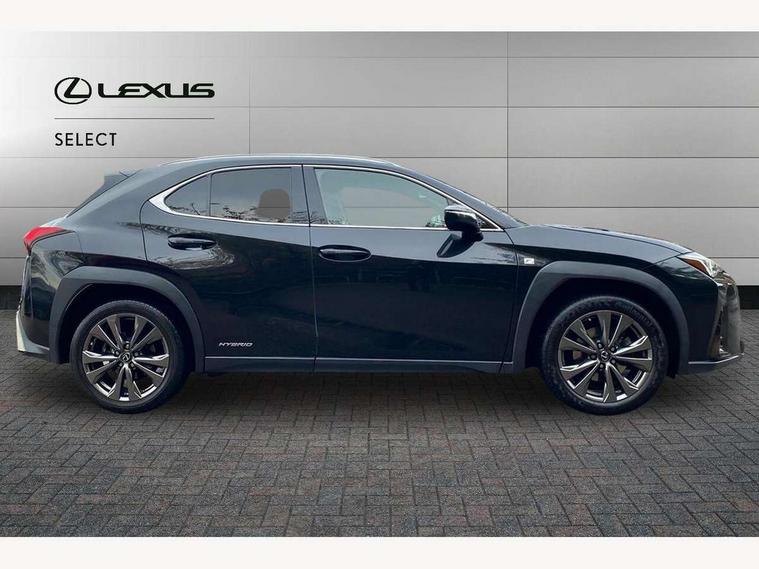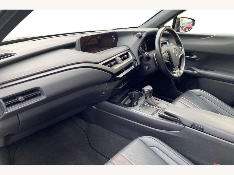 4 driving modes EV/Eco/Normal/Sport, 7" Lexus media display, 8" LFA inspired TFT meters with movable meter ring, Analogue clock with GPS function, Apple car play/Android Auto, Compatible mobile phone bluetooth with audio streaming, E-call, Electric power steering (EPS) with speed sensitive features, Lane change flasher function, Lexus link connected services, Lexus navigation system, Lexus safety systems + includes dynamic radar cruise control, pre collision system day and night, lane tracing assist, road sign assist, Parking assist sensors, 4 front and 4 rear, Push button start, Remote touch interface, Reversing camera with back guide lines, Trip computer, F Sport suspension tuning and rear performance dampers, Vehicle Dynamics Integrated Management (VDIM), Vehicle Stability Control (VSC), 2 front USB and 2 rear USB charging points, 6 speakers, AM/FM and DAB radio, AUX socket with VTR compatibility, CD player, Acoustic windscreen, Aero stabilising arch mouldings, Aero stabilising rear lights, Aero ventilated wheels, Aluminium roof rails, Auto dimming interior rear view mirror, Bi-LED (low and high beam) headlights with Auto High Beam (AHB), Black roof drip mouldings, Body adhesive, laser screw welding and laser brazed roof structure, Body coloured bumpers, Electric adjustable/heated door mirrors, F SPORT exterior styling consists of black Mesh front grille, enhanced side rockers, metallic coated front bumper and F SPORT badging, Front and rear one touch power windows, with anti-jam protection, Headlight cleaners, LED cornering headlights, LED daytime running lights, LED front and rear fog lights, LED tail lights, LED third brake light, Privacy glass, rear doors and tailgate, Rain sensor windscreen wipers, Rear wiper, Shark fin roof aerial, Single hidden exhaust pipe, Towing preparation, Variable front intermittent wipers, 12V accessory port centre console and luggage compartment, 2 cup holders in the front and rear centre console, 2 way electrical lumbar adjustment for driver, 2 x folding shopping bag hooks in boot, 2 x sun visors with vanity mirror and lamp, 4 x tie down hooks in the boot, 5 headrests, 60/40 split folding rear seat, 8 way driver/passenger electrically adjustable front seats, Active sound control, Card holder installed in driver and passengers sun visors, Centre armrest with storage, Driver and passenger door pocket, Dual zone electronic climate control + Nano-E humidity sensor, F SPORT Aluminium front scuff plates, F Sport aluminium sports pedals, F SPORT dimpled leather gear lever, F SPORT front seat headrest adjustable forwards and backwards, F Sport interior styling, F Sport leather steering wheel with paddle shifts, Fabric/Tahara leather upholstery, Glovebox, Heated front seats, Heated steering wheel, LED interior illumination, Map pockets in the rear of passenger's front seat, Rear air vents with 2 USB chargers, Rear armrest with 2 cupholders, Storage tray under audio panel, Textile carpet mats, Tilt/reach adjustable steering column, Under deck storage, Under desk side storage, 2 x Isofix child rear seat restraints, 3x3 point rear seatbelts, Anti-lock braking system (ABS), BAS (Brake Assist System), Driver and front passenger 2 stage airbag, Driver and front passenger knee airbag, Driver/front passenger side airbags, EBD - Electronic brakeforce distribution, ECB (Electronically Controlled Brake System), Electric parking brake, Front adjustable seatbelt anchor points, Front and rear curtain shield airbags, Front outer seatbelt+pre-tensioners, force limiter+tension reduction: 3-point with active safety link to PCS, Hill start assist control (HAC), Passenger airbag cut-off device, Rear outer seatbelt+pre-tensioners, force limiter+tension reduction: 3-point with active safety link to PCS, Centre belt w/o pre tensioner+force limiter, Secondary Collision Brake (SCB), TRC (Traction Control), Tyre pressure warning, 2 x remote key fobs, Anti theft system : Alarm instruction sensor, glass breakage sensor and engine immobiliser, Locking wheel nuts, Remote central door locking, Speed sensitive auto door locking, Two motion door lock with double lock, VIN Window etching, 18" F Sport alloy wheels with run flat tyres,