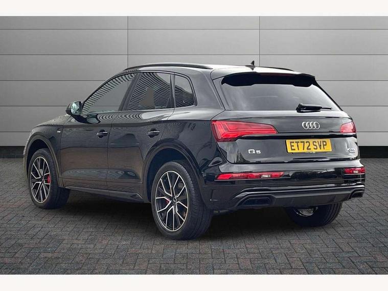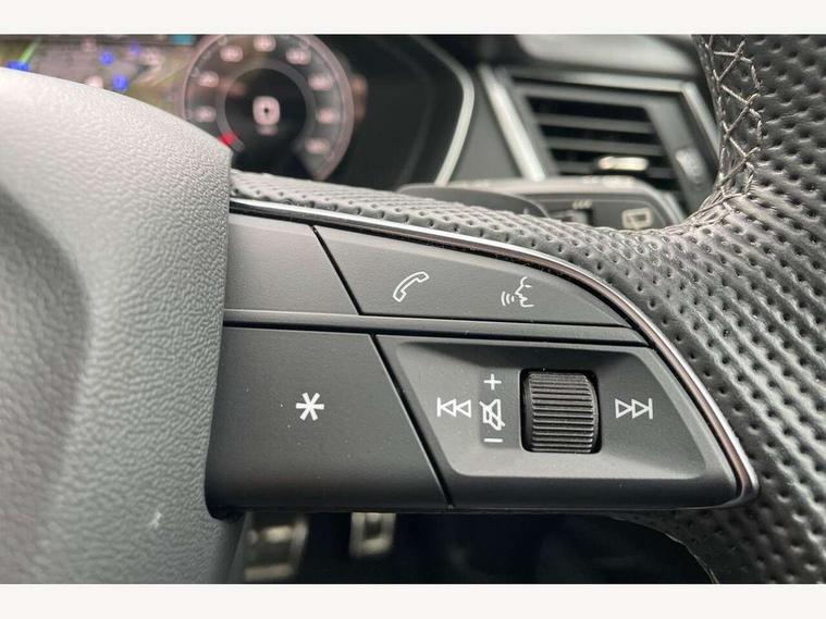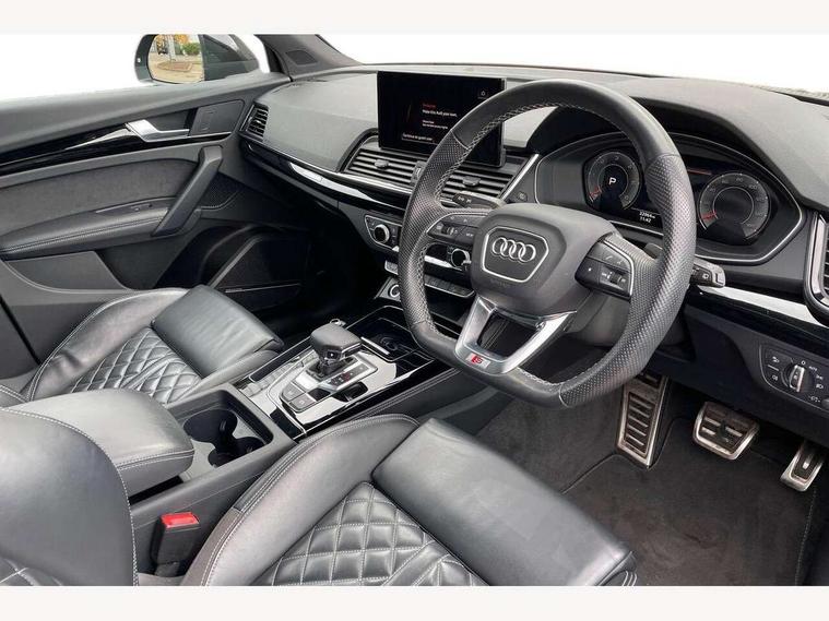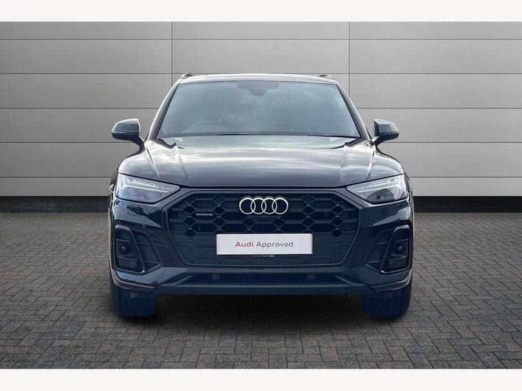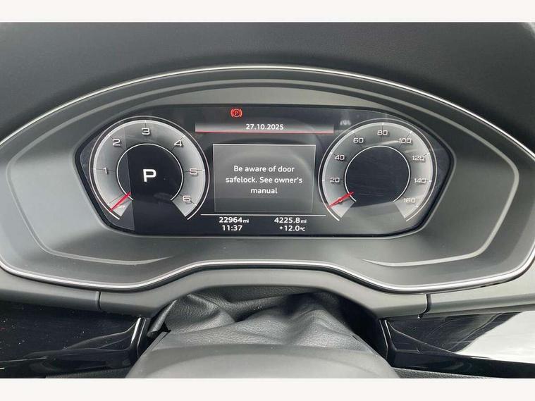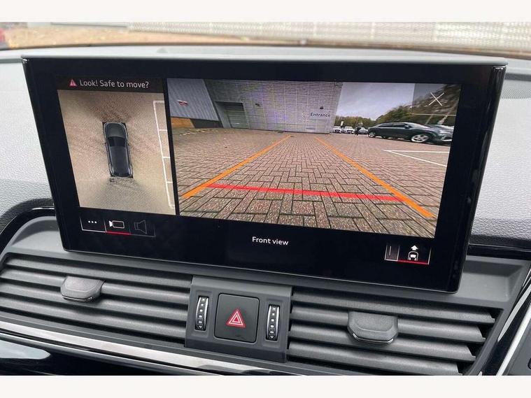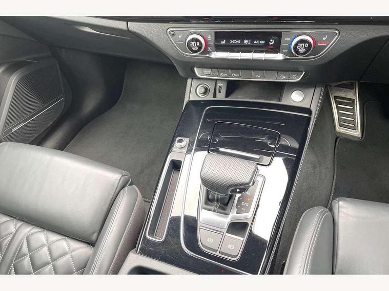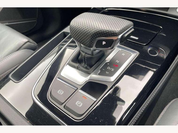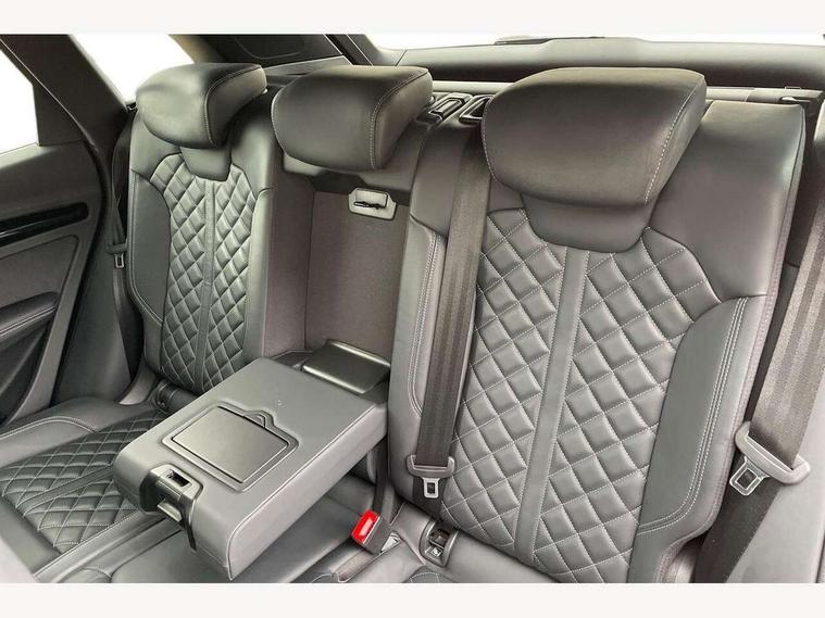 Audi connect safety and service (e-call), Audi connect with Amazon Alexa Integration, Audi drive select, Audi virtual cockpit plus with 12.3" screen and three different layout designs, Audi wireless smartphone interface, Automatic start-stop system with coasting functionality and efficiency programme, Bluetooth interface, Electro - mechanical power assisted steering, MMI navigation plus with 10.1" touch screen, Power tailgate, Reversing camera, Service interval indicator, Voice control system with Audi hotword activation "Hey Audi", Diesel particulate filter, Quattro on demand, S line sports suspension, 2 x USB charging port with aux input socket, DAB Digital radio, Acoustic windscreen, Audi matrix LED headlights with dynamic front and rear indicators, Audi rings at front and rear in black, Audi rings decal on rear doors, Auto dimming door mirrors, Auto dimming rear view mirror, Automatic headlight adjustment, Automatic headlights and windscreen wipers, Black roof rails, Body colour bumpers, Body colour underbody protection, Chrome plated exhaust trims, Daytime running lights, Door sills in Selenite silver, Electric adjustable/heated/folding door mirrors, Front air inlet surrounds in titanium black, Front and rear electric windows, Headlight washers, High gloss black B pillar trims and triangular rear door trim, High level LED brake light, Rear chrome trim strip below lights, Rear privacy glass and rear side windows, Rear side wing doors, Rear wiper, Roof bars, S Line rear spoiler, 3 rear headrests, 4 way electric lumbar support for driver and front passenger, 40:20:40 split folding 3 rear bench seat in 2nd row with rear centre armrest, Black cloth headlining, Comfort front centre armrest, Contrast stitching on seats, steering wheel and gear lever gaiter, Deluxe 3 zone electronic climate control, Electrically adjustable front seats, Fine Nappa leather upholstery with diamond pattern contrast stitching + front sport seats with S embossed logo, Front/rear floor mats, Gear lever in black leather, Heated front seats, Height adjustable front head restraints, Height/reach adjustable steering column, Illuminated door sill trims with S logo, ISOFIX child seat mounting and top tether, Luggage compartment cover, Rear seat bench plus, Removable luggage compartment floor, Single front passenger seat, Stainless steel pedals, Sunvisors with vanity mirrors, Black styling package - Q5 Edition 1, Extended interior upholstery pack - Q5, Extended LED Interior multi coloured Lighting Pack - Q5, 3 point seatbelts on all seats, 6 airbags - Driver, front passenger, curtain and side airbags, Electrically operated child locks on rear doors, Electromechanical parking brake, Electronic stabilisation control including ABS, ASR and EDL, Front and rear brake calipers painted in red, Front passenger airbag deactivation, Hill descent control, Hill hold assist, Multi collision brake assist, Pop-up bonnet for pedestrian protection, Pre sense city, Seat belt force limiter, Seatbelt monitoring, Tyre pressure warning, Warning triangle and first aid kit, Anti theft alarm, Anti-theft wheel bolts, Keyless Go access/ignition system, Remote central locking, Piano black finish inlay,