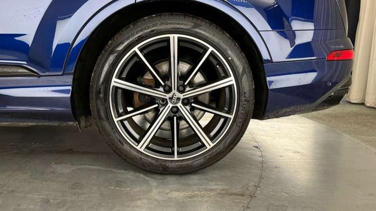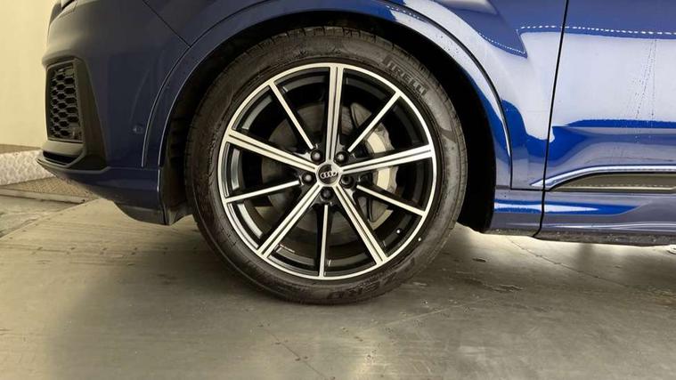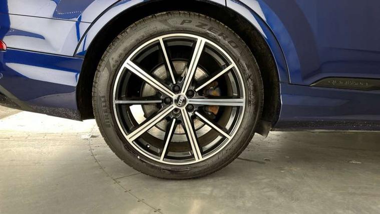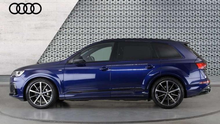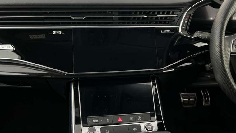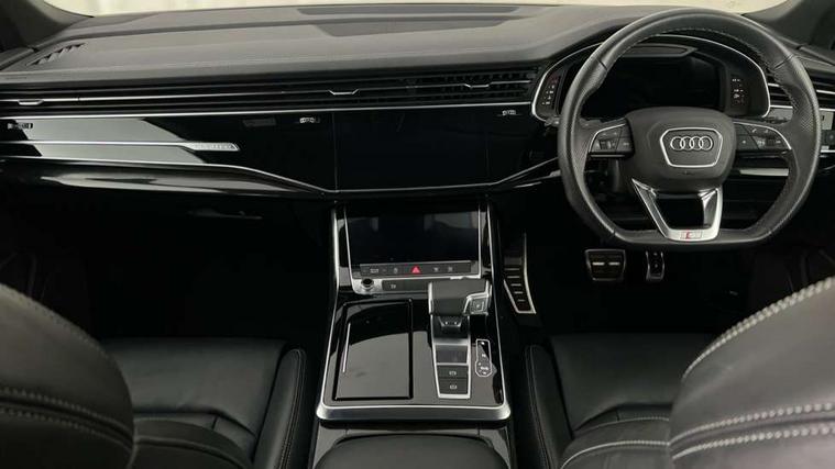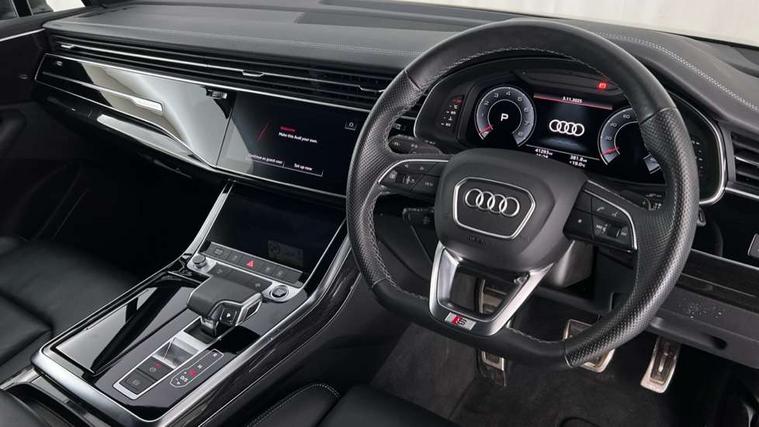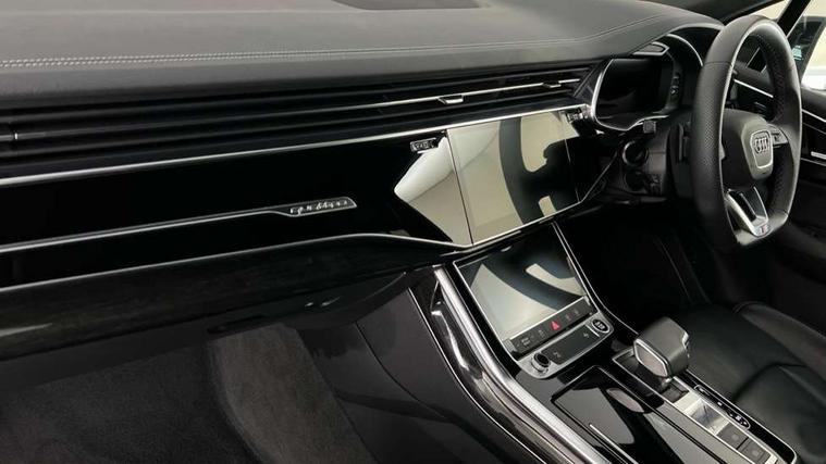 Audi connect safety and service (e-call), Audi connect with Amazon Alexa Integration, Audi drive select (Auto, Comfort, Dynamic, Efficiency, Individual, Off-road and All road), Audi smartphone interface includes wireless Apple carplay/Android Auto, Audi virtual cockpit - 12.3" high-resolution LCD display with fully customisable instrument cluster, Bluetooth interface, Camera based traffic sign recognition, Electromechanical steering, MMI navigation plus with MMI touch screens includes 10.1" and 8.6" screens with haptic feedback, Natural voice recognition, Parking system plus with 360 degree display (front, rear and side sensors) - acoustic and visual park assist system, Power operated tailgate, Rear view camera, Start/stop system, 48V Mild hybrid technology, 85 litre fuel tank, Adaptive air sports suspension, Quattro all wheel drive with self locking centre differential, Audi music interface - front 2 USB-C ports with charger and data functions, Audi sound system with 6 channel amplifier, 180 watt amplifying capacity and 10 loudspeakers including subwoofer, DAB digital radio module, 3rd brake light, Auto dimming frameless rear view mirror, Black roof rails, Bumpers in contrast paint scandium grey finish includes door trim and wheel arch trim strips, inlays in door strip contain quattro embossing, Dark tinted Matrix LED headlights with dynamic front and rear indicators, Electrically adj heated/folding + automatically dimming exterior mirrors with memory + automatic kerb side function for passenger side exterior mirror, Heat insulating glass in windshield, Integrated LED indications in door mirrors, LED daytime running lights, LED rear tail lights, Privacy glass - dark tinted rear and rear side windows from B-pillar backwards, Rear side wing doors, Rear wiper, 2 seat bench in 3rd row, 3 seat bench in 2nd row, 4 zone deluxe automatic climate control, 7 seat layout with ISOFIX points for the front passenger seat and rear passenger seat, Black cloth headlining, Comfort front centre armrest, Electric adjustable front seat with 4 way lumbar support, driver memory functionality, Folding rear seats, Front head restraints, Front/rear floor mats, Heated front seats, Illuminated door sill trims with S logo, LED interior ambient lighting, Luggage compartment cover, Luggage compartment sill protection in stainless steel, Rear head restraints, Single front passenger seat, Stainless steel pedals, Sunvisors with illuminated vanity mirrors, Anthracite black styling pack - Q7/SQ7, 3 point seatbelts on all rear seats, Audi pre sense front, Child locks on rear doors, Driver and front passenger, front side and curtain airbags, Electromechanical parking brake, Electronic Stabilisation Control (ESC) including ABS, ASR and EDL, Extended pedestrian protection measures, Hill hold assist, Seatbelt monitoring, Tyre pressure loss indicator, Warning triangle and first aid kit, Anti theft alarm, Anti-theft wheel bolts and wheel loosening detection, Keyless Go, Remote central locking, Polished oak trim with grey finish inlay, Tool kit, Tyre repair kit,