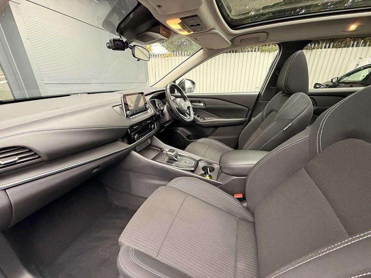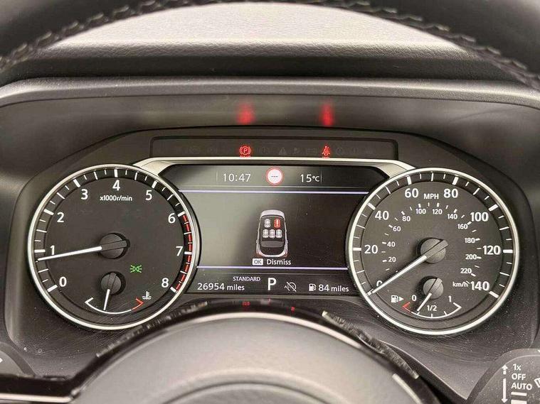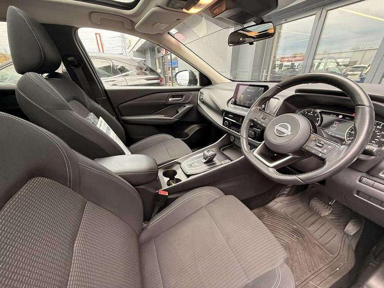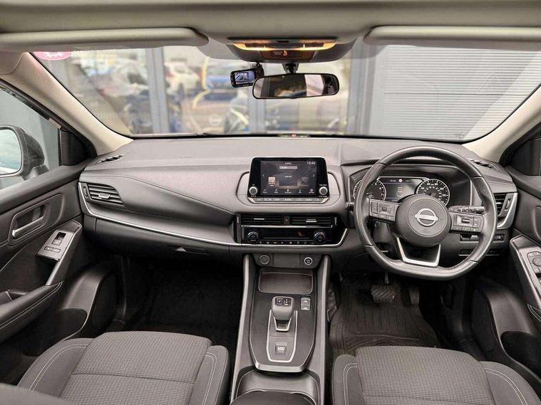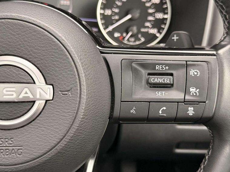 7" High definition full colour TFT screen combimeter, Android auto/Apple CarPlay (Wired), Blind spot warning, Drive modes (sport, normal, eco), Electric speed sensitive power steering, Emergency and breakdown call, Idle stop/start system, Intelligent Cruise control (ICC), Intelligent driver alert system, Intelligent forward collision warning, Intelligent lane intervention, Lane departure prevention, Lane departure warning system, Maximum speed limiter, Nissan connect 8" touchscreen infotainment system, Push button starter, Rear cross traffic alert, Rear parking sensors, Rear view camera, Traffic sign recognition with legal speed adjustment, Trip computer, 6 speakers, AM/FM audio system with DAB, Bluetooth audio streaming, Front USB connections (Type-A and Type-C), Auto dimming rear view mirror, Auto rear wiper when reversing, Automatic hazard signal with emergency stop signal, Body colour mirror caps, Body coloured door handles, Bodyside mouldings, Chrome side window finisher, Door handle with button, Electric auto folding door mirrors, Electrically adjustable and heated door mirrors with LED turn indicator, Follow me home headlights, High beam assist, Intelligent auto headlights, LED daytime running lights, LED Headlights, LED rear lights, One touch front and rear electric windows with remote opening and closing, Partially body coloured bumpers, Rear reversing light (bulb lighting), Rear roof spoiler, Rear side wing doors, Shark fin antenna, Splash free rain sensing wipers, Three blink turn signal, 12v power socket in dashboard and luggage, 2x Rear coat hooks, 3 bench rear seats in 2nd row, 3 rear headrests, 4 folding assist grip, 6-way manually adjustable driver's seat, 60/40 split folding rear seat bench, Centre console storage tray, Chrome interior door handles, Cloth monoform upholstery, Driver and front passenger sunvisors with illuminated vanity mirrors, Driver seat back pocket, Dual zone automatic climate control with pollen filter, Electrically adjustable lumbar support for driver, Front and rear door storage, Front centre console and armrest, Front cupholders x 2, Front door with bottle holders, Glovebox with light, Hard trunk cover, Height adjustable driver's seat, Height adjustable front headrests, Height adjustable passenger seat, Leather steering wheel, Luggage space lighting, Manually adjustable passenger (slide recline + lifter), Multifunction steering wheel, Passenger seat back pocket, Rear armrest with 2 cupholders, Rear door bottle holders, Single front passenger seat, Steering wheel gearshift paddles, Steering wheel switches, Sunglasses holder, Tilt/telescopic adjustable steering wheel, Two rear isofix child seat anchorage points with top tether, 3x3 point rear seatbelt pretensioners + load limiters, ABS with EBD and brake assist, Active brake limited slip, Auto hold function, Child locks on rear doors, Curtain and front side, far side airbags, Driver and passenger airbags, Driver, passenger and 2nd row rear seat belt reminder, Electronic parking brake, Front seatbelt pretensioners + load limiters, Height adjustable front seatbelts, Hill start assist, Intelligent blind spot intervention, Intelligent front emergency braking with pedestrian, cyclist recognition and junction assist, Intelligent rear automatic braking, Tyre pressure monitoring system, Vehicle dynamic control, Capless fuel filler, Engine immobiliser, Intelligent Key, Remote central door locking with deadlocking, Thatcham Cat.1 alarm, Interior instrumental panel A finisher, 17" Alloy wheels, Tyre puncture repair kit,