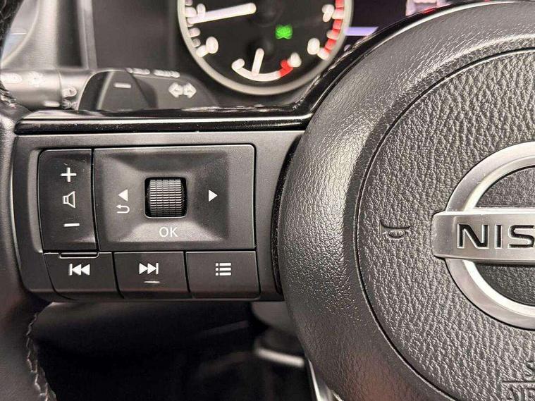 Android auto/Apple CarPlay (Wired), Blind spot warning, Drive modes (sport, normal, eco), Electric speed sensitive power steering, Emergency and breakdown call, Full Digital 12.3" TFT Digital Combimeter, Google maps services - search, weather, 3D maps and Google street view, Idle stop/start system, Intelligent around view monitor, Intelligent Cruise control (ICC), Intelligent driver alert system, Intelligent forward collision warning, Intelligent lane intervention, Lane departure prevention, Lane departure warning system, Maximum speed limiter, Moving object detection, Nissan connect 12.3 inch touchscreen infotainment system, Nissan connect navigation, Push button starter, Rear cross traffic alert, Rear parking sensors, Rear view camera, Remote control services - door locks, lights, horn and car locator, Telematics - notifications and connectivity services, TomTom live traffic services, Traffic sign recognition with legal speed adjustment, Trip computer, Virtual personal assistant and firmware over the air capability, Wireless apple carplay, 6 speakers, AM/FM audio system with DAB, Bluetooth audio streaming, Front USB connections (Type-A and Type-C), Rear USB charging only ports (Type-A and Type-C), Auto dimming rear view mirror, Auto rear wiper when reversing, Automatic hazard signal with emergency stop signal, Body colour mirror caps, Body coloured door handles, Bodyside mouldings, Chrome side window finisher, Door handle with button, Dusk sensor, Electric auto folding door mirrors, Electrically adjustable and heated door mirrors with LED turn indicator, Follow me home headlights, High beam assist, Intelligent auto headlights, LED daytime running lights, LED Headlights, LED rear lights, One touch front and rear electric windows with remote opening and closing, Partially body coloured bumpers, Privacy glass, Rear bumper with graphite insert, Rear reversing light (bulb lighting), Rear roof spoiler, Rear side wing doors, Rear styling plate, Shark fin antenna, Splash free rain sensing wipers, Super UV and infrared cut glass, Three blink turn signal, 12v power socket in dashboard and luggage, 2 way electrical driver lumbar adjustment, 2x Rear coat hooks, 3 bench rear seats in 2nd row, 3 rear headrests, 4 folding assist grip, 6 Luggage hooks - 4 on floor, 2 on side, 6-way manually adjustable driver's seat, 60/40 split folding rear seat bench, Ambient lighting around centre console, Centre console storage tray, Chrome interior door handles, Cloth monoform upholstery, Driver and front passenger sunvisors with illuminated vanity mirrors, Driver seat back pocket, Dual zone automatic climate control with pollen filter, Front and rear door storage, Front centre console and armrest, Front cupholders x 2, Front door with bottle holders, Glovebox with light, Hard trunk cover, Height adjustable front headrests, Height adjustable passenger seat, Leather steering wheel, Luggage board system, Luggage space lighting, Manually adjustable passenger (slide recline + lifter), Multifunction steering wheel, Passenger seat back pocket, Rear armrest with 2 cupholders, Rear door bottle holders, Single front passenger seat, Soft PVC kneepad, Steering wheel gearshift paddles, Steering wheel switches, Sunglasses holder, Tilt/telescopic adjustable steering wheel, Two rear isofix child seat anchorage points with top tether, Welcome light and console tray ambient lighting, 3x3 point rear seatbelt pretensioners + load limiters, ABS with EBD and brake assist, Active brake limited slip, Auto hold function, Child locks on rear doors, Curtain and front side, far side airbags, Driver and passenger airbags, Driver, passenger and 2nd row rear seat belt reminder, Electronic parking brake, Front seatbelt pretensioners + load limiters, Height adjustable front seatbelts, Hill start assist, Intelligent blind spot intervention, Intelligent front emergency braking with pedestrian, cyclist recognition and junction assist, Intelligent rear automatic braking, Tyre pressure monitoring system, Vehicle dynamic control, Capless fuel filler, Engine immobiliser, Nissan i-key, Remote central door locking with deadlocking, Thatcham Cat.1 alarm, Interior instrumental panel B finisher, 18" Diamond cut alloy wheels, Tyre puncture repair kit,