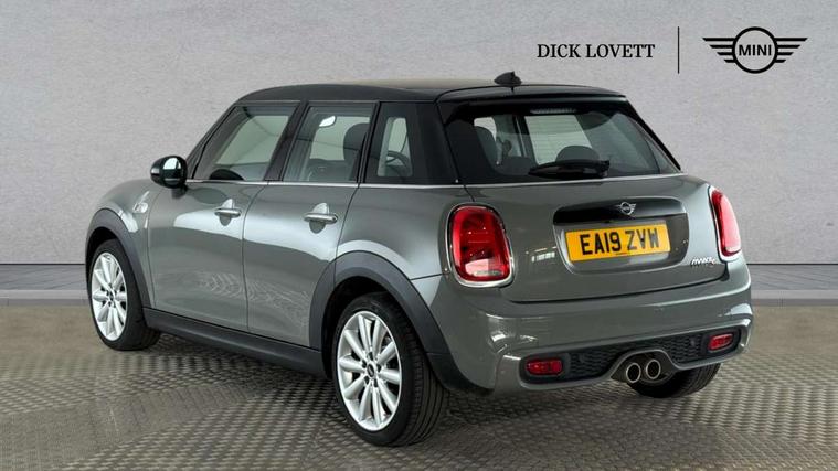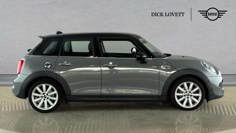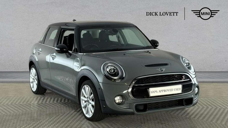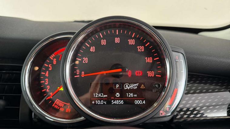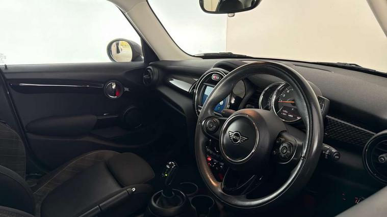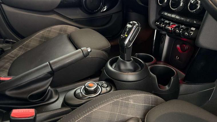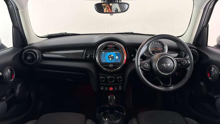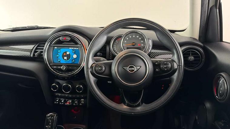 Compatible mobile phone bluetooth with audio streaming, Instrument cluster, Mini E-call, MINI TeleServices, On board computer, Service interval indicator, Performance Control, Steptronic transmission with double clutch, 6.5" touchscreen with LED ring, FM tuner and DAB digital radio, Automatic headlight activation switch, Bonnet scoop, Chrome border honeycomb structure radiator grille with S badge, Chrome plated fuel cap, Dynamic brake lights, Electric front+rear windows, Heated rear window, Heated windscreen washer jets, LED headlight with closed ring and daytime driving lights, Metal door sill strips with Cooper S imprint, Model logo Cooper S on right of tailgate, Rain sensor window wipers, Rear fog lights, Rear LED lights with union jack design, Rear window wiper, Side scuttle panel with integrated indicator, Sun/heat protection glass, Two central exhaust tailpipes with chrome finisher, White indicator lenses, 12V Accessory socket in centre console, 4 lashing eyes in luggage compartment, 60/40 split folding rear seat, Chrome interior highlights, Colour line - Carbon black, Cupholders, Front and rear isofix with front passenger airbag deactivation, Glove compartment, Height and length steering column adjustment, Interior lighting with 12 basic colours selectable via toggle switch in roof, Leather gearshift lever and handbrake gaiters, LED reading lights, vanity mirror lights, front foot well light and spotlight on front seats, Manual air conditioning, Mechanical seat adjustment, driver seat height adjust, forward/back and front seats backrest, Mini logo projection on floor from drivers exterior mirror, Multifunction steering wheel, Satellite grey headlining, Storage compartments in doors, Storage pocket on back of front seats, Sunvisors with vanity mirrors, Tool kit, 3 point seatbelts on all five seats, 6 Airbags - front, side, head and seat belt tensioners, Anti-lock braking system (ABS), DSC - Dynamic Stability Control, Front and rear disc brakes, Hill start assist, Two tone horn, Tyre pressure monitoring system, Alarm system with tilt sensor, monitoring doors, bonnet interior and tailgate, Electronic vehicle immobiliser, Start/stop toggle with keyless go,