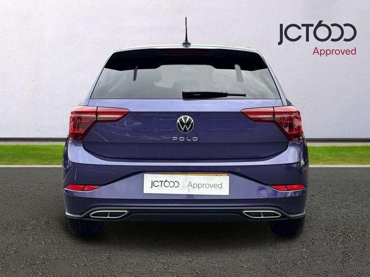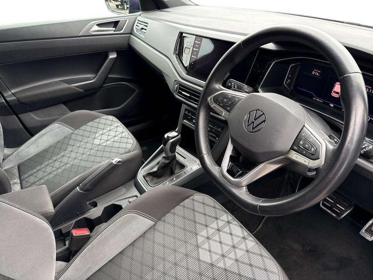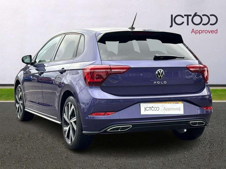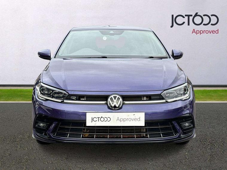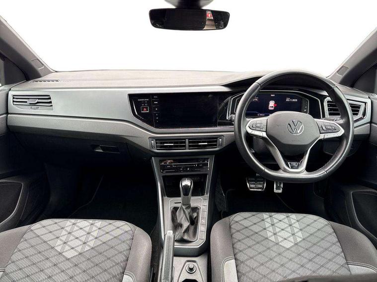 Adaptive cruise control with follow-to-stop and speed limiter, Bluetooth mobile phone interface, Digital Cockpit Pro with 10.25" Display, Driver alert system, Dynamic road sign display, Emergency call service, Power assisted speed sensitive steering, Preparation for We connect and We connect plus, Speedo and rev counter, electronic odometer, trip, service interval display and fuel gauge, Standard rear axle, Travel Assist - Lane keeping system and traffic jam assist, Travel assist including emergency assist, Trip computer, Warning signal and warning light for front and rear seatbelts not fastened, Washer fluid level indicator, Wireless app connect, Front wheel drive, Rear shock absorpion, Start-stop system with battery regeneration (recuperation - energy recovery during braking), DAB Digital radio, Diversity antenna for FM reception, Front and rear 6 speakers, Body colour bumpers, Body colour door handles, Electric front windows, Front scuff plates with R-Line logo, Heat insulating darkened glass in side and rear windows, Heat insulating glass windscreen, Power folding adjustable/heated exterior mirrors and front passenger exterior mirror lowering function, Rear electric windows, Rear fog light, Rear side wing doors, Rear windscreen washer and wiper with interval delay, Third brake light, 12V power socket in centre console, 2 USB-C ports in the front, 2 USB-C charging sockets on the center console in the rear, 3 rear head restraints, 60/40 split folding rear seat and rear seat bench not split, Air care climatronic air conditoning system with active combination filter and 2-zone temperature control, Black roof lining, Chrome plated radiator grille inserts, air vent surrounds and light switch surrounds, Door and side trim panel, Driver and front passenger seat height adjustment, Driver/passenger sunvisors with illuminated vanity mirrors, Front + rear carpet mats in recycled material, Front centre armrest, Front footwell illumination, Front seat backrest storage pockets, Front sports comfort seats, Handbrake lever handle in leather, Headliner in recycled material, Isofix child seat preparation easy-fit (for two outer rear seats, and front passenger seat) compatible with I-size, Karoso artvelours cloth upholstery, Leather trimmed gear knob, LED interior light with switch off delay and dimmer, 2 reading lights front and rear, Luggage compartment cover, Luggage compartment floor, Luggage compartment lighting, Lumbar adjustment for front seats, Single front passenger seat, Stainless steel pedals, Standard pedal cluster, Three spoke leather wrapped multifunction steering wheel with shifting paddles, Light and sight pack - Polo R-Line/Black Edition, 3 point height adj front seatbelts + pretensioners, 3x3 point rear seatbelts, ABS, Driver and front passenger airbag with front passenger airbag deactivation, Drivers and front passengers safety optimised head restraints, ESC (Electronic stability control) + EDL (Electronic Differntial lock) and ASR (Traction control), Extended and predictive pedestrian/ cyclist protection, Front curtain and side airbags with center airbag, Hill hold control, Manual child lock in rear doors, Single tone horn, Tyre pressure loss indicator, Alarm with interior protection, Anti-theft alarm system with interior monitoring, backup horn, and towing protection, Anti-theft wheel bolts, Electronic engine immobiliser, Chrome applications on rotary light, mirror adjustment, window regulator switches, outlet with frame in black, Dark grey anodised matt decorative inserts in dash and front door panels, Low rolling resistance tyres,