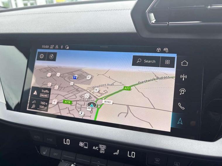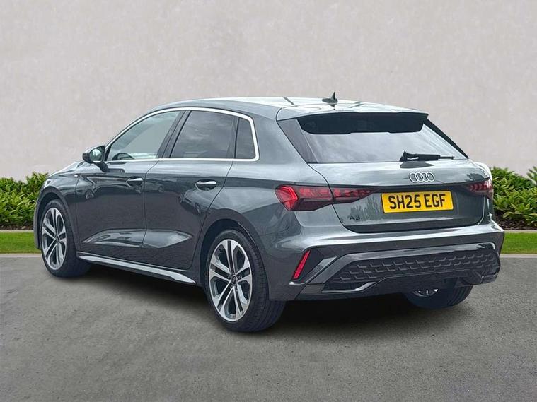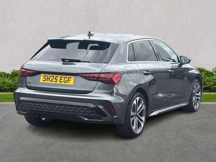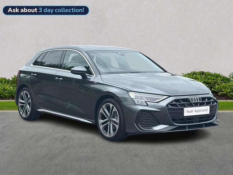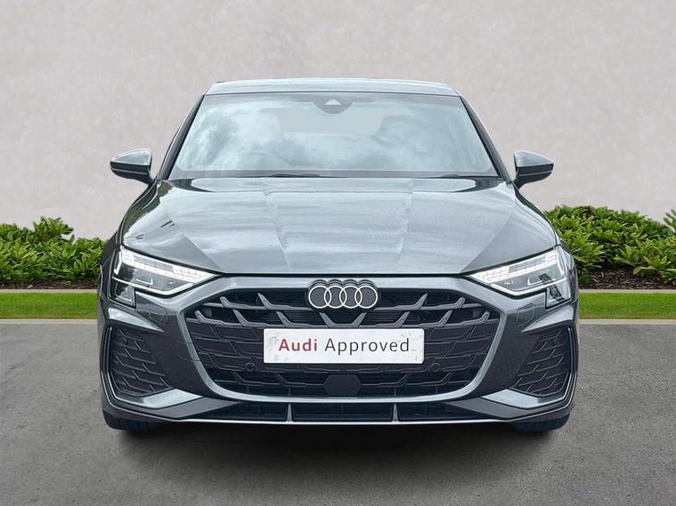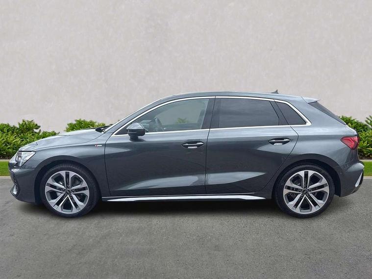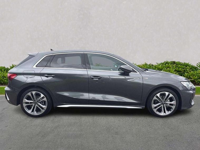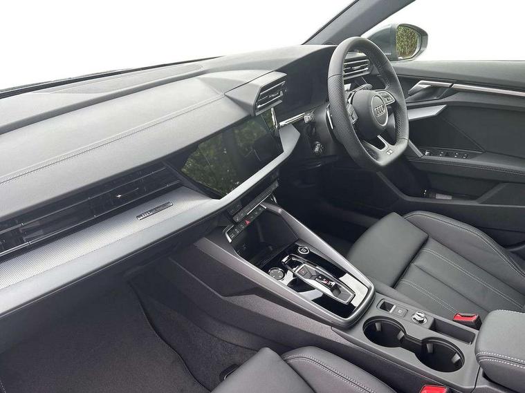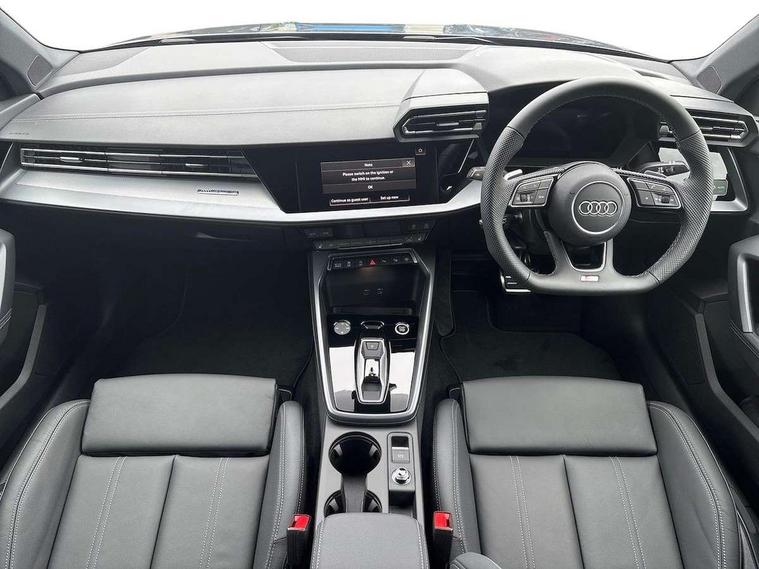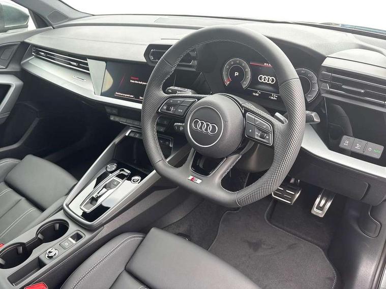 Adjustable speed limiter, Audi drive select, Audi smartphone interface with app store includes wireless Apple carplay, Android auto and Amazon alexa integration, Audi virtual cockpit plus - 12.3" full HD resolution dynamic digital instrument cluster, Automatic start/stop system with recuperation, Bluetooth interface, Camera based traffic sign recognition, Collision avoidance assistant, Cruise control, Distraction and Fatigue warning, e-Call (emergency call), Electromechanical power speed sensitive steering, Emergency assist, Lane departure warning system, MMI Navigation Plus with high resolution 10.1" colour touch screen display, Park Assist with parking system Plus, Service indicator, Tailgate, Trip computer, Voice control system with natural language interaction, Sports suspension, Audi Phonebox light with wireless charging, Audi sound system - 10 loudspeakers including centre loudspeaker and subwoofer, DAB Digital radio, USB ports with charging function in the rear, Acoustic glass windscreen, All weather light, Aluminium window trim, Auto dimming frameless rear view mirror, Automatic dynamic range control, Body colour exterior mirrors, Chrome exhaust tailpipes, Dipped beam, main beam, position light and turning light, Electrically adjustable/heated/folding/auto dimming door mirrors with integrated LED indications + kerb view function for passenger side, Exterior model badging, Front and rear side air inlets in grained matt black with dark liquid chrome frame, Front electric windows, Front radiator grill in high gloss dark chrome, Heat insulating glass windscreen, Illuminated door sills with aluminium inserts at the front with S logo, Intersection light, LED 3rd brake light, LED brake lights, LED daytime running x3, LED headlights with LED rear lights and dynamic rear indicators, LED rear number plate lights, LED reverse light, LED tail lights, Light and rain sensors, Manoeuvring light, Motorway light, Privacy glass - dark tinted rear window, rear door and side windows, Rear diffuser and grill in grained matt black with inlay in dark liquid chrome, Rear electric windows, Rear side wing doors, Rear wiper, S line bumpers, S roof spoiler, Side S line emblems on front wings, Side sill trim in dark liquid chrome, Static Cornering lights, 12V socket and storage compartment in front centre console, 3 seat bench in 2nd row, 3 spoke flat bottomed leather multifunction sport steering wheel with gear shift paddles, 3-zone deluxe automatic air conditioning, 4 way electrically adjustable lumbar support for driver and front passenger, 40/20/40 split folding rear seat bench, Black cloth headlining, Black front and rear floor mats, Front and rear centre armrest in artificial leather with contrasting stitching on armrests and instrument panel, Front and rear headrests, Heated front seats, Height and reach adjustable steering wheel, Manual boot compartment lid, Manually adjustable front seats, Rear centre armrest with cupholder, S badging on the steering wheel, Seat side bolsters, Single front passenger seat, Stainless steel pedals and front footrest in black, Twin leather upholstery with front sports seats S embossed logo, Aluminium interior elements pack - A3, Multi-coloured LED interior lighting package with Multi-coloured contour lighting of instrument panel - A3, 3x3 point rear seat belts, Driver and front passenger airbag with passenger airbag deactivation, Electronic Stabilisation Control (ESC) including ABS, ASR and EDL, First aid kit with warning triangle and 2 safety vests, Front side airbags with head airbags and interaction airbag, Hill hold assist, Pre-sense front with pedestrian and cyclist detection, Seatbelt monitoring, Tyre pressure loss indicator, Anti theft alarm, Anti-theft wheel bolts, Electronically operated child locks, Immobiliser, Remote central locking with safelock, Black dashboard, Inlay in dark aluminium spectrum,
