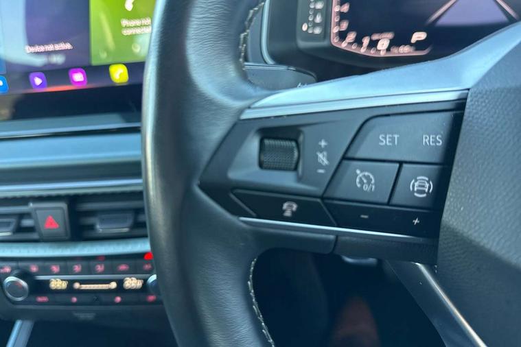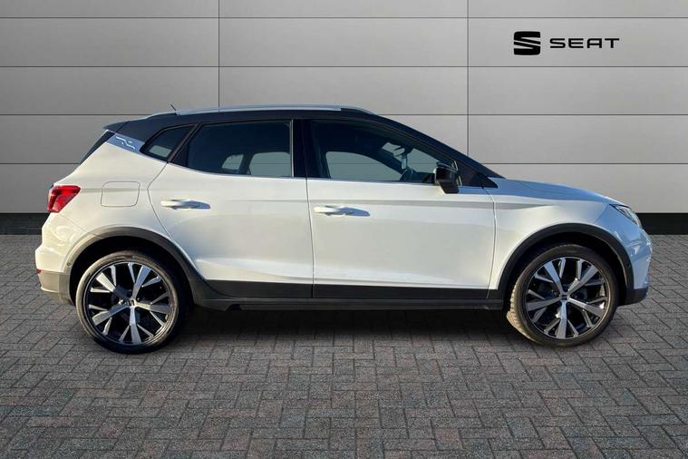 'Lights On' Reminder warning buzzer, 10" Digital cockpit, Digital clock, E-call, Electric speed sensitive power steering, Front parking sensor, Full Link Smartphone Integration with Mirror Link, Apple Car Play, Google Android Auto with USB Type C cable for Apple and Android compatibility, Lane keeping system, Low fuel warning light, Outside temperature display, Park assist system, Rear parking sensor, Rear view camera, RPM counter, Seat connect with safety, service, remote and online, Trip computer, Wireless phone charger, 9.2" colour touchscreen with navigation system, voice control and USB port (type c), Bluetooth interface for hands free and audio streaming, DAB digital radio and AM/FM radio, Steering wheel mounted audio controls, Anti theft roof antenna, Auto dimming interior rear view mirror, Automatic activation of hazard warning lights, Body coloured bumpers, Body coloured door handle inserts, Chrome roof rails and window surrounds, Electric front/rear windows, Electrically adjustable, heated and folding door mirrors, Front fog lights with cornering function and rear fog light, FULL LED automatic headlights with dynamic headlight range control, coming and leaving home, LED daytime running lights, Hidden exhaust pipe, LED rear tail lights and licence plate lights, Protective side mouldings, Rain sensing wipers, Rear side wing doors, Rear spoiler, Rear window wash/wipe, Roof colour door mirrors, Third brake light, Visible VIN plate, Windshield wiper with intermittent control and potentiometer, 2 cupholders, 3 seat bench in 2nd row, 60/40 split folding rear seat, Aircare filter, Black interior roof, Double boot floor, Driver sunvisor with covered mirror + card holder, Dual zone climate control, Flat bottomed leather steering wheel/gear knob/handbrake, Front comfort seats, Front courtesy light with front reading lights, Front seat back storage pockets, Gear shift indicator, Heated front seats, Height adjustable front seats, Height/reach adjustable steering column, Illuminated boot, Instrument lighting with brightness control, Interior ambient lighting, Interior light in footwell, central console and door panel, ISOFIX points in outer rear seats with top tether anchorage points, Leather steering wheel/gear knob/handbrake, Microsuede cloth upholstery, Passenger sunvisor with vanity mirror, Single front passenger seat, Storage net on centre console, Two front and three rear height adjustable headrests, Interior chrome pack - Arona, Safety and driving pack (M) - Arona, Storage pack - Arona, 3 point seatbelts on all rear seats, ABS, Active front headrests, Child locks on rear doors, Driver and front passenger airbags with front passenger airbag de activation, front side and curtain airbags, Electronic stability control, Emergency Brake Assist (EBA) and front assist, Front and rear seatbelt reminder, Hill hold control, Multi-Collision braking, Tiredness recognition system, Traction control, Tyre pressure monitoring system, Alarm with back-up horn, Electronic engine immobiliser, KESSY Keyless entry and go, Locking wheel bolts, Remote central locking + deadlocks, Tow away protection, Titan black dashboard, 18" Performance Nuclear grey alloy wheels,