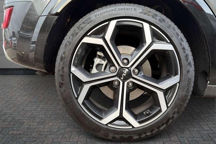 10.25" driver display screen, 10.25" touchscreen satellite navigation, Apple car play/Android Auto with voice control, Blind spot collision avoidance assist, Customisable Head Up Display, Drive mode select (Eco, normal, sport, snow), E-call, Emergency stop signalling system, Forward Collision-Avoidance Assist (FCA) 1.5 - City/Pedestrian/Cyclist/Junction turning, Front parking sensors, Highway Driving Assist (HDA), Intelligent speed limit assist, Kia Connect (UVO), Lane Following Assist (LFA), Lane keep assist, Motor driven power steering, Parking collision avoidance assist (PCA), Rear cross traffic collision avoidance assist (RCCA), Rear parking sensors, Remote smart parking assist, Reversing camera system, Safe exit warning (SEW), Smart cruise control with stop and go functionality, Smart power tailgate, Trip computer with distance/fuel consumption/average speed, Wireless Smartphone charger, 220v AC Inverter, 'Shark fin' mobile antenna, 6 speakers, Bluetooth with music streaming, DAB Digital radio, Steering wheel mounted controls, USB port for connection of a media device, Acoustic windshield, All round electric windows with drivers and front passenger auto up/down and safety function, Auto dimming rear view mirror, Automatic defog system, Automatic headlight control system, Black grille with chrome surround, Black window surrounds, Body colour bumpers, Body colour door mirrors, Body colour exterior door handles, Deluxe door scuff plates, Electrically adjustable and heated door mirrors with LED turn indicator, Electrically folding door mirrors, Front and rear chrome skid plates, Front fog lights, Gloss black wheel arches, Heated rear window, LED daytime running lights, LED Headlights, LED High mounted brake light, LED rear combination lights, Privacy glass - Rear windows and tailgate, Rain sensing front wipers, Rear fog lights, Rear roof spoiler, Rear side wing doors, Rear wiper, Roof rails, Solar glass windscreen, Sunroof with tilting and sliding function, Welcome and follow-me home light functionality, Windscreen Washer Level Warning, 12V socket in front, 12V socket in luggage compartment, 3 seat bench in 2nd row, 60:40 split remote folding rear seats, All-round height adjustable headrests, Alloy pedals, Artificial leather centre console storage box, Artificial leather steering wheel, Artificial leather upholstery, Automatic air conditioning, Centre console cupholder, Chrome coating interior door handles, Driver power adjusted memory seat, Driver/passenger sunvisors with illuminated vanity mirrors, Drivers seat power lumbar support, Front and rear door storage, Front passenger 1 x USB-C charging port, Front passenger power adjusted seat, Front passenger relaxation seat, Glove box, Heated front seats, Heated outer rear seats, Heated steering wheel, ISOFIX Child seat top tethers and anchor fixings, LED Front cabin, rear & luggage compartment lights, Luggage area load cover, Luggage board, Manually adjustable steering column, Paddle shifts, Power adjustable lumbar support on front passenger seat, Rear centre armrest with cupholder, Rear passenger 2 x USB-C charging ports, Seatback pocket - driver, Seatback pocket - front passenger, Shift by wire SBW, Single front passenger seat, Ventilated front seats, Ventiliation ducts to rear compartment, 3 point seatbelts on all seats, ABS, Automatic unlocking of doors in case of impact, Curtain and side airbags, Dual shell horn, Electric parking brake with auto hold function, Electronic stability control, Front airbags, Front passenger airbag cut-off switch, Height adjustable front seatbelts, Hill start assist control (HAC), Knee airbags, Seatbelt reminder warning, Traction control, Tyre pressure monitoring system, Customisable automatic door locking, Customisable automatic door unlocking, Deadlocks, Engine Start/Stop Button with Smart Entry System, Locking wheel nuts, Manual child locks, Rear occupant alert, Smart key with motion sensor, Thatcham category 2 security alarm and immobiliser, Visible vehicle identification number, Warranty - 7 Years/ 100, 000 miles, Centre fascia chopped carbon, 18" Alloy wheels, Tyre mobility kit,