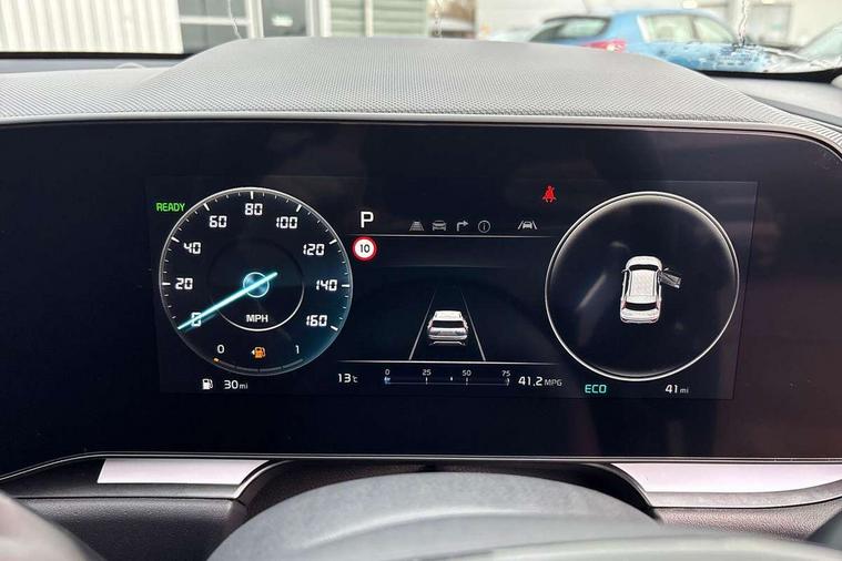 10.25" driver display screen, 10.25" touchscreen satellite navigation, Apple car play/Android Auto with voice control, Blind spot collision avoidance assist, Customisable Head Up Display, Drive mode select (Eco, normal, sport, snow), E-call, Emergency stop signalling system, Forward Collision-Avoidance Assist (FCA) 1.5 - City/Pedestrian/Cyclist/Junction turning, Front parking sensors, Highway Driving Assist (HDA), Intelligent speed limit assist, Kia Connect (UVO), Lane Following Assist (LFA), Lane keep assist, Motor driven power steering, Parking collision avoidance assist (PCA), Rear cross traffic collision avoidance assist (RCCA), Rear parking sensors, Remote smart parking assist, Reversing camera system, Safe exit warning (SEW), Smart cruise control with stop and go functionality, Smart power tailgate, Trip computer with distance/fuel consumption/average speed, Wireless Smartphone charger, 220v AC Inverter, 'Shark fin' mobile antenna, 6 speakers, Bluetooth with music streaming, DAB Digital radio, Steering wheel mounted controls, USB port for connection of a media device, Acoustic windshield, All round electric windows with drivers and front passenger auto up/down and safety function, Auto dimming rear view mirror, Automatic defog system, Automatic headlight control system, Black grille with chrome surround, Black window surrounds, Body colour bumpers, Body colour door mirrors, Body colour exterior door handles, Deluxe door scuff plates, Electrically adjustable and heated door mirrors with LED turn indicator, Electrically folding door mirrors, Front and rear chrome skid plates, Front fog lights, Gloss black wheel arches, Heated rear window, LED daytime running lights, LED Headlights, LED High mounted brake light, LED rear combination lights, Privacy glass - Rear windows and tailgate, Rain sensing front wipers, Rear fog lights, Rear roof spoiler, Rear side wing doors, Rear wiper, Roof rails, Solar glass windscreen, Sunroof with tilting and sliding function, Welcome and follow-me home light functionality, Windscreen Washer Level Warning, 12V socket in front, 12V socket in luggage compartment, 3 seat bench in 2nd row, 60:40 split remote folding rear seats, All-round height adjustable headrests, Alloy pedals, Artificial leather centre console storage box, Artificial leather steering wheel, Artificial leather upholstery, Automatic air conditioning, Centre console cupholder, Chrome coating interior door handles, Driver power adjusted memory seat, Driver/passenger sunvisors with illuminated vanity mirrors, Drivers seat power lumbar support, Front and rear door storage, Front passenger 1 x USB-C charging port, Front passenger power adjusted seat, Front passenger relaxation seat, Glove box, Heated front seats, Heated outer rear seats, Heated steering wheel, ISOFIX Child seat top tethers and anchor fixings, LED Front cabin, rear & luggage compartment lights, Luggage area load cover, Luggage board, Manually adjustable steering column, Paddle shifts, Power adjustable lumbar support on front passenger seat, Rear centre armrest with cupholder, Rear passenger 2 x USB-C charging ports, Seatback pocket - driver, Seatback pocket - front passenger, Shift by wire SBW, Single front passenger seat, Ventilated front seats, Ventiliation ducts to rear compartment, 3 point seatbelts on all seats, ABS, Automatic unlocking of doors in case of impact, Curtain and side airbags, Dual shell horn, Electric parking brake with auto hold function, Electronic stability control, Front airbags, Front passenger airbag cut-off switch, Height adjustable front seatbelts, Hill start assist control (HAC), Knee airbags, Seatbelt reminder warning, Traction control, Tyre pressure monitoring system, Customisable automatic door locking, Customisable automatic door unlocking, Deadlocks, Engine Start/Stop Button with Smart Entry System, Locking wheel nuts, Manual child locks, Rear occupant alert, Smart key with motion sensor, Thatcham category 2 security alarm and immobiliser, Visible vehicle identification number, Warranty - 7 Years/ 100, 000 miles, Centre fascia chopped carbon, 18" Alloy wheels, Tyre mobility kit,