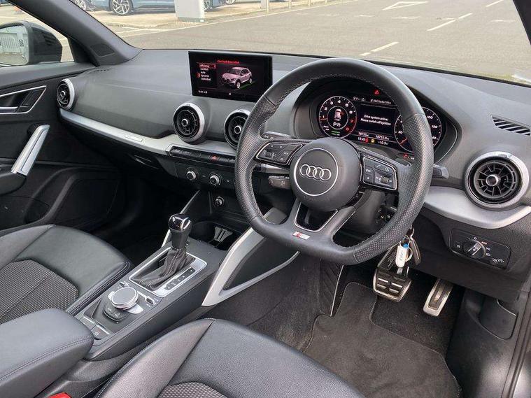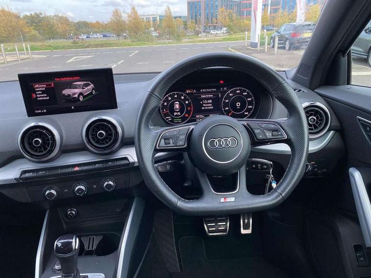 Audi connect navigation and infotainment includes innovative services, Audi connect remote and control connects your vehicle to your smartphone, Audi drive select - Power steering assistance + engine + gearshift, Audi drive select with efficiency, Audi smartphone interface, Audi virtual cockpit, Automatic start/stop system with recuperation, Bluetooth interface includes bluetooth audio streaming, Cruise control, E-call, MMI navigation plus with MMI touch, Power operated tailgate, Progressive steering, Rear parking sensors, 2 x SDXC card reader, 6 passive loudspeakers, DAB Digital radio, DVD Drive, Auto dimming rear view mirror, Black window trims, Bumper in full body colour paint finish, Electrically adjustable, folding, auto dimming and heated door mirrors with integrated LED side indicators, Front windscreen with grey tinted sunband, LED daytime running lights, LED headlights with LED rear lights, LED third brake light, Privacy glass - dark tinted rear and rear side windows from B-pillar backwards, Rear side wing doors, Rear wiper, Variable front intermittent wipers, Wheel arch trims in manhattan grey, 12V socket in front, 3 seat bench in 2nd row, 3 spoke flat bottomed multi-function leather sport steering wheel with gear shift paddles, 4-way electric lumbar support for front seats including seat height adjustment for both front seat, 60/40 split folding rear seat bench, Black cloth headlining, Front and rear head restraints, Front centre armrest, Front/rear floor mats, Height/reach adjust steering wheel, Illuminated door sill trims with S logo, Single front passenger seat, Stainless steel pedals, Black styling pack - Q2, 3x3 point rear seatbelts, 6 airbags - Front, curtain and front side airbags, Electromechanical parking brake, Electronic stabilisation control including ABS, ASR and EDL, Front passenger airbag deactivation, Hill hold assist, Pre-sense front with pedestrian recognition, Seatbelt monitoring, Tyre pressure warning light, Warning triangle and first aid kit, Anti theft alarm, Anti theft wheel bolts, Manual child locks, Remote central door locking, Aluminium interior element, Matt brushed aluminium trim inlays, Tool kit,
