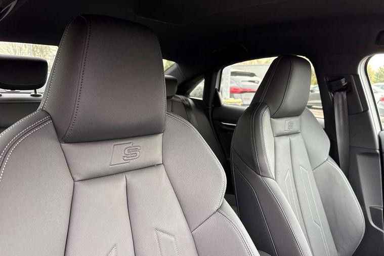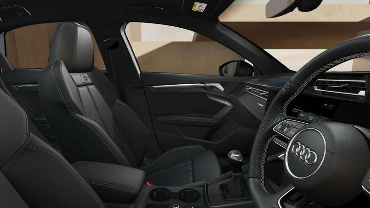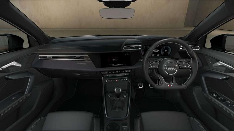 Adjustable speed limiter, Audi drive select, Audi smartphone interface with app store includes wireless Apple carplay, Android auto and Amazon alexa integration, Audi virtual cockpit plus - 12.3" full HD resolution dynamic digital instrument cluster, Automatic start/stop system with recuperation, Bluetooth interface, Camera based traffic sign recognition, Collision avoidance assistant, Cruise control, Distraction and Fatigue warning, e-Call (emergency call), Electromechanical power speed sensitive steering, Lane departure warning system, MMI Navigation Plus with high resolution 10.1" colour touch screen display, Park Assist with parking system Plus, Service indicator, Trip computer, Voice control system with natural language interaction, Sports suspension, Audi Phonebox light with wireless charging, Audi sound system - 10 loudspeakers including centre loudspeaker and subwoofer, DAB Digital radio, USB ports with charging function in the rear, Acoustic glass windscreen, All weather light, Anthracite grey Audi rings (front and rear), Audi beam uses LEDs to project the Audi logo onto the ground as you exit your A3, Auto dimming frameless rear view mirror, Automatic dynamic range control, Black accents front and rear bumpers, Black accents in the area of the Audi single frame grille, Black accents window trims strips, Dipped beam, main beam, position light and turning light, Electrically adjustable/heated/folding/auto dimming door mirrors with integrated LED indications + kerb view function for passenger side, Exterior model badging, Front and rear side air inlets in grained matt black with dark liquid chrome frame, Front electric windows, Heat insulating glass windscreen, Illuminated door sills with aluminium inserts at the front with S logo, Intersection light, LED 3rd brake light, LED brake lights, LED daytime running x3, LED headlights with LED rear lights and dynamic rear indicators, LED rear number plate lights, LED reverse light, LED tail lights, Light and rain sensors, Manoeuvring light, Motorway light, Privacy glass - dark tinted rear window, rear door and side windows, Rear boot, Rear diffuser and grill in grained matt black with inlay in dark liquid chrome, Rear electric windows, Rear side wing doors, Static Cornering lights, 12V socket and storage compartment in front centre console, 3 seat bench in 2nd row, 3 spoke flat bottomed multi-function leather sport steering wheel, 3-zone deluxe automatic air conditioning, 4 way electrically adjustable lumbar support for driver and front passenger, 40/20/40 split folding rear seat bench, Black cloth headlining, Black front and rear floor mats, Front and rear centre armrest in artificial leather with contrasting stitching on armrests and instrument panel, Front and rear headrests, Heated front seats, Height and reach adjustable steering wheel, Manual boot compartment lid, Manually adjustable front seats, Rear centre armrest with cupholder, S badging on the steering wheel, Seat side bolsters, Single front passenger seat, Stainless steel pedals and front footrest in black, Twin leather upholstery with front sports seats S embossed logo, Aluminium interior elements pack - A3, 3x3 point rear seat belts, Driver and front passenger airbag with passenger airbag deactivation, Electronic Stabilisation Control (ESC) including ABS, ASR and EDL, First aid kit with warning triangle and 2 safety vests, Front side airbags with head airbags and interaction airbag, Hill hold assist, Pre-sense front with pedestrian and cyclist detection, Seatbelt monitoring, Tyre pressure loss indicator, Anti theft alarm, Anti-theft wheel bolts, Electronically operated child locks, Immobiliser, Remote central locking with safelock, Black dashboard,