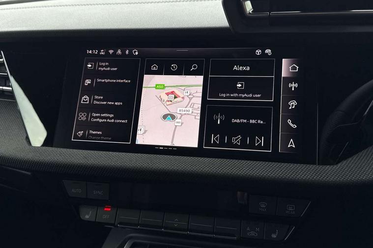 Adjustable speed limiter, Audi drive select, Audi smartphone interface with app store includes wireless Apple carplay, Android auto and Amazon alexa integration, Audi virtual cockpit plus - 12.3" full HD resolution dynamic digital instrument cluster, Automatic start/stop system with recuperation, Bluetooth interface, Camera based traffic sign recognition, Collision avoidance assistant, Cruise control, Distraction and Fatigue warning, e-Call (emergency call), Electromechanical power speed sensitive steering, Emergency assist, Lane departure warning system, MMI Navigation Plus with high resolution 10.1" colour touch screen display, Park Assist with parking system Plus, Service indicator, Trip computer, Voice control system with natural language interaction, Sports suspension, Audi Phonebox light with wireless charging, Audi sound system - 10 loudspeakers including centre loudspeaker and subwoofer, DAB Digital radio, USB ports with charging function in the rear, Acoustic glass windscreen, All weather light, Anthracite grey Audi rings (front and rear), Audi beam uses LEDs to project the Audi logo onto the ground as you exit your A3, Auto dimming frameless rear view mirror, Automatic dynamic range control, Black accents front and rear bumpers, Black accents in the area of the Audi single frame grille, Black accents window trims strips, Dipped beam, main beam, position light and turning light, Electrically adjustable/heated/folding/auto dimming door mirrors with integrated LED indications + kerb view function for passenger side, Exterior model badging, Front and rear side air inlets in grained matt black with dark liquid chrome frame, Front electric windows, Heat insulating glass windscreen, Illuminated door sills with aluminium inserts at the front with S logo, Intersection light, LED 3rd brake light, LED brake lights, LED daytime running x3, LED headlights with LED rear lights and dynamic rear indicators, LED rear number plate lights, LED reverse light, LED tail lights, Light and rain sensors, Manoeuvring light, Motorway light, Privacy glass - dark tinted rear window, rear door and side windows, Rear boot, Rear diffuser and grill in grained matt black with inlay in dark liquid chrome, Rear electric windows, Rear side wing doors, Static Cornering lights, 12V socket and storage compartment in front centre console, 3 seat bench in 2nd row, 3 spoke flat bottomed leather multifunction sport steering wheel with gear shift paddles, 3-zone deluxe automatic air conditioning, 4 way electrically adjustable lumbar support for driver and front passenger, 40/20/40 split folding rear seat bench, Black cloth headlining, Black front and rear floor mats, Front and rear centre armrest in artificial leather with contrasting stitching on armrests and instrument panel, Front and rear headrests, Heated front seats, Height and reach adjustable steering wheel, Manual boot compartment lid, Manually adjustable front seats, Rear centre armrest with cupholder, S badging on the steering wheel, Seat side bolsters, Single front passenger seat, Stainless steel pedals and front footrest in black, Twin leather upholstery with front sports seats S embossed logo, Aluminium interior elements pack - A3, 3x3 point rear seat belts, Driver and front passenger airbag with passenger airbag deactivation, Electronic Stabilisation Control (ESC) including ABS, ASR and EDL, First aid kit with warning triangle and 2 safety vests, Front side airbags with head airbags and interaction airbag, Hill hold assist, Pre-sense front with pedestrian and cyclist detection, Seatbelt monitoring, Tyre pressure loss indicator, Anti theft alarm, Anti-theft wheel bolts, Electronically operated child locks, Immobiliser, Remote central locking with safelock, Black dashboard,