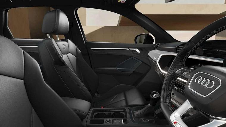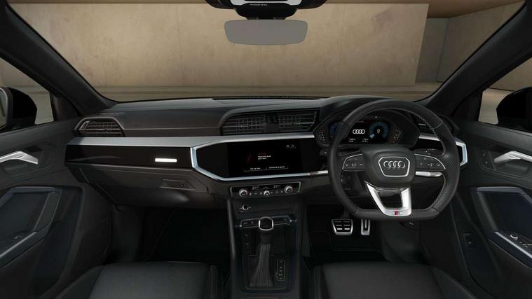 Amazon alexa Integration, Audi connect safety and service, Audi drive select, Audi lane departure warning, Audi Virtual Cockpit - 10.25" display, Bluetooth interface, Camera based traffic sign recognition, Distraction and Fatigue warning, Legal emergency call, MMI Navigation Plus with high resolution 10.1 inch touchscreen colour display, Power operated tailgate, Progressive steering, Service interval indicator, Smartphone interface includes wireless Apple carplay/Android Auto, Start stop system with recuperation, Voice control system with natural language interaction, Sports suspension, 2 USB-C ports with charge and data functions, 6 passive loudspeakers, DAB digital radio module, Acoustic windscreen, Audi Beam uses LEDs to project the Audi logo onto the ground as you exit your Q3, Auto dimming door mirrors, Auto dimming frameless rear view mirror, Black roof rails, Electrically folding, adjustable and heated door mirrors with integrated LED side indicators and kerb view function for passenger side, Front and rear electric windows, Front fog lights, Grille vertical bars in aluminium silver/Matt, High gloss black finish B and C pillars, LED Dynamic rear indicators, LED headlights with LED daytime running lights, LED rear lights, LED third brake light, Privacy glass dark tinted rear and rear-side windows (from B-pillar backwards), Rain and light sensors, Rear diffuser grille in grained matt black, Rear diffuser strip in matt anthracite black, Rear side wing doors, Rear wiper, S line bumpers in contrasting Manhattan grey, Variable front intermittent wipers, 12V socket in rear centre console, 3 seat bench in 2nd row, 40:20:40 folding with manual adjustment for 60:40 forwards/backwards position and backrest angle, Adjustable rear seat bench/backrest with centre armrest and cupholder, Black cloth headlining, Dual zone electronic climate control, Electric lumbar support, Front and rear black floor mats with contrast stitching in rock grey, Front and rear headrests, Front centre armrest, Height and reach adjustable steering wheel, Illuminated door sill trims with S logo, ISOFIX child seat mounting for front passenger with airbag deactivation and outer rear seat including top tether attachment point for outer rear seats, Manual front seats with height adjustment, Perforated leather gearknob, Single front passenger seat, Stainless steel luggage compartment sill finisher, Stainless steel pedals, Twin leather upholstery with front sport seats + S embossing, Black styling pack - Q3, Non smoking pack - Q3, 3x3 point rear seatbelts, 6 airbags - Driver, front passenger, curtain and side windows, Audi pre-sense front with pedestrain and cyclist recognition, Electrically operated child locks on rear doors, Electromechanical parking brake, Electronic stabilisation control including ABS, ASR and EDL, Front seatbelt reminder, Hill descent control, Hill hold assist, Pre sense basic, Seatbelt monitoring, Tyre pressure warning, Warning triangle and first aid kit, Anti theft wheel bolts, Immobiliser, Remote central locking, Thatcham approved category 1 anti theft alarm, Aluminium look interior elements, Detail dashboard around MMI touch colour display in glass look, black with surround in aluminium look, Leatherette door armrest, Piano black inlay,