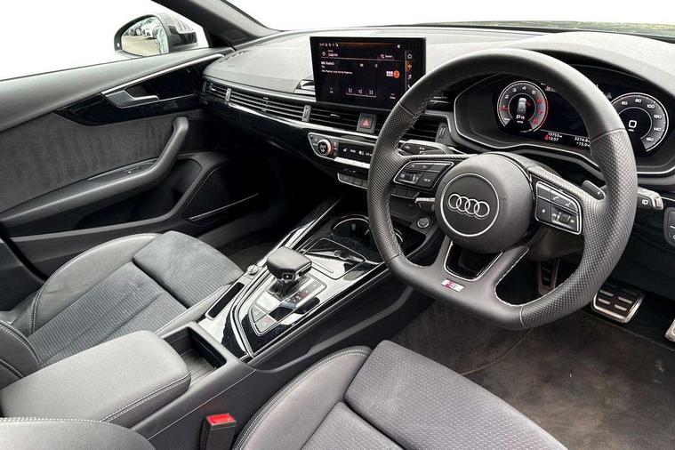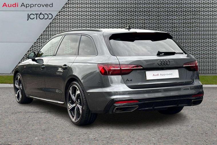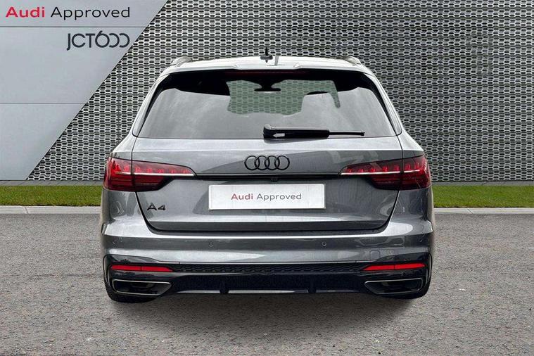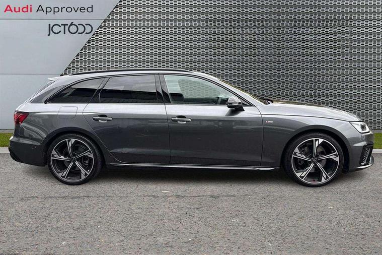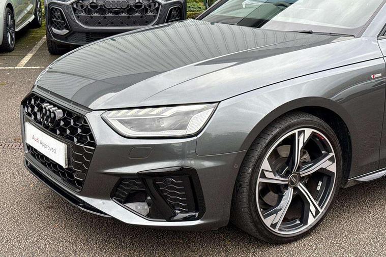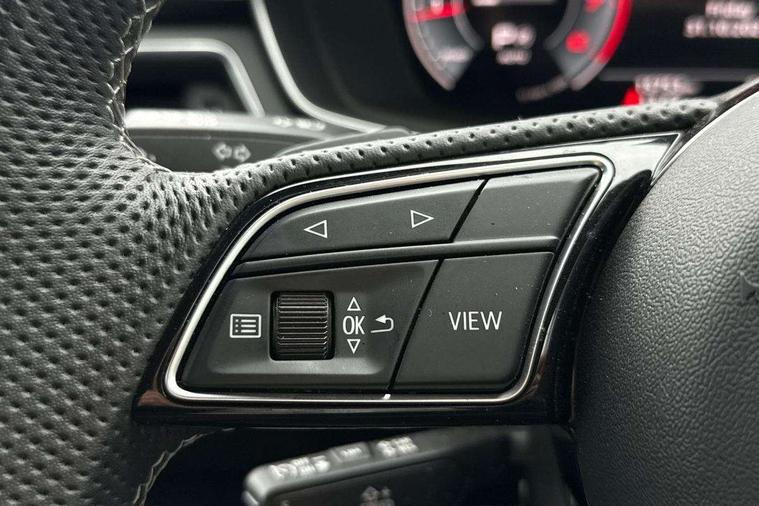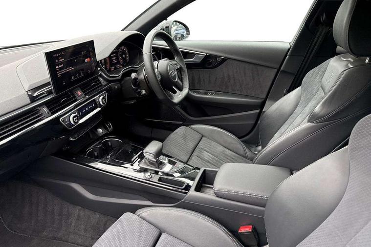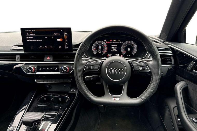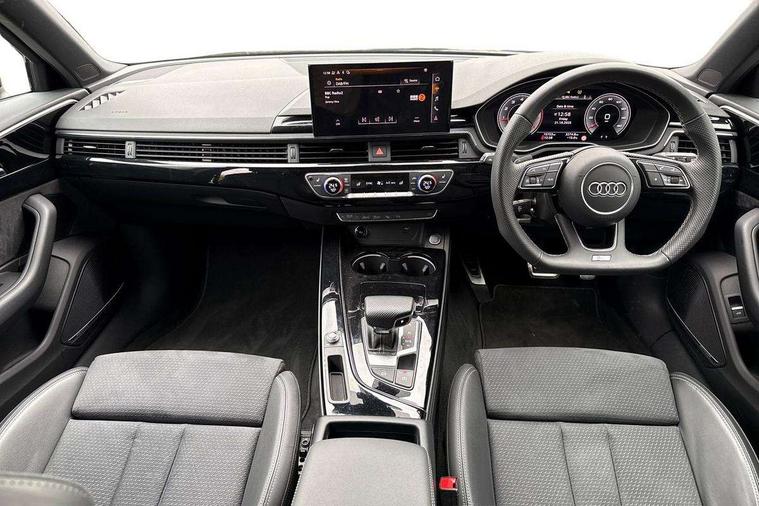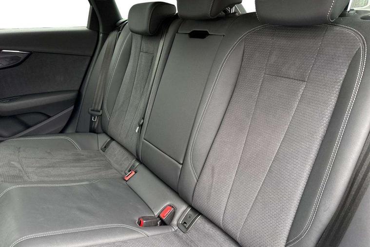 Audi connect safety and service (e-call), Audi drive select, Audi smartphone interface, Audi virtual cockpit, Automatic start-stop system with coasting functionality and efficiency programme, Bluetooth interface, Camera based traffic sign recognition, Electromechanical power steering, Email, calendar and text messages displayed via MMI, Front and rear parking sensors, Lane departure warning, MMI Navigation plus with MMI touch includes 10.1" high resolution colour MMI display, 3D map, Power operated tailgate, Rear view camera, Voice control system, 54 litre fuel tank, Sports suspension lowered by 23mm, 2 USB charging ports, 8 passive loudspeakers, DAB digital radio reception, Audi beam uses LEDs to project the audi logo onto the ground as you exit your A4, Auto dimming rear view mirror, Black Audi rings and black badging (model name in black badging, no engine badging), Body colour door handles, Body colour front spoiler lip, Body colour side sill trim, Electric adjustable/heated/folding door mirrors with auto dimming, Exhaust tailpipes in high dark chrome, Grained matt black side air inlets with matt aluminium silver inlay, High beam assistant, High gloss black B pillar trims and triangular rear door trim, LED headlights with LED rear lights + dynamic rear indicators + headlight adjustment and high beam, turning light + LED daytime running lights, LED third brake light, Privacy glass, Rain and light sensors, Rear diffuser in matt black with trim strip in matt aluminium silver, Rear side wing doors, Rear wiper, RS4 rear spoiler in body colour, S Line roof edge spoiler, Sport front and rear bumpers with side skirts, Variable intermittent front wash/wipe, Windscreen with acoustic glazing, 4 way electric lumbar support for driver and front passenger, 40/20/40 split folding 3 rear seat bench in 3 parts with rear centre armrest, Black carpets, Black cloth headlining, Black perforated leather gearknob, Contrast stitching on seats, steering wheel and gear lever gaiter, Deluxe 3 zone electronic climate control, Electric load area cover, Front and rear head restraints, Front centre armrest, Heated front seats, Illuminated door sill trims with S logo, ISOFIX child seat mounting and top tether, Manual seat adjustment, Single front passenger seat, Stainless steel pedals and foot rest, Tool kit, Black styling pack - A4 Avant, LED Interior light pack - A4/S4, 3 rear seatbelts, 6 airbags - Driver, front passenger, curtain and side windows, Attention and drowsiness assist, Electronic Stabilisation Control (ESC) including ABS, ASR and EDL, Hill hold assist, Multi collision brake assist, Pop-up bonnet for pedestrian protection, Pre sense city, Rear door child safety locks, Seatbelt monitoring, Warning triangle and first aid kit, Anti theft alarm, Anti theft wheel bolts, Central locking, Keyless Go, Piano black finish inlay, Tyre repair kit,