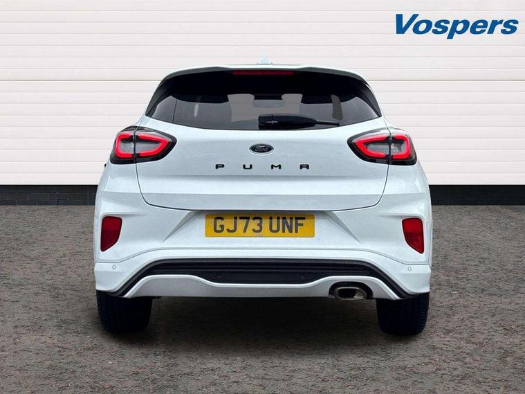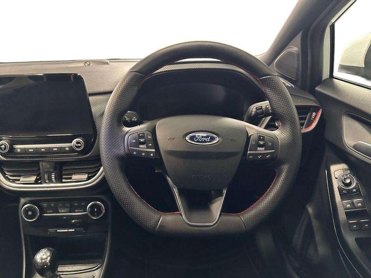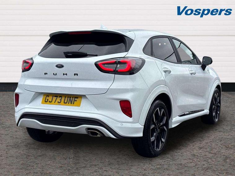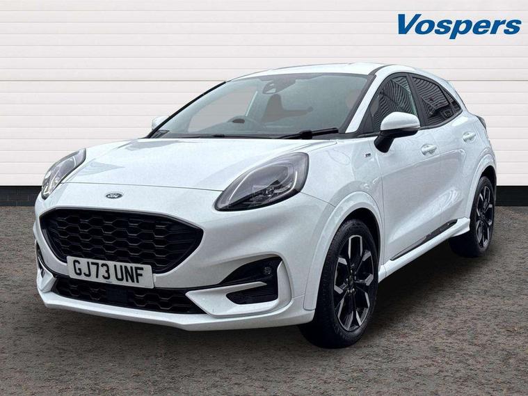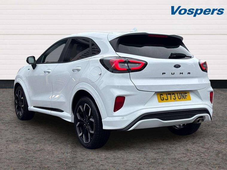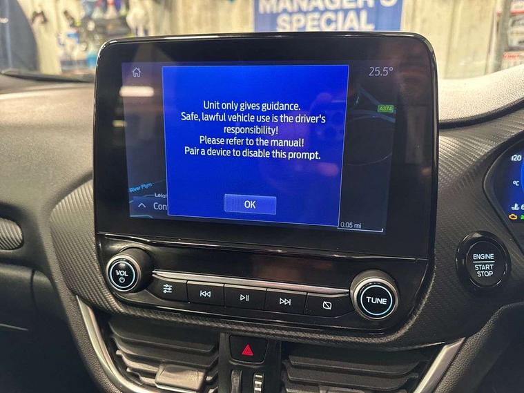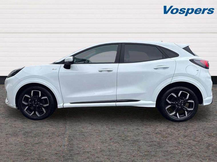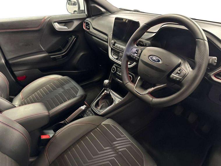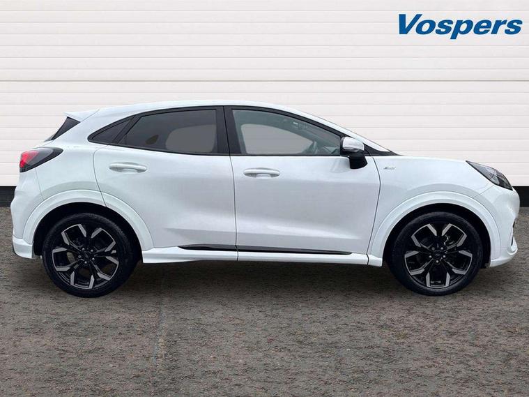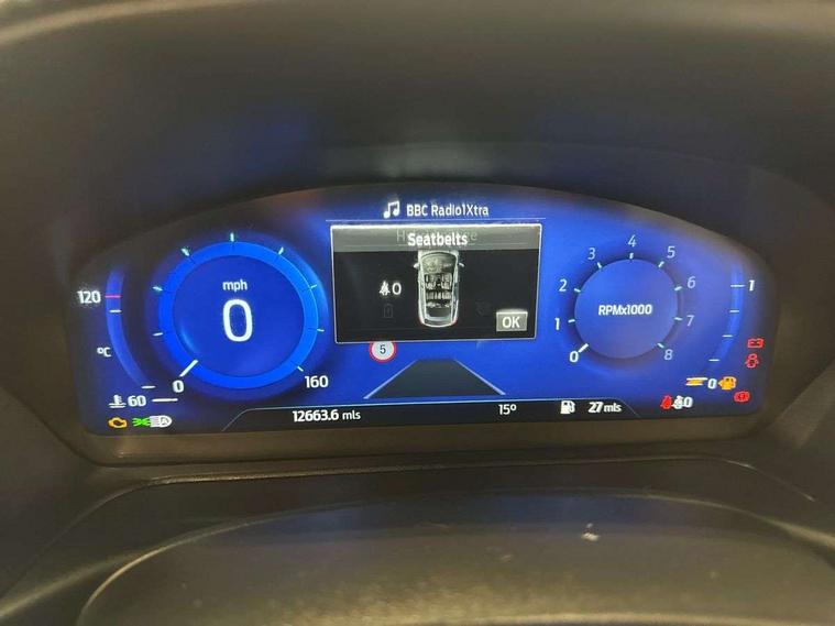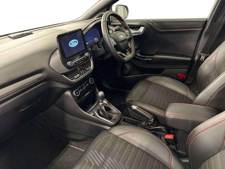 Driver impairment monitor, Emergency call service, Ford easy fuel, Full digital 12.3" instrument cluster, Lane keeping aid with lane departure warning, Power assist steering, Power start button, Rear parking sensor, Selectable drive modes(Normal, sport, Eco, trail, slippery), Speed sign recognition, Sport suspension, Automatic headlights with auto high beam, Automatic rain sensing wipers, Front fog lamps, LED daytime running lights, LED rear lamps, Power foldable heated door mirrors with puddle lamps, Privacy glass to side rear windows and tailgate glass, Quickclear heated windscreen, Rear side wing doors, Rear wiper, ST-Line body styling kit with unique grille and large body colour rear spoiler, Third brake light, 3 seat bench in 2nd row, Centre console with armrest and stowage, Ford megabox extended bootspace, Front and rear head restraints, Front floor mats, Manual 4 way driver seat adjust with lumbar adjustment, Manual 4 way passenger seat with lumbar seat adjustment, Sensico partial premium upholstery, Single front passenger seat, ST-Line flat bottomed sensico leather steering wheel with leather handbrake and aluminium gear knob, Wireless charging pad with electronic air temperature control (EATC), B&O Premium Audio system + Ford SYNC 3 navigation pack - Puma, 3 rear seatbelts, Child safety lock, Electronic stability control (ESC) and hill start assist, Pedestrian/cyclist detection & post-collision braking, Pre collision assist system, Tyre pressure monitoring system (TPMS), Thatcham alarm, Carbon look interior deco spears,