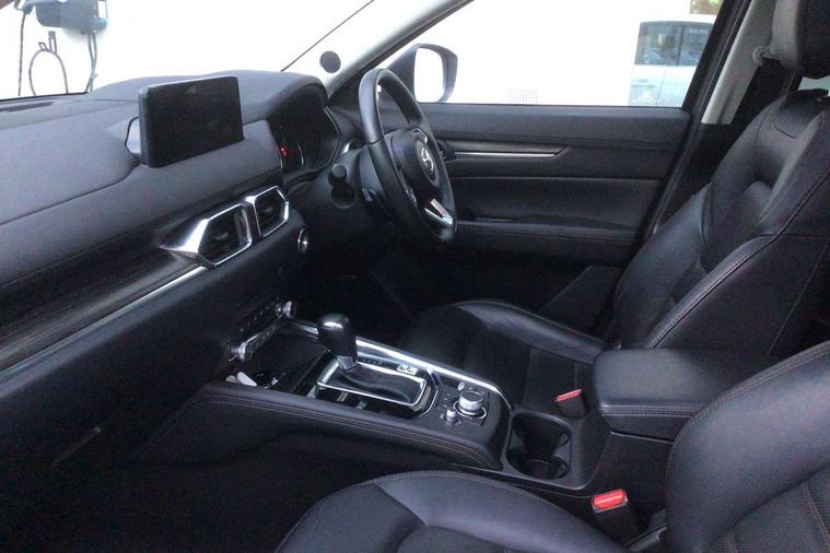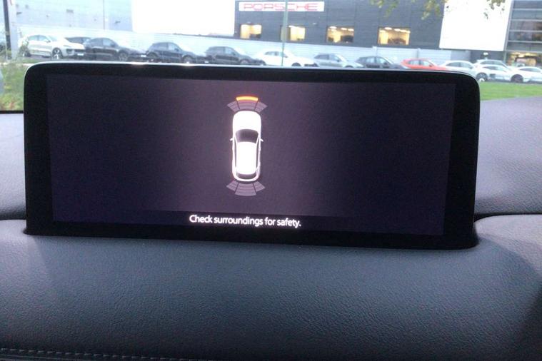 10.25" display with Mazda Connect infotainment, 7" colour TFT display, Advanced blind spot monitoring, Bluetooth connectivity with voice control, Collision prevention assist, Connected services, Cruising Traffic Support, Drive mode selector, Electric power steering, Emergency stop signalling system, Engine start/stop button, Forward collision warning, Front and rear parking sensors, Integrated navigation system, Intelligent speed assist, Lane departure warning system, Lane keep assist, Power liftgate, Qi wireless phone charging, Radar cruise control with Stop and Go, Rear cross traffic alert, Reversing camera, Service indicator, Traffic sign recognition (TSR), Trip computer, Windscreen projected colour active driving display (HUD) with memory, Wireless apple car play/android Auto, Cylinder Deactivation, i-stop, AM/FM radio, Bluetooth audio streaming, Bose premium sound system with 10 speakers, DAB Digital radio, Multimedia Commander including separate volume dial, Steering wheel mounted audio controls, Adaptive front lighting system, Auto dimming rear view mirror, Automatic headlights, Black inlay dashboard panel, Body colour door mirrors, Body colour roof spoiler, Body coloured front and rear black lower bumper mouldings, Coming/leaving home lighting function, Door mirror integrated indicators, Dual chrome tailpipes, Dusk sensitive headlamps, Electric front/rear windows with one touch auto up/down, Front grille in gloss black finish, Front grille in gloss black finish with chrome signature wing, Gloss black B and C pillars garnish, High beam assist, Intermittent rear wash/wipe, LED auto levelling, LED daytime running lights, LED front fog lights, LED Headlights, LED third brake light, Power folding and heated door mirrors, Power tilt/slide sunroof, Privacy glass (rear side windows only), Rain sensing front wipers, Rear side wing doors, Satin black side mouldings, Scuff plates, Shark fin antenna, Signature LED rear combination lights, Variable intermittent front wash/wipe, Vinyl with wood grain metal inlay door trim panel, Windscreen wiper de-icer, 12v electrical power outlet, 3 seat bench in 2nd row, 3 stage heated front seats, 40:20:40 Karakuri fold-flat seat system, 6 way electric adjustable passenger seat, 8 way electric driver seat with lumbar support + memory, Cargo room flat floor board with waterproof undertray, Driver seat power slide, recline and height adjustment, Driver, Front passenger and two rear grab handles with coat hooks, Driver/passenger front seatback pockets, Driver/passenger sunvisors + illuminated vanity mirrors (drivers with ticket holder), Dual zone climate control, Folding centre armrest with 2 cup holders, Front and rear door pockets, Front centre storage with two cupholders, Front passenger seat power slide, recline and height adjustment, Heated steering wheel, Humidity sensor, Illuminated glovebox, Interior dome light with integral spotlight, ISOFIX child seat anchorage points attached on outer rear seats, Karakuri tonneau cover, Leather upholstery, Leather wrapped steering wheel and gear knob, Light roof lining, Luggage compartment LED lighting, Luggage compartment power outlet, Paddle shifts, Rear air vents, Rear headrests, Rear seat recline, Roof mounted sunglasses holder, Single front passenger seat, Three height adjustable head restraints, Tilt/height adjustable steering wheel, USB Connectivity (2x front Type-C, 2x rear Type-B), White interior LED illumination lighting, 3 point front seatbelts with pre-tensioners, 3 rear 3 point seatbelts, ABS, Advanced Smart City Brake Support - SCBS, Child locks on rear doors, Driver and front passenger side airbags, DSTC-Dynamic Stability and Traction Control, Dual front airbags, Electronic brake force distribution, Electronic parking brake with auto hold, ESP, Front and rear curtain airbags, Front passenger airbag deactivation, G-Vectoring control, Hill hold assist, Seatbelt reminder front and rear, Single stage passenger airbags, Smart brake support with forward obstruction warning, Tyre pressure monitoring system, Automatic door locking when moving off, Deadlock, Immobiliser, Power door locks, Remote central locking, Smart keyless entry, Thatcham Cat.1 alarm, 19" diamond cut black alloy wheels, Tyre repair kit,
